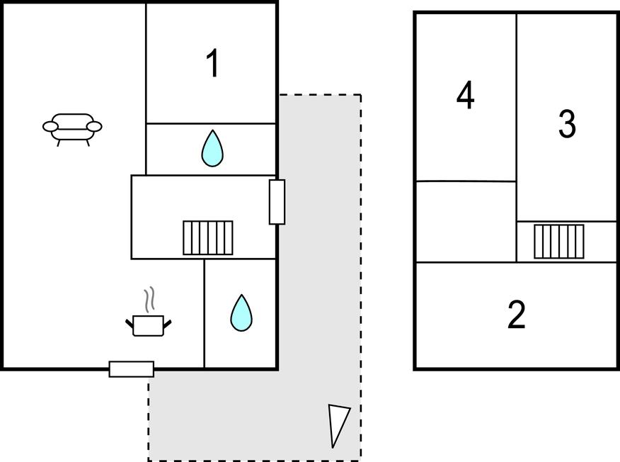 Badezimmer (nr. 1) - WC. Warmes und kaltes Wasser. Dusche