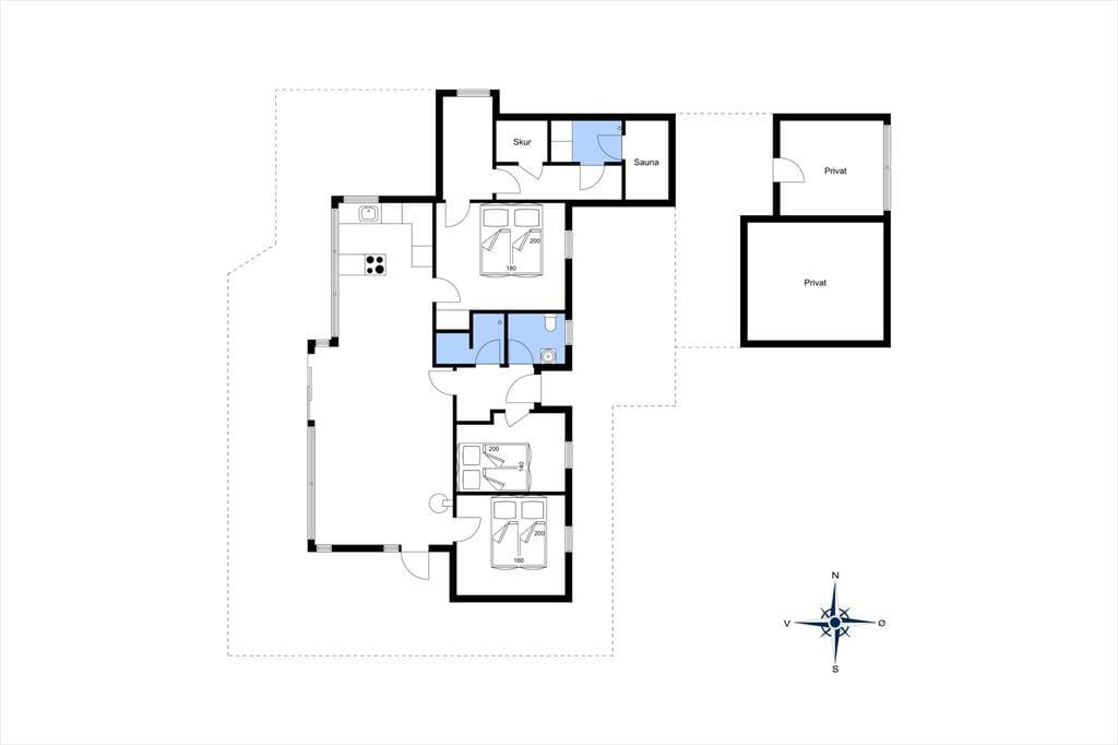 Das Ferienhaus ist hervorragend für sechs Personen eingerichtet. Der Wohnbereich, bestehend aus einer offenen Verbindung zwischen Küche und Wohnzimmer, wirkt dank der großen Fensterfronten, hellen Farbtöne und eleganten Möbeln besonders freundlich und einladend. Die Küche ist gut ausgestattet, und es ist ein Genuss, beim Kartoffelschälen oder Salatwaschen direkt aufs Meer zu blicken. An kühleren Tagen sorgt der Kaminofen für gemütliche Wärme, während Sie an sonnigen Sommertagen die Terrassentüren weit öffnen können. In den meisten Räumen des Hauses sorgt eine Fußbodenheizung unter den Fliesen für angenehme Wärme – mit Ausnahme der zwei Schlafzimmer, die mit Teppichboden ausgestattet sind. Insgesamt gibt es drei Schlafzimmer mit Doppelbetten. Das Badezimmer ist aufgeteilt in ein helles WC und einen großen separaten Duschraum. Zudem gibt es ein zusätzliches Bad im Nebengebäude, das auch eine Sauna sowie eine Waschmaschine und einen Trockner bietet.