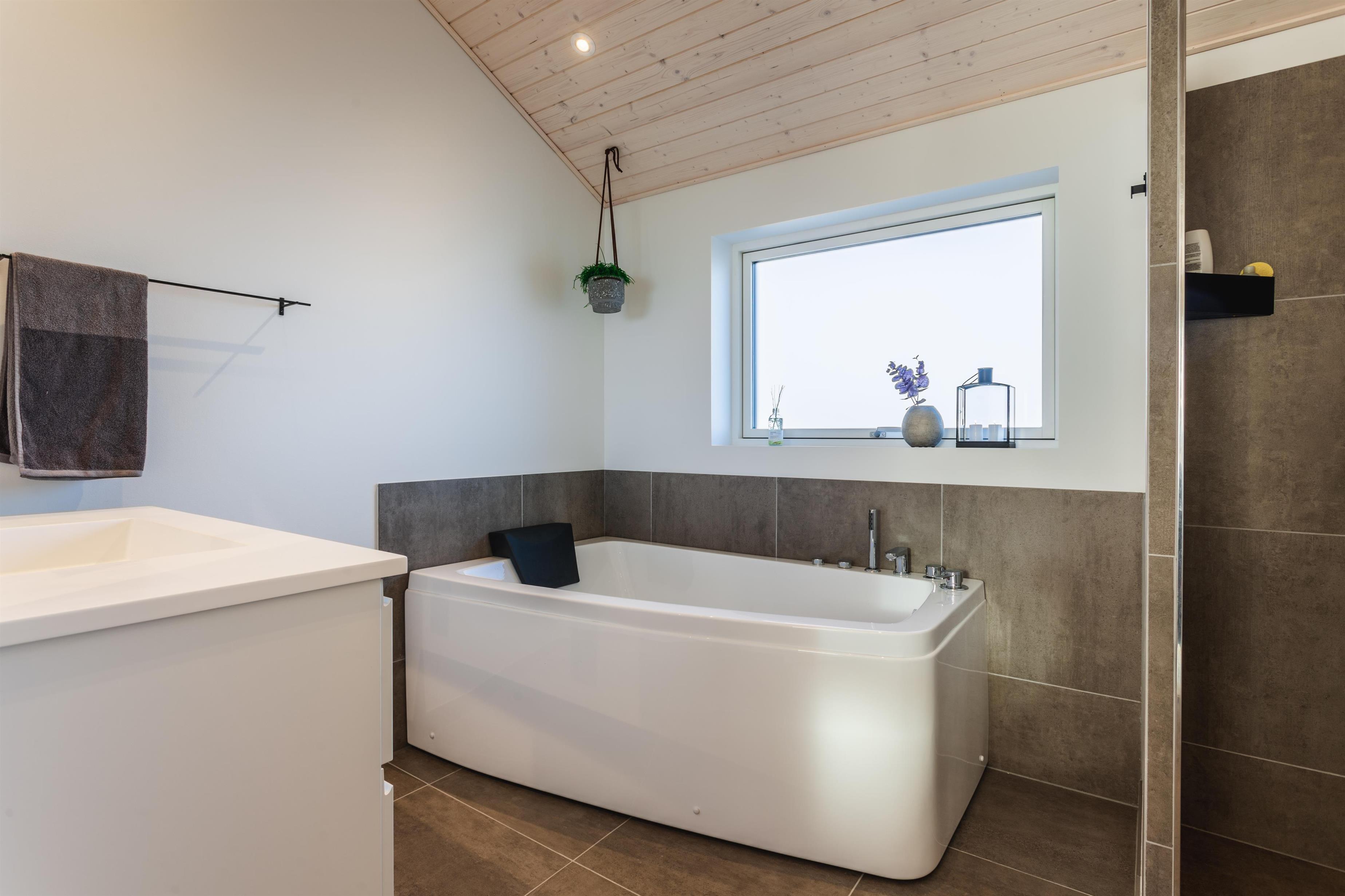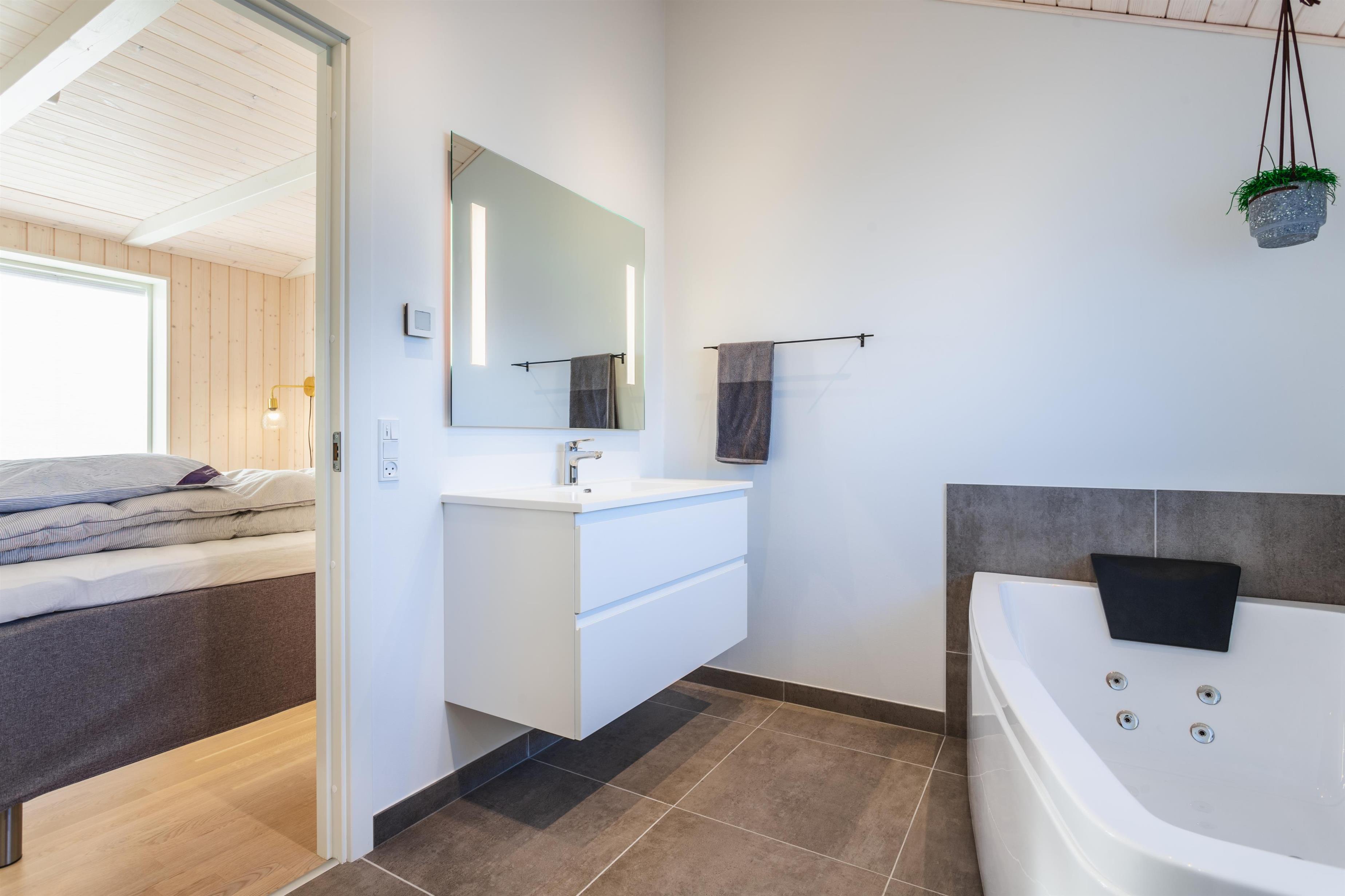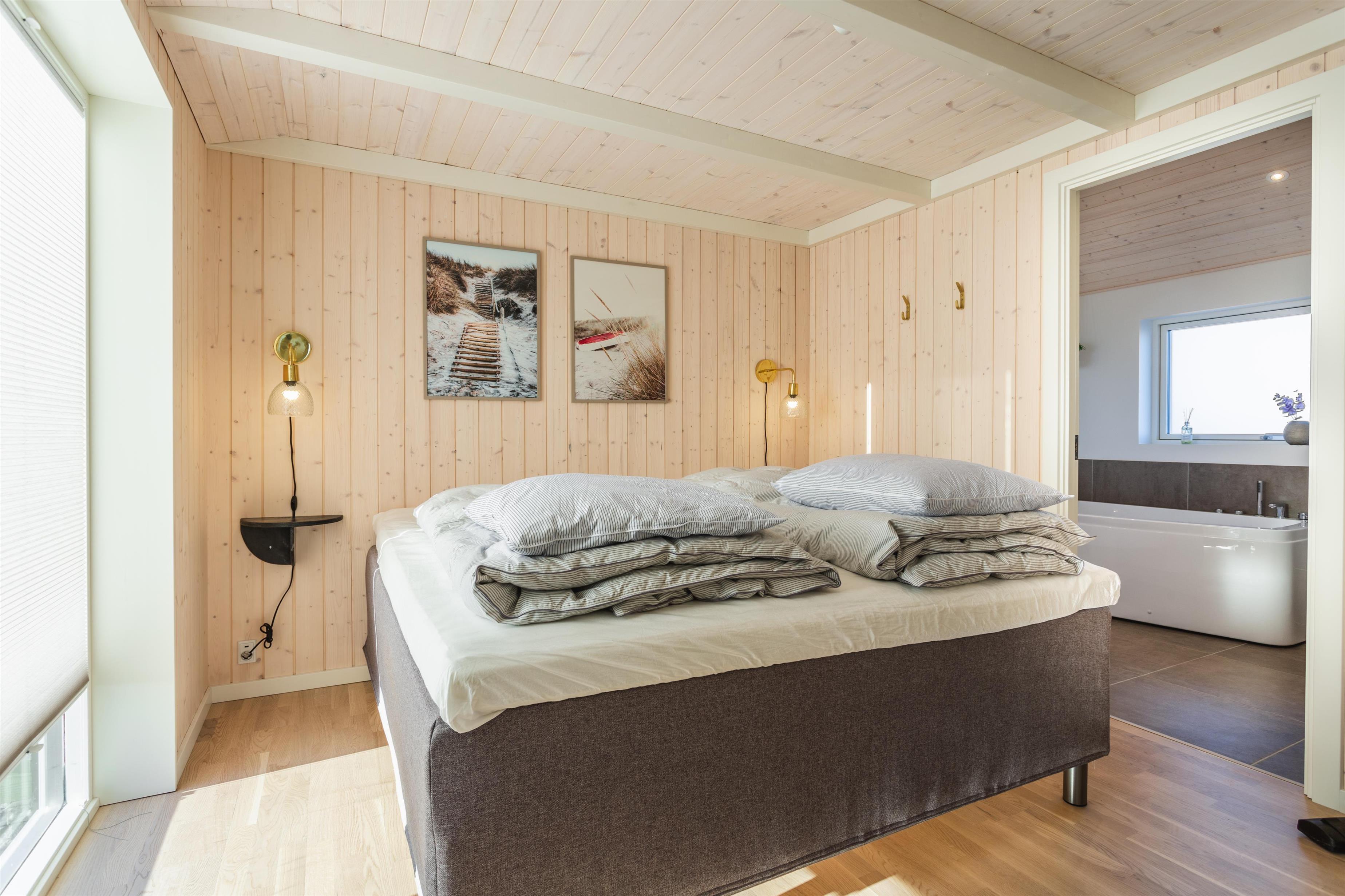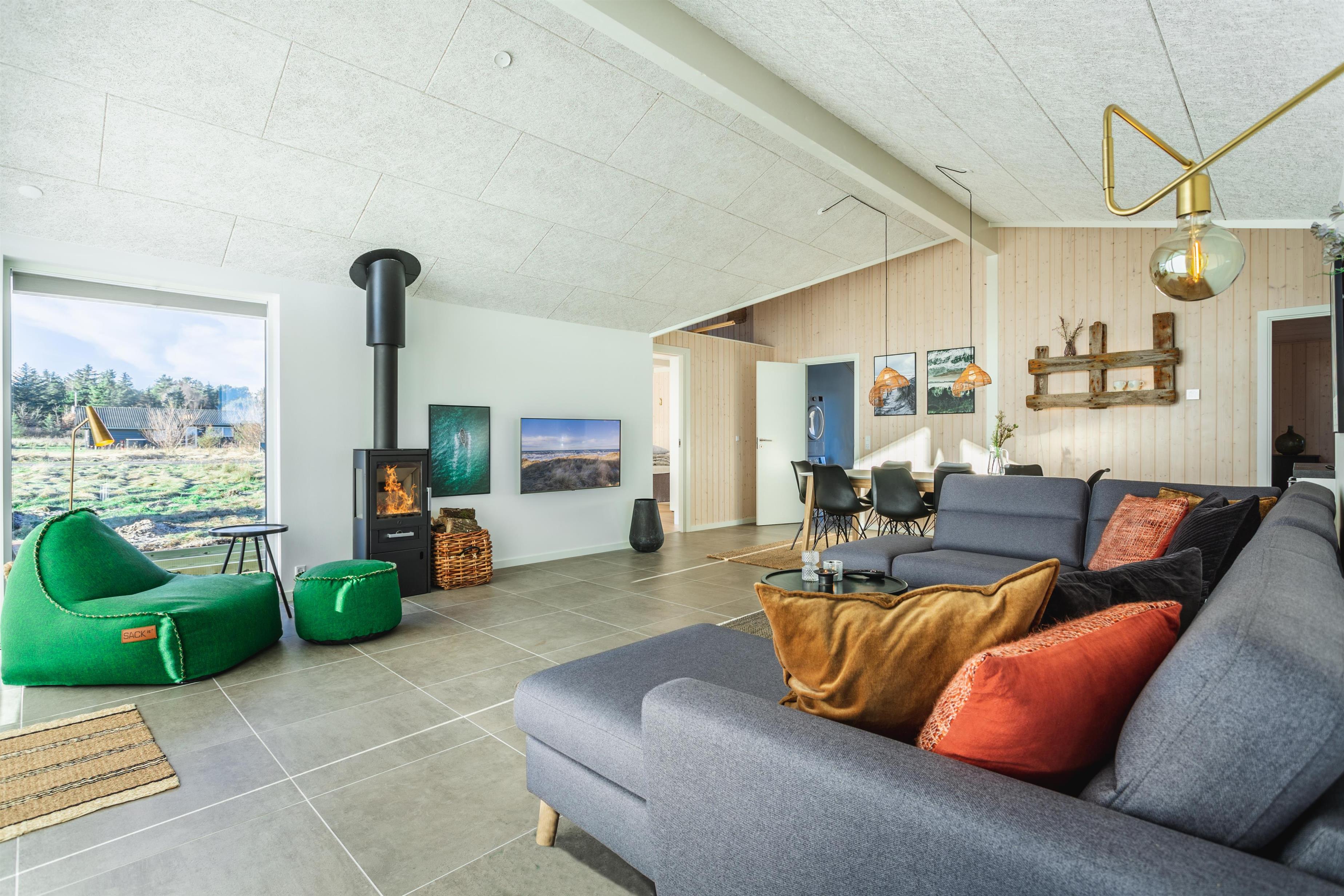 Dieses einladende Ferienhaus hat alles: hohe Qualität, gute Lage, schöne Umgebung und funktionierende, gut ausgestattete Einrichtungen. Wir trauen uns, dieses Ferienhaus in unserer Liebhaberklasse einzuordnen. Das neuere Ferienhaus ist mit stilvollen und modernen Möbeln eingerichtet, die sowohl Komfort als auch eine angenehme Atmosphäre bieten. Die große, gut ausgestattete Küche ist offen zum Wohnzimmer, von dem aus Sie den fantastischen Blick auf die Umgebung und die umliegende Natur genießen können. Genießen Sie das knisternde Feuer im Kamin, das zusätzliche Gemütlichkeit verleiht, und das beeindruckende Licht, das durch die großen Fensterflächen strömt, die sich von Wand zu Wand erstrecken. Das Haus verfügt über drei große Schlafzimmer, alle mit komfortablen Doppelbetten, sowie zwei geräumige Badezimmer, von denen eines mit einem entspannenden Whirlpool ausgestattet ist.