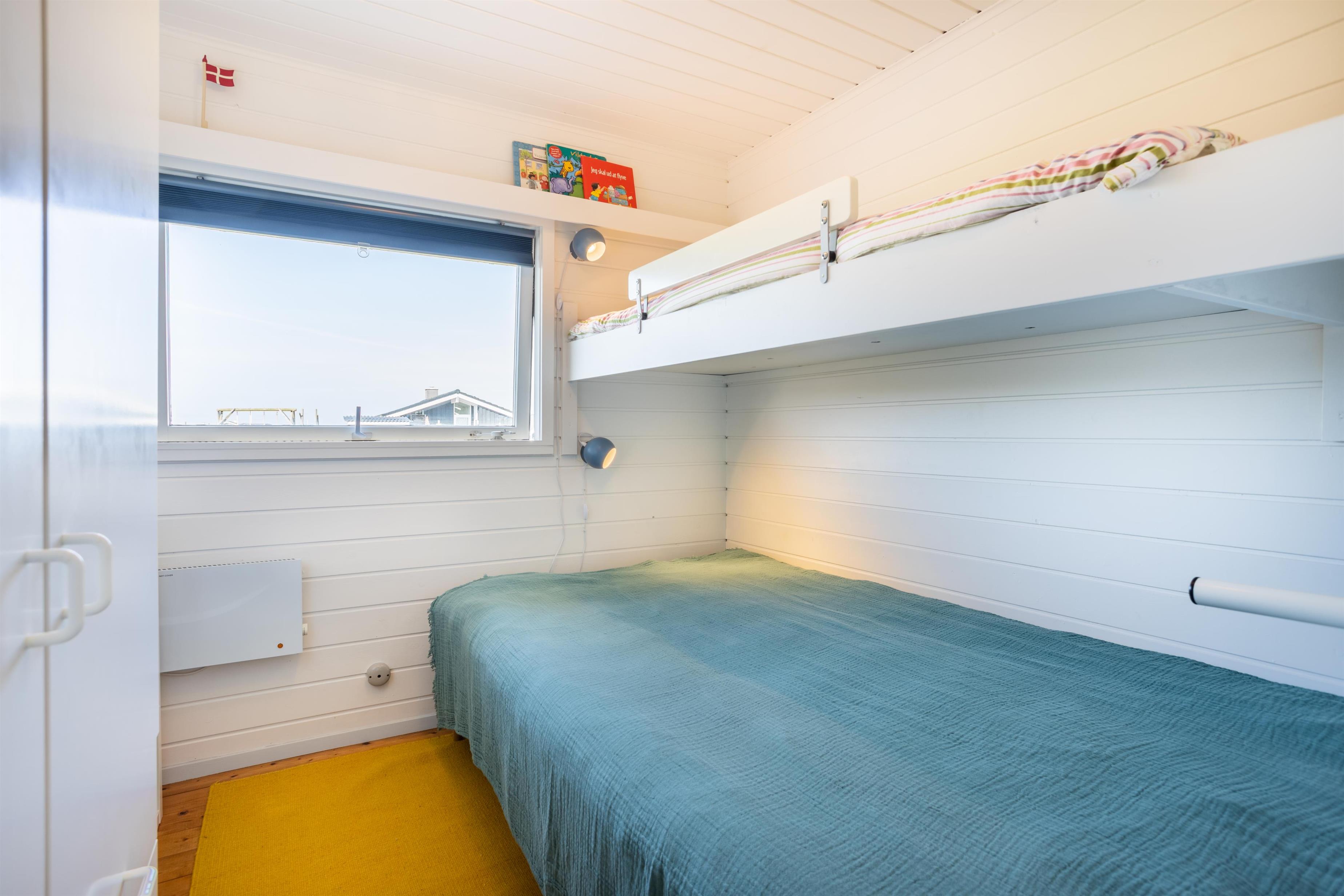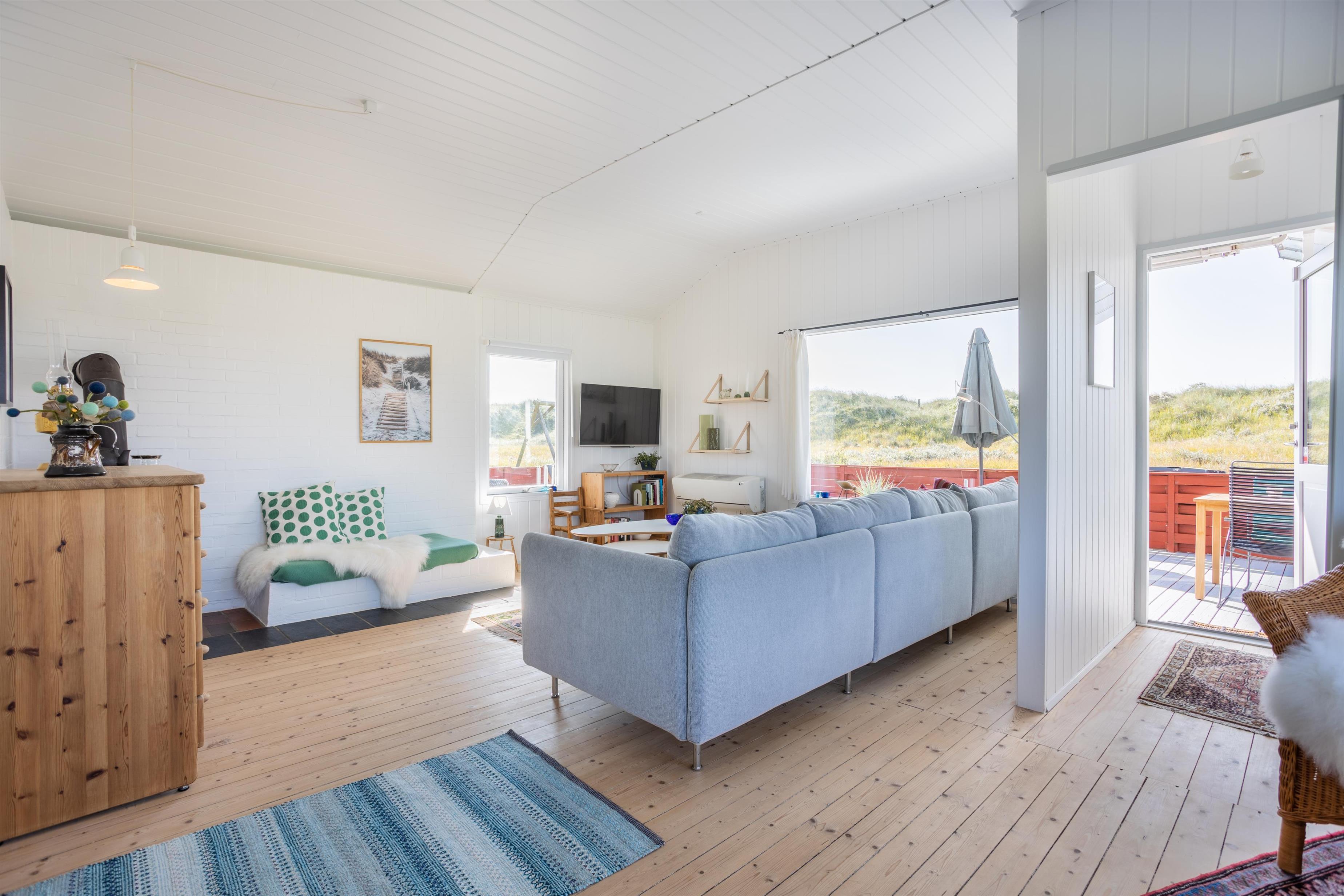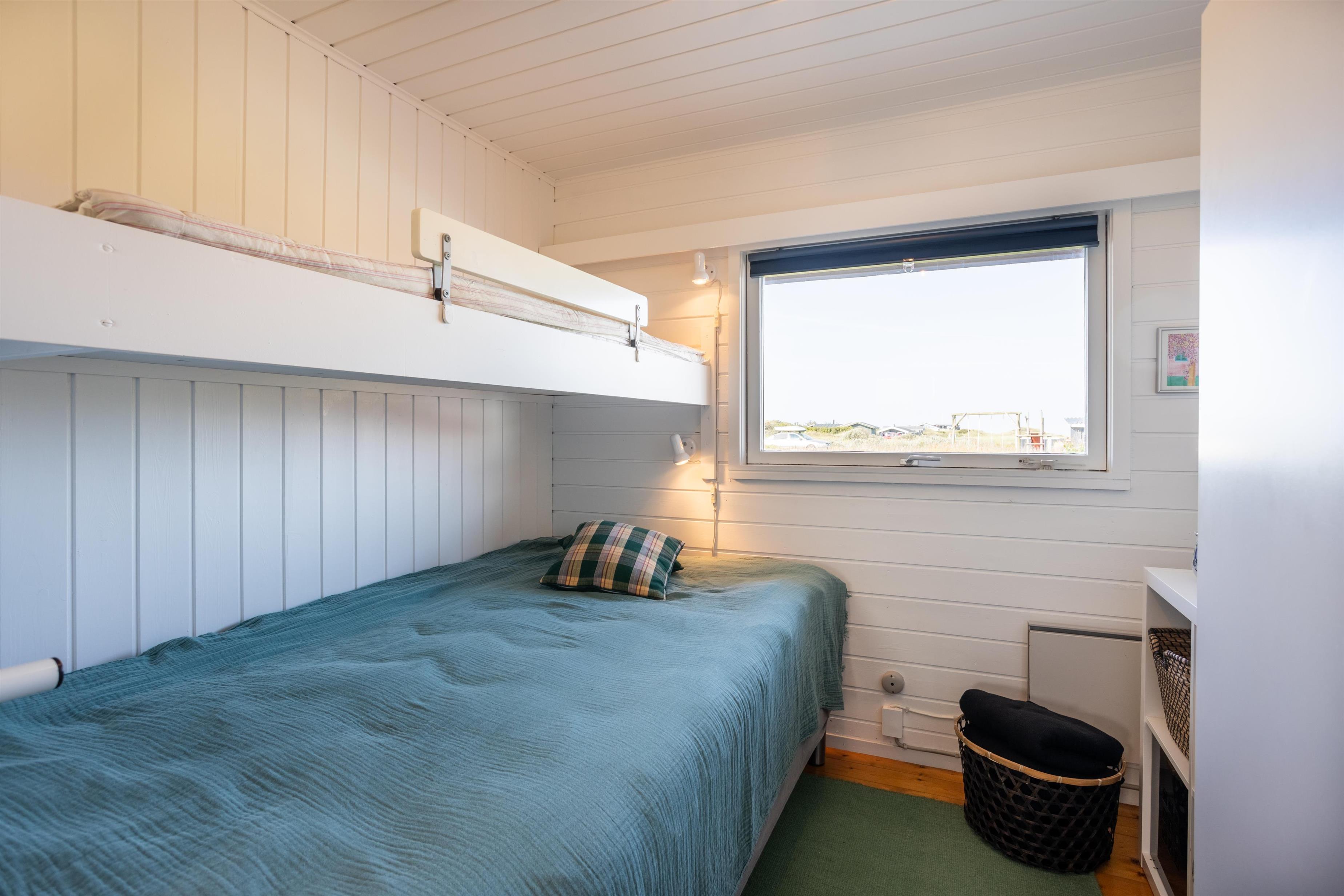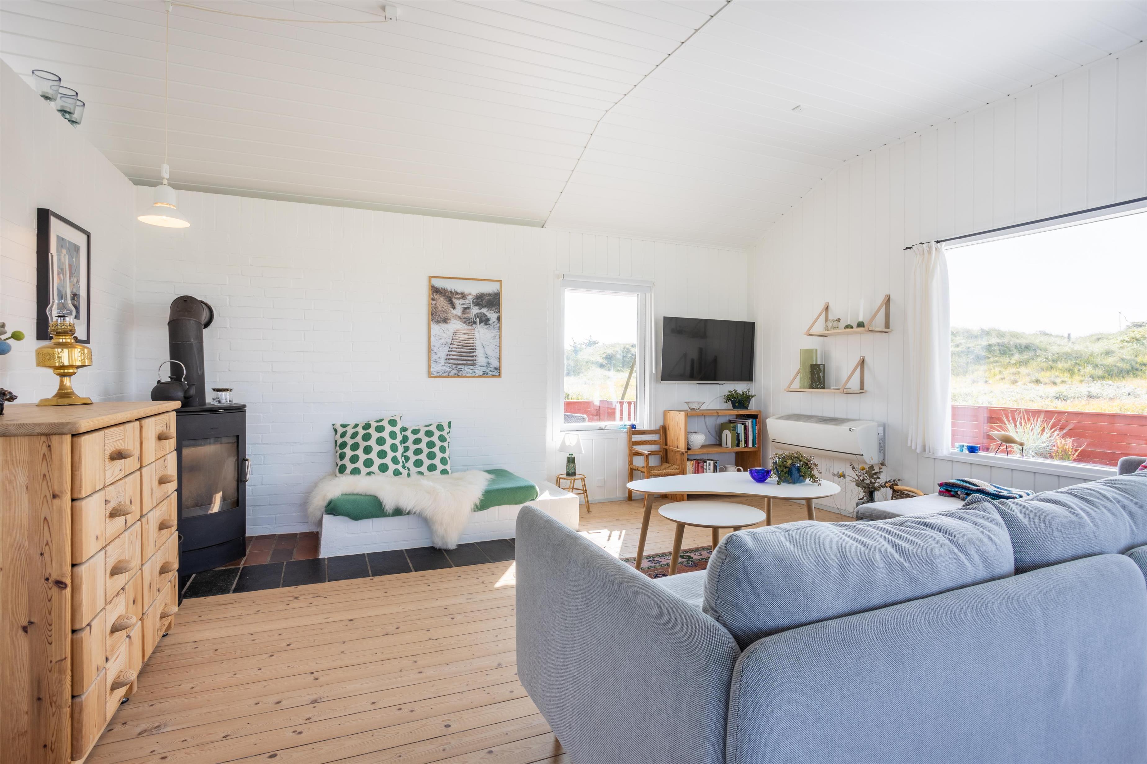 Dieses geräumige Ferienhaus bietet Platz für bis zu 6 Personen und überzeugt mit einer hellen und gut erhaltenen Einrichtung. Das Haus verfügt über einen offenen Grundriss, in dem Küche, Essbereich und Wohnzimmer miteinander verschmelzen und eine gemütliche Atmosphäre schaffen. Egal, ob Sie ein Brettspiel spielen, den Tag besprechen oder den Ausblick durch die großen Fenster genießen, hier ist Platz für Gemeinsamkeit. Der Kaminofen sorgt an kühlen Abenden für Wärme und Gemütlichkeit, während die Wärmepumpe das ganze Jahr über für ein angenehmes Raumklima sorgt. Es gibt zwei Badezimmer mit Dusche, was das Haus sowohl für Familien als auch für Freunde, die zusammen reisen, ideal macht. Außerdem gibt es eine praktische Außendusche – perfekt nach einem Strandbesuch. Das Ferienhaus bietet vier schöne Schlafzimmer. Zwei Zimmer haben Etagenbetten, wobei das untere Bett extra breit ist – perfekt für Kinder oder ein entspanntes Nickerchen am Tag.