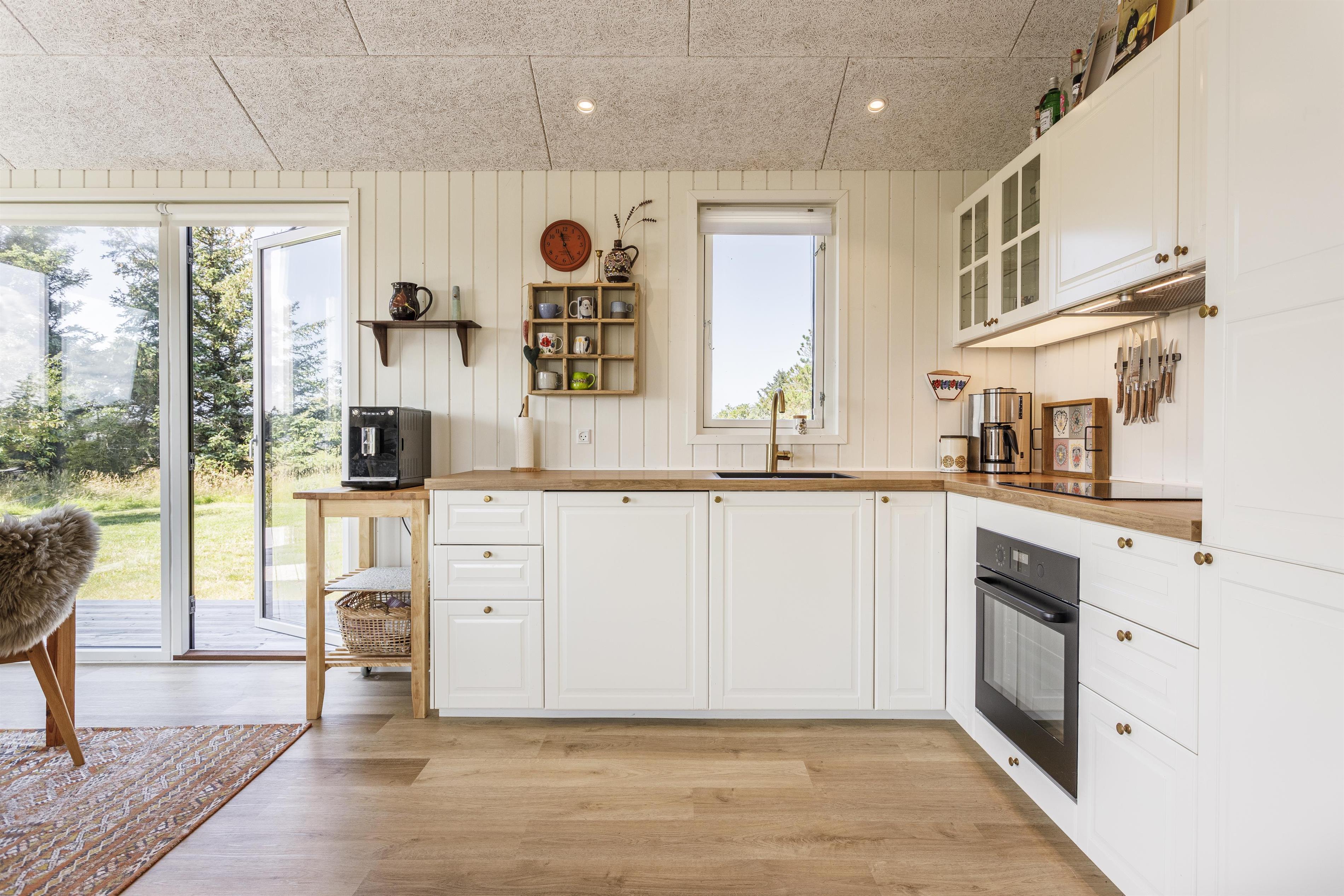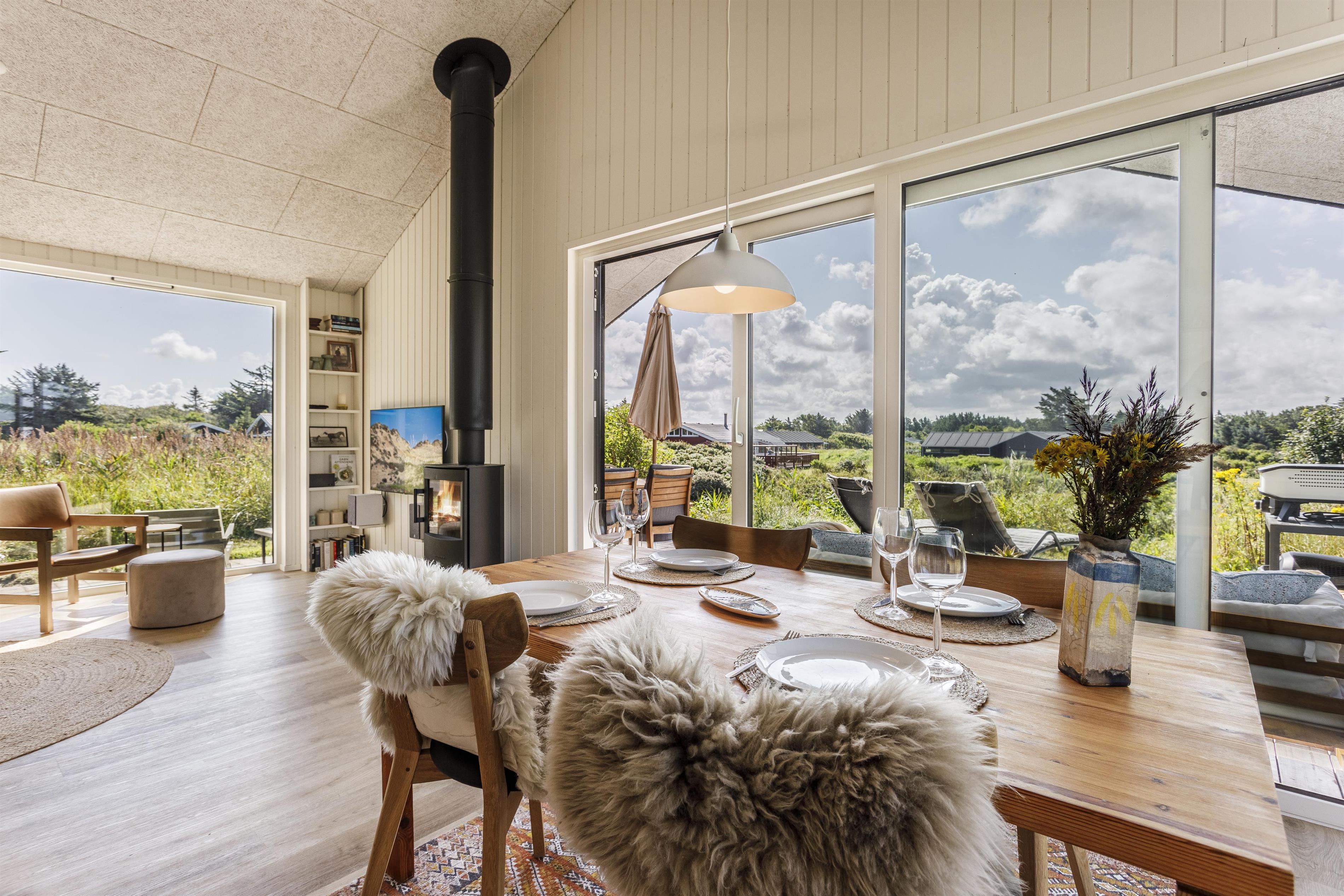 Sowohl innen als auch außen wurde großer Wert auf Komfort gelegt. Das Ferienhaus ist geschmackvoll und praktisch eingerichtet und verfügt über drei gemütliche Schlafzimmer, ein modernes Badezimmer mit Dusche und Fußbodenheizung sowie einen großen, lichtdurchfluteten Wohnbereich. Die Küche ist offen mit dem Essbereich verbunden und bietet viel Platz, um ein köstliches Mahl zuzubereiten und gleichzeitig Teil des Geschehens am Esstisch zu sein.