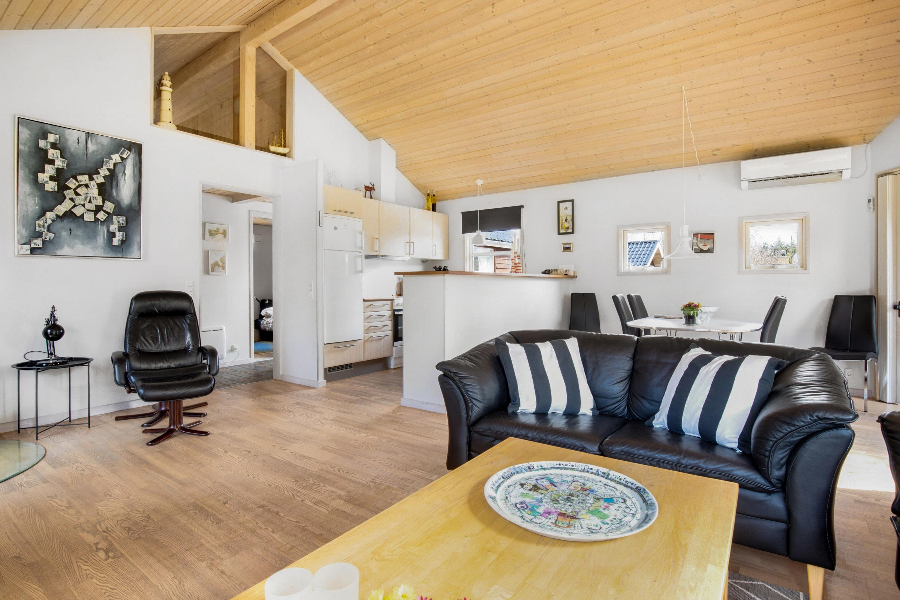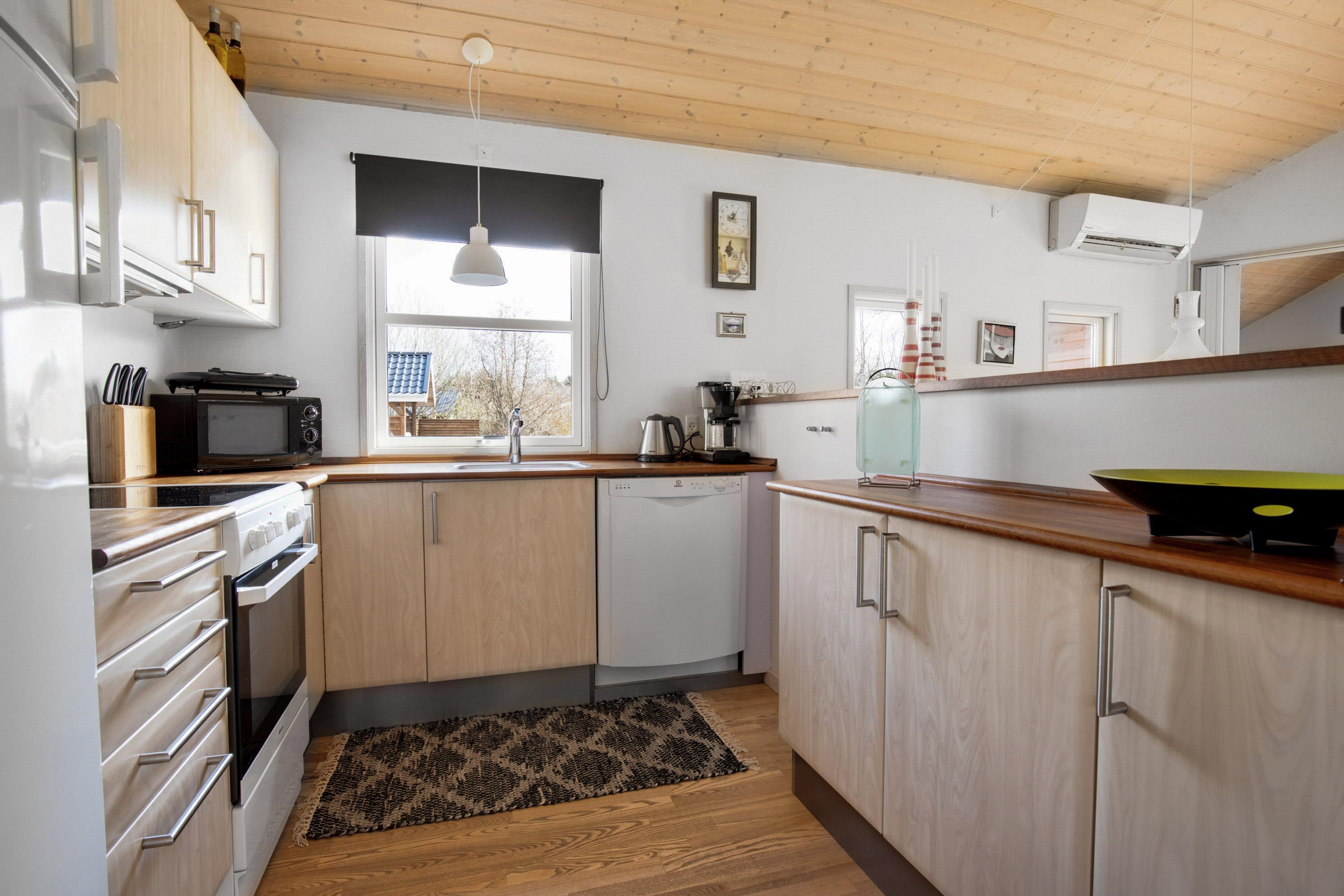 Das helle und einladende Ferienhaus, das Platz für die ganze Familie bietet, hat 90 gut genutzte Quadratmeter und erscheint sehr gepflegt. Die offene Küche ist funktional und modern ausgestattet mit allem nötigen Zubehör für einen bequemen Urlaub. Vom Küchenbereich aus gibt es einen offenen Übergang zum hellen und geräumigen Wohnzimmer, wo große Fenster viel natürliches Licht hereinlassen. Im Sommer ist es ideal, die schöne Terrasse zu öffnen und die Mahlzeiten dort einzunehmen.