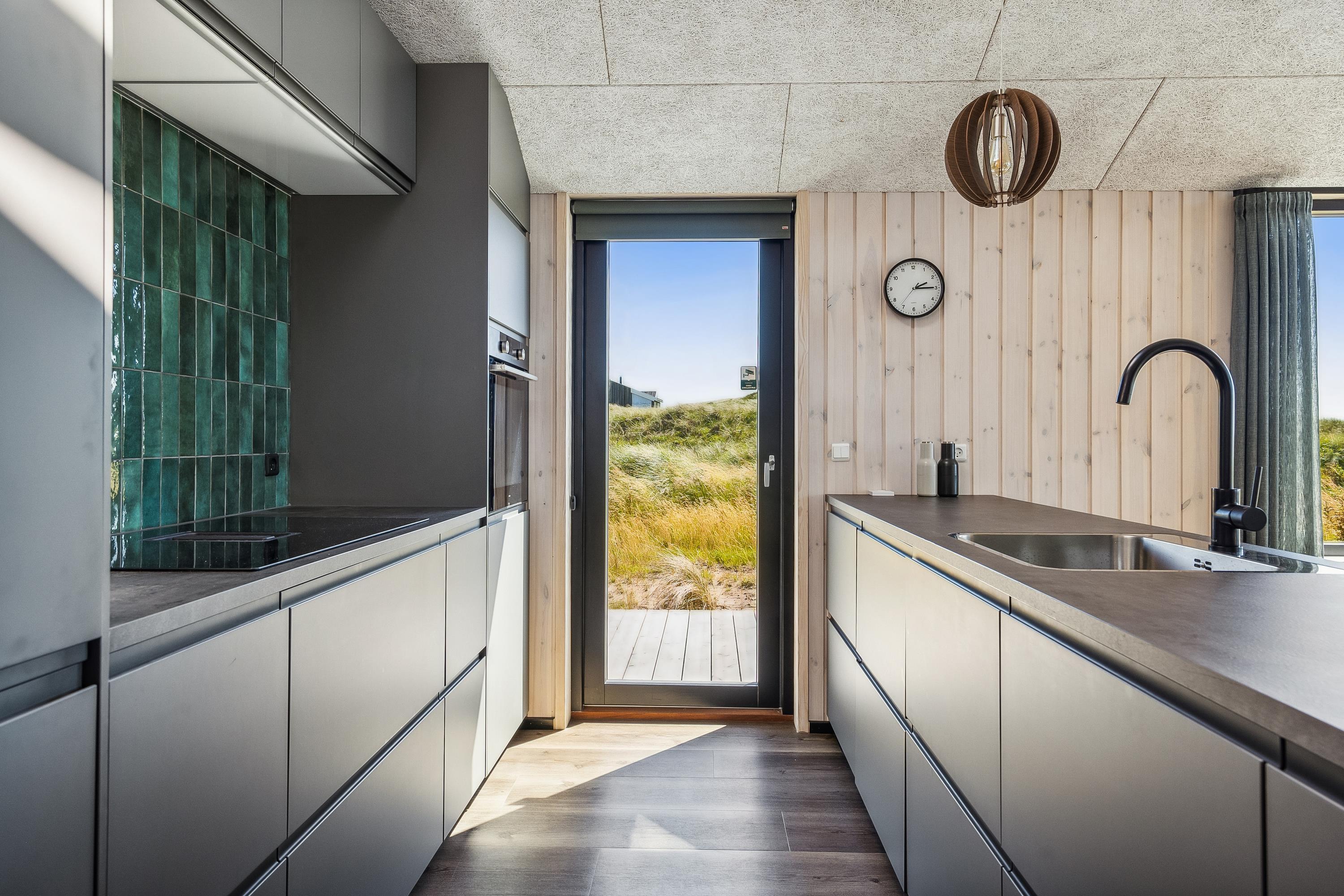 Die offene Küche ist mit dem Essbereich verbunden und komplett ausgestattet – perfekt für gemeinsame Kochmomente im Urlaub. Das gemütliche Wohnzimmer lädt nach einem langen Tag am Strand zu Entspannung am Kaminofen ein. Das ganze Haus ist mit Fußbodenheizung ausgestattet, betrieben durch eine energieeffiziente Wärmepumpe, und sowohl Waschmaschine als auch Trockner sorgen für zusätzlichen Komfort.