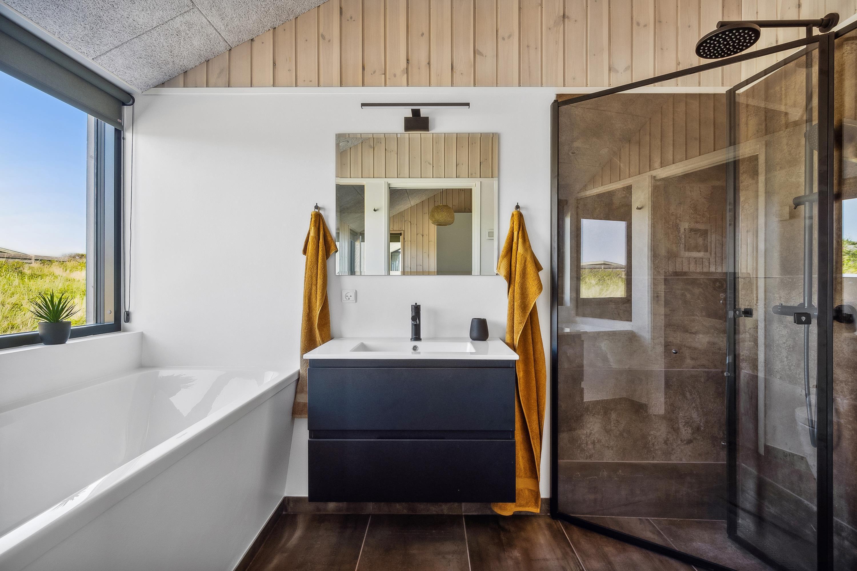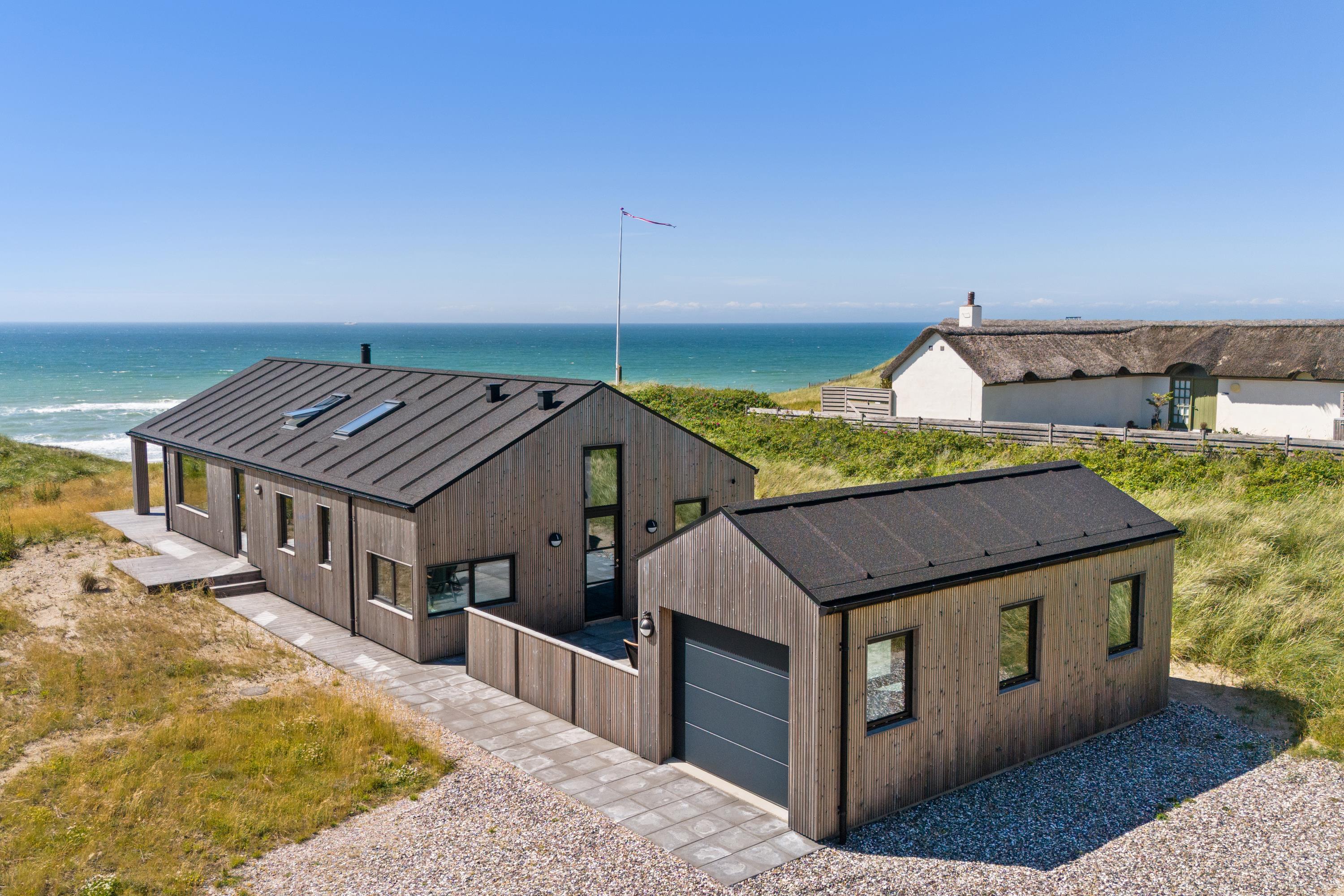 Dieses moderne Ferienhaus bei Tornby Strand wurde 2023 erbaut und bietet alles, was Sie sich an Komfort und Qualität wünschen können. Die hellen Räume, die hohe Decke und die große Glasfront nach Westen schaffen ein einzigartiges Licht und ein großzügiges Raumgefühl. Von hier aus genießen Sie einen fantastischen Meerblick – zu jeder Jahreszeit.