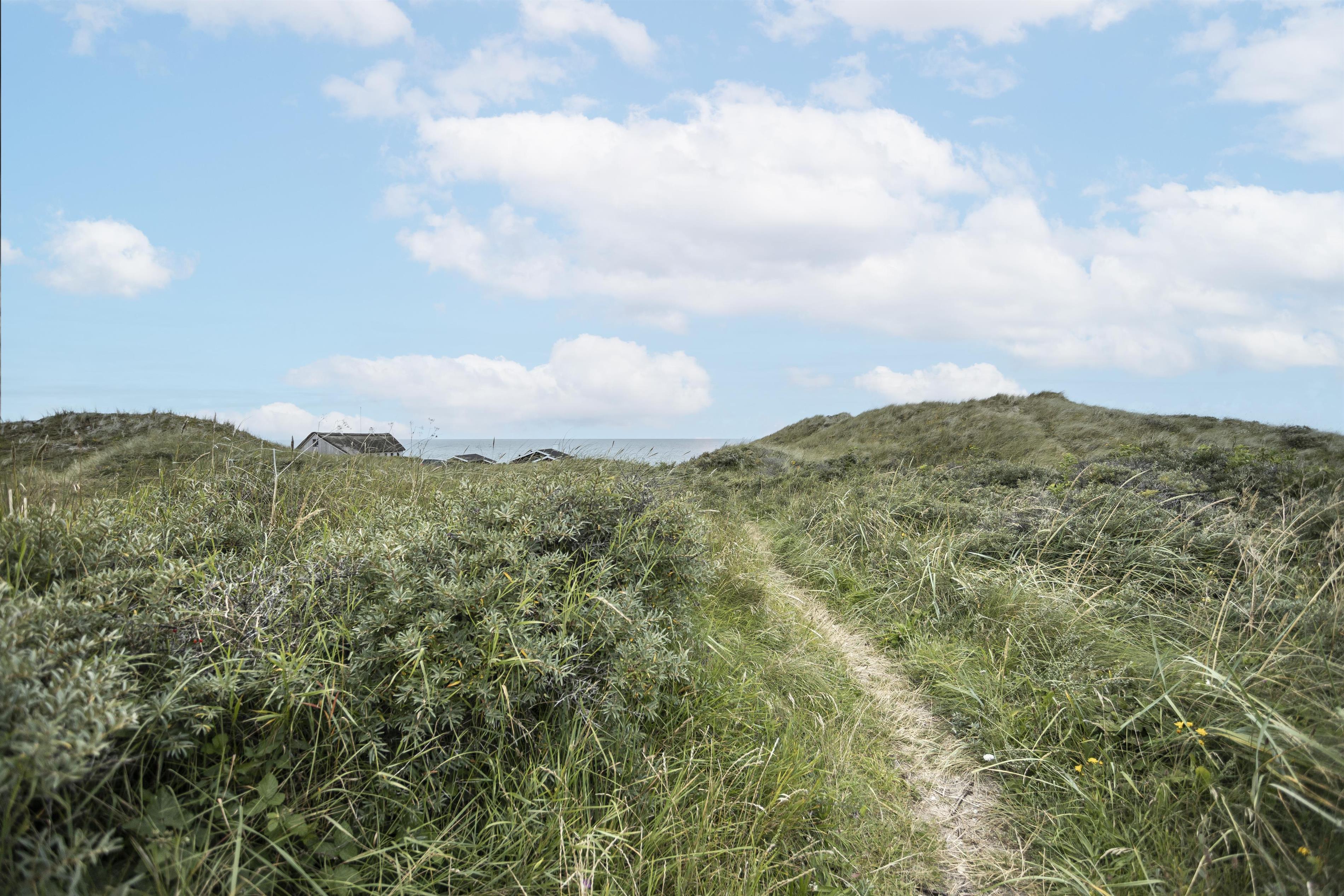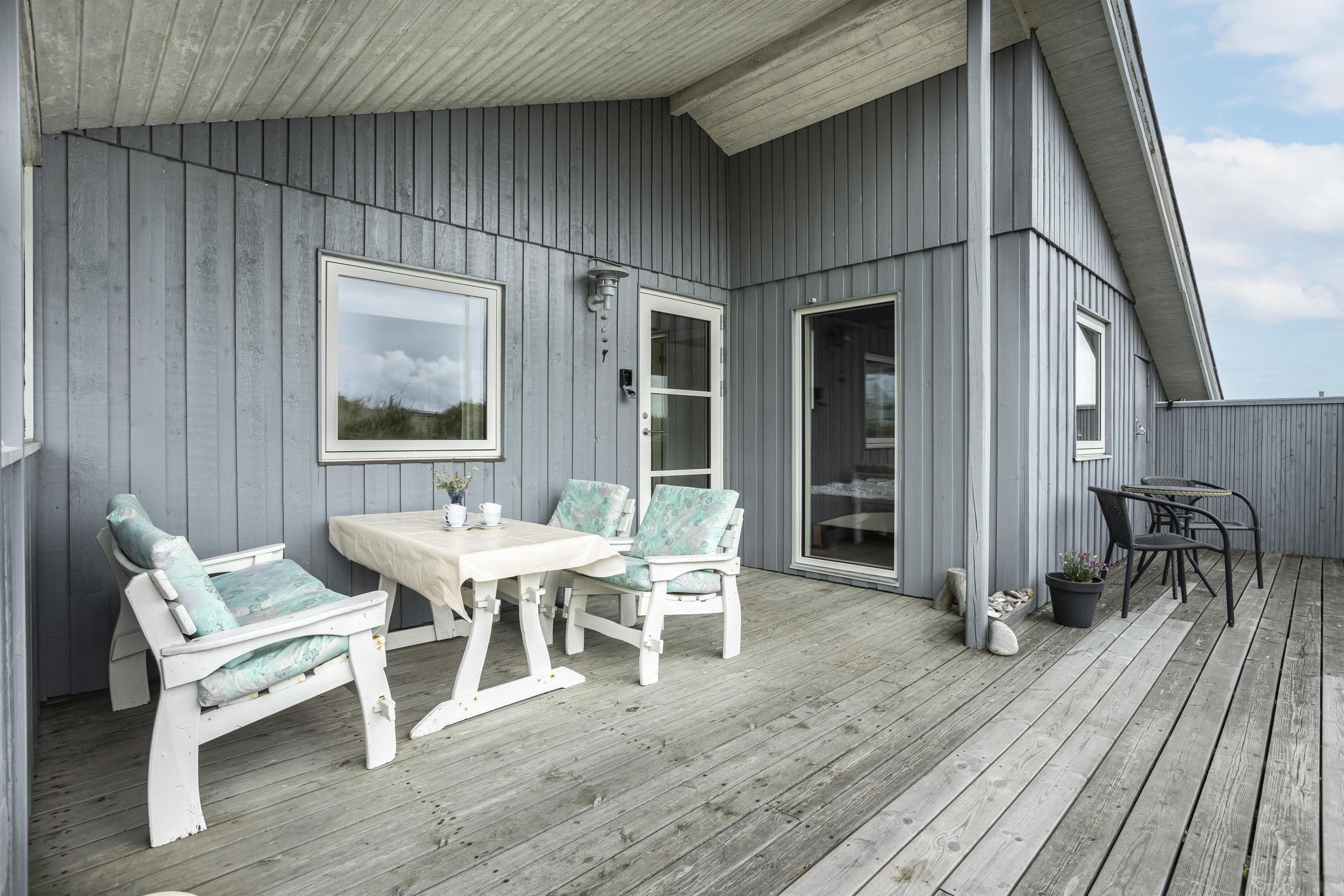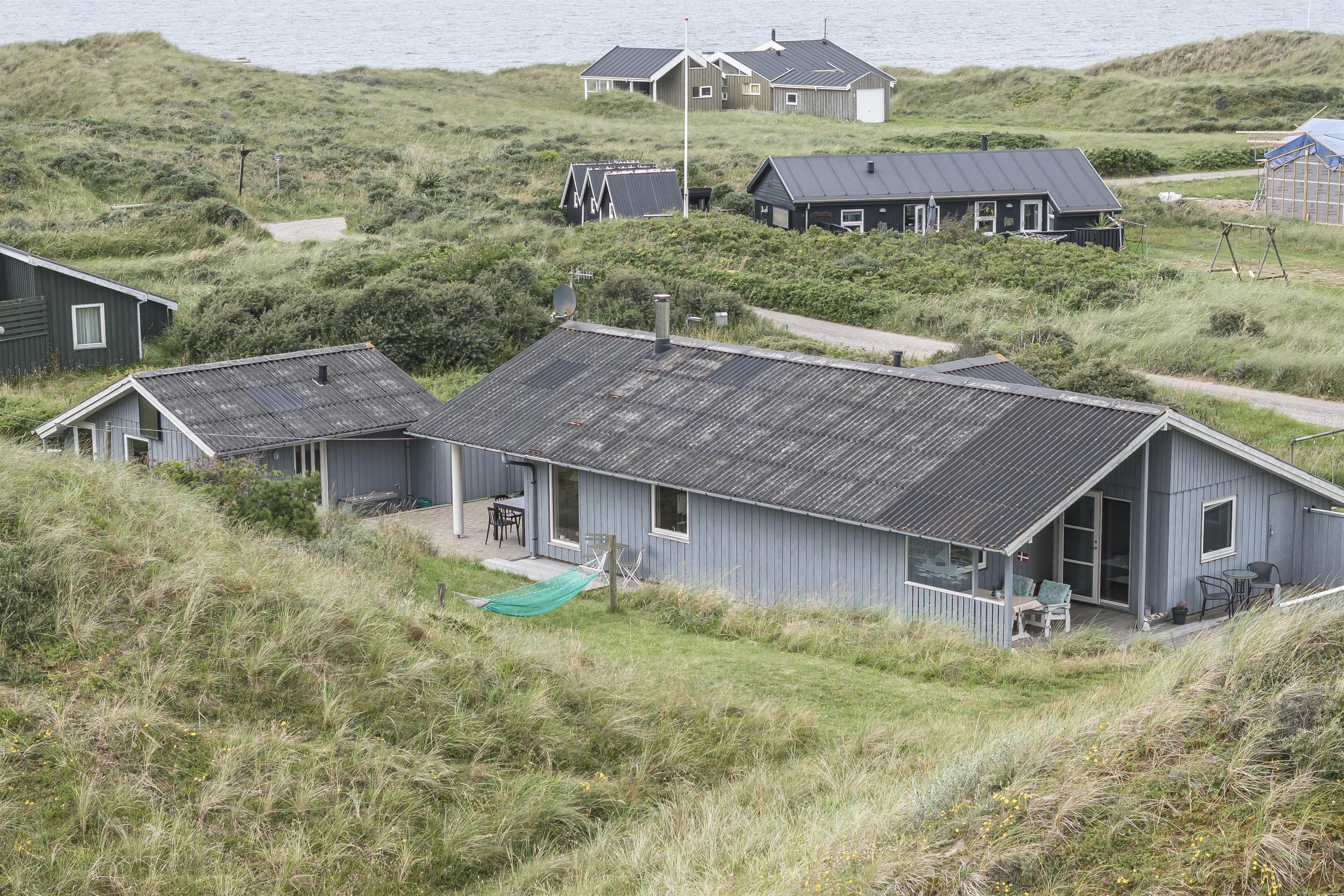 Das Ferienhaus liegt auf einem großen Naturgrundstück mitten in der welligen Dünenlandschaft von Tornby, nur 300 Meter vom Strand entfernt. Mehrere Terrassen und geschützte Ecken bieten die Möglichkeit, die Sonne von morgens bis abends zu genießen. An heißen Sommertagen können Sie sich auf die überdachten Terrassen zurückziehen.