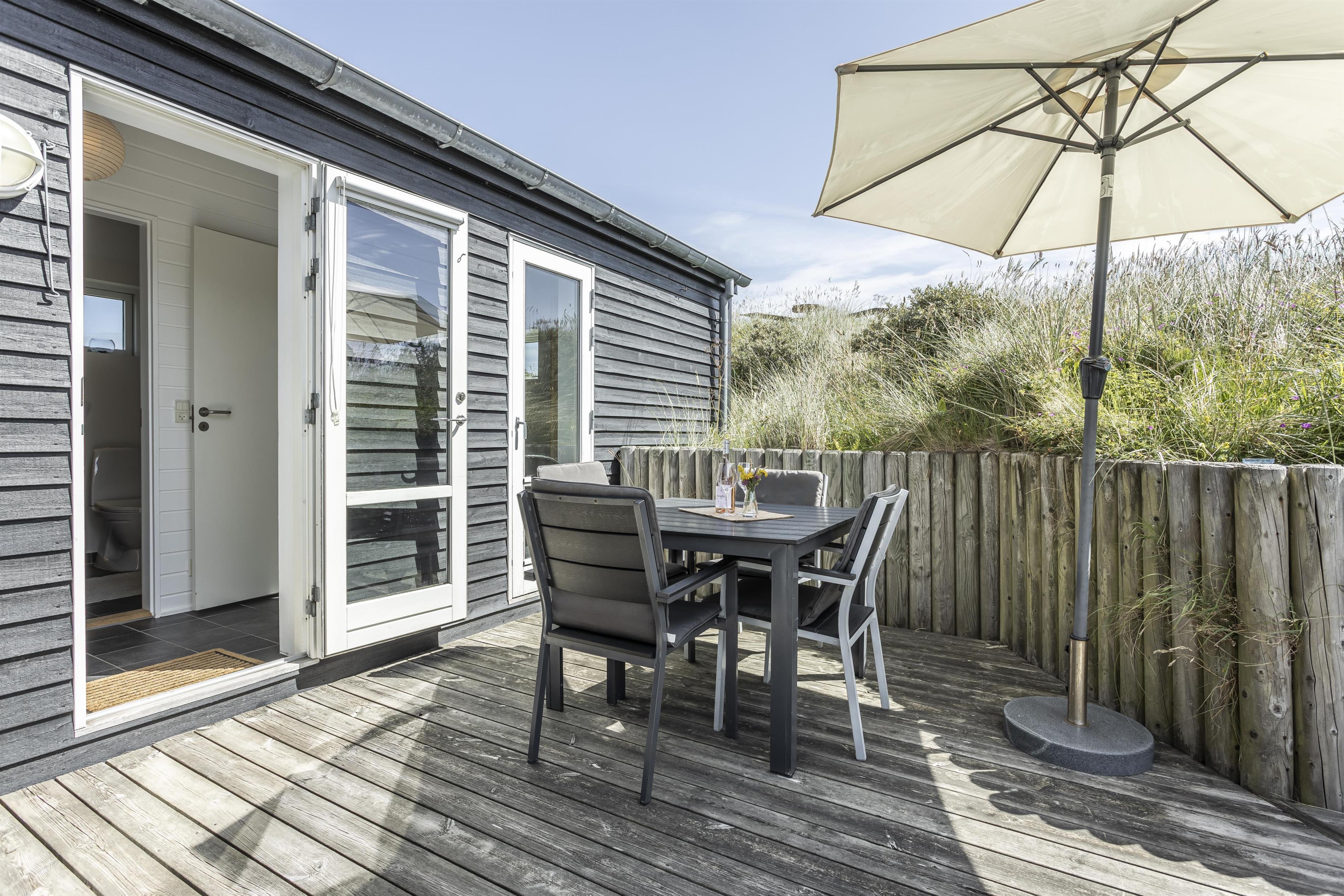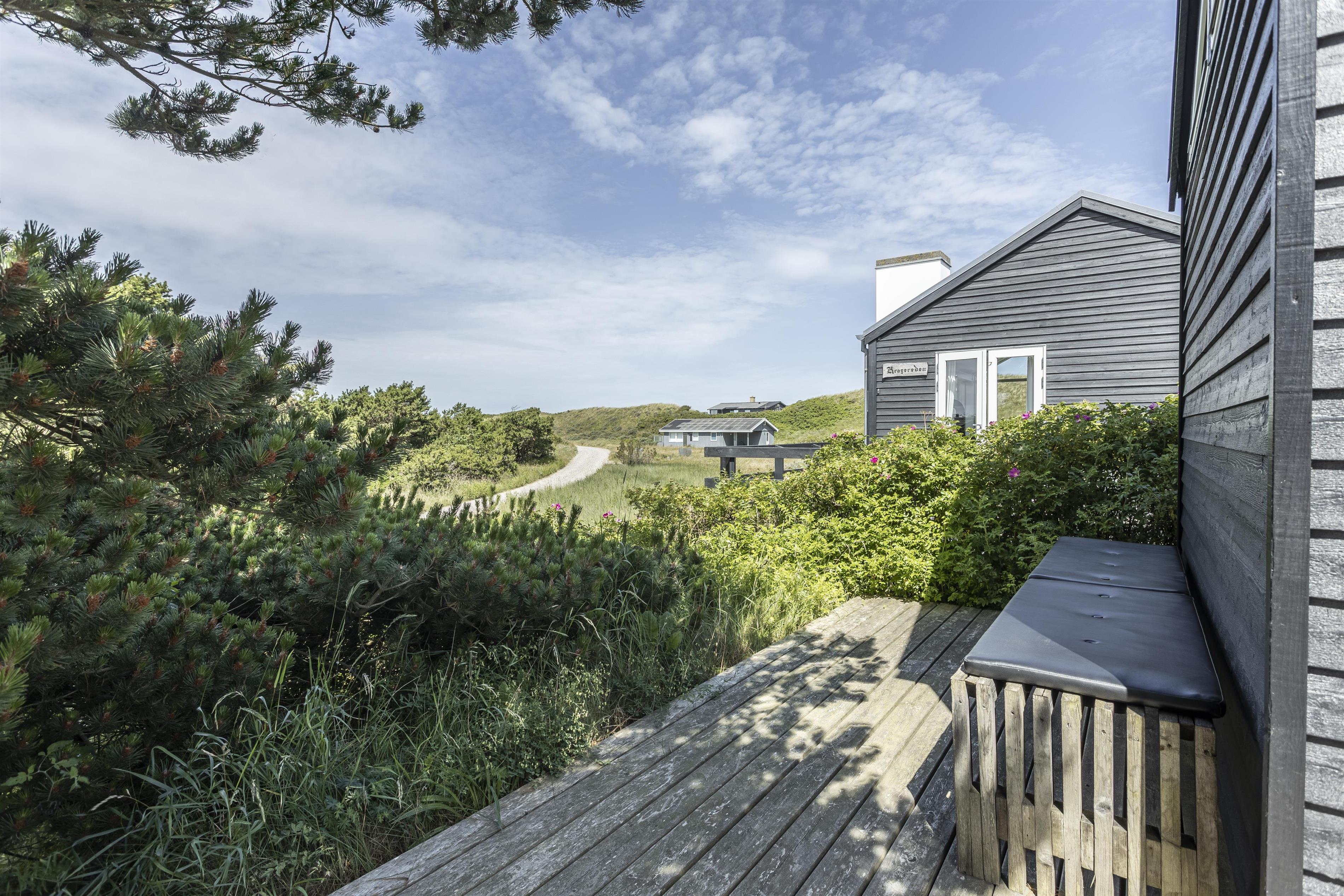Bewegen Sie sich weiter in die Dünen hinauf, finden Sie auf dem Grundstück eine Aussichtbank, von der aus Sie die schöne Landschaft und den Sonnenuntergang am Horizont betrachten können. Die verschiedenen Außenbereiche bieten die perfekten Rahmenbedingungen sowohl für Entspannung als auch für geselliges Beisammensein und laden zu vielen Stunden Gemütlichkeit unter freiem Himmel ein.