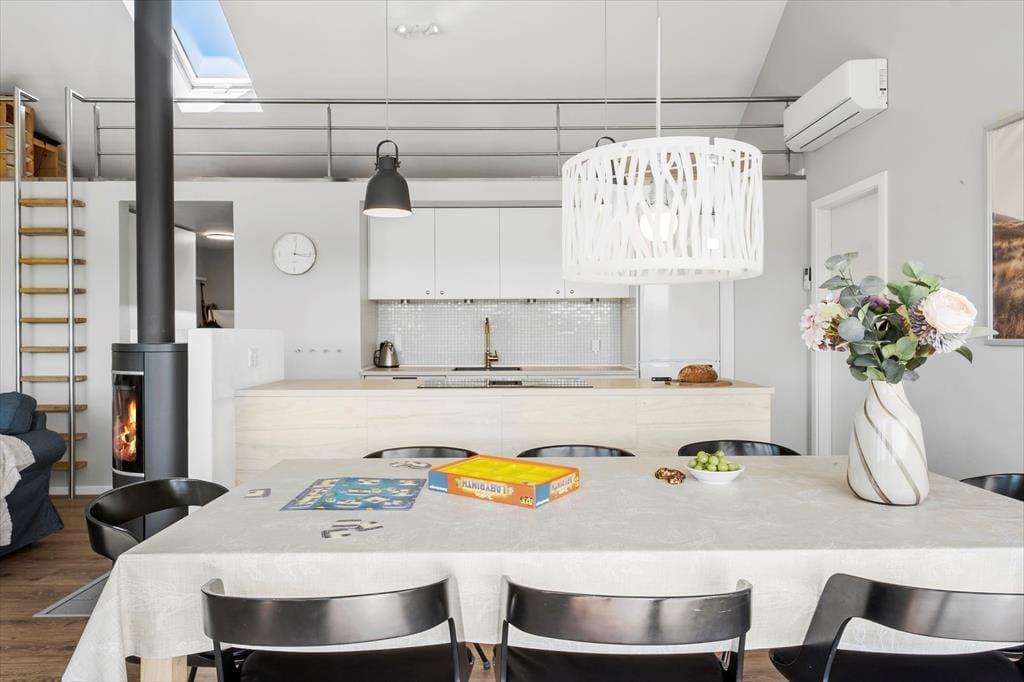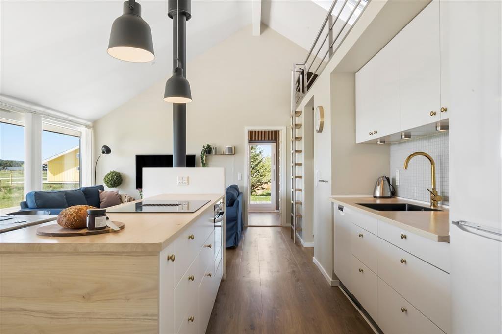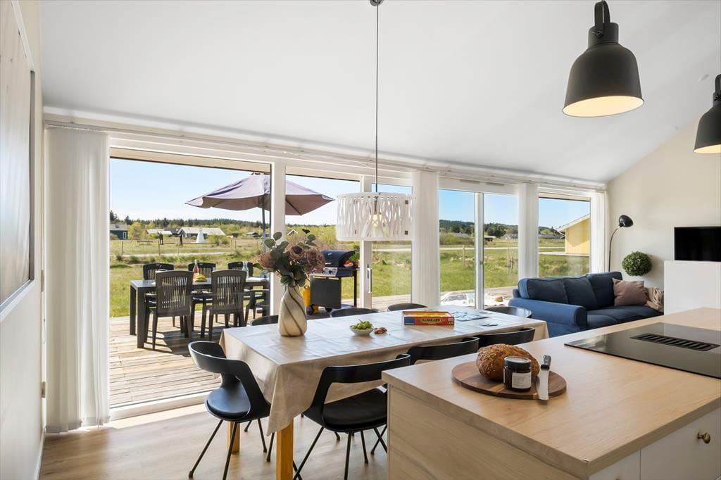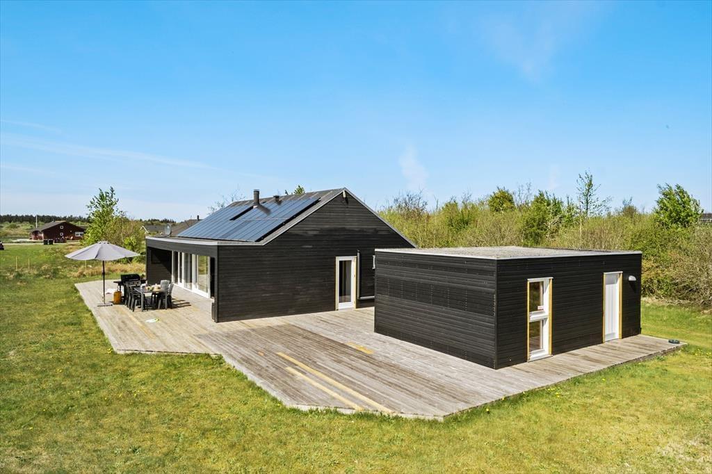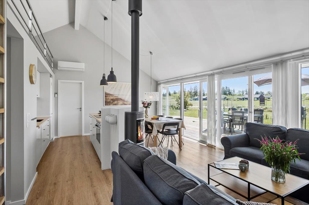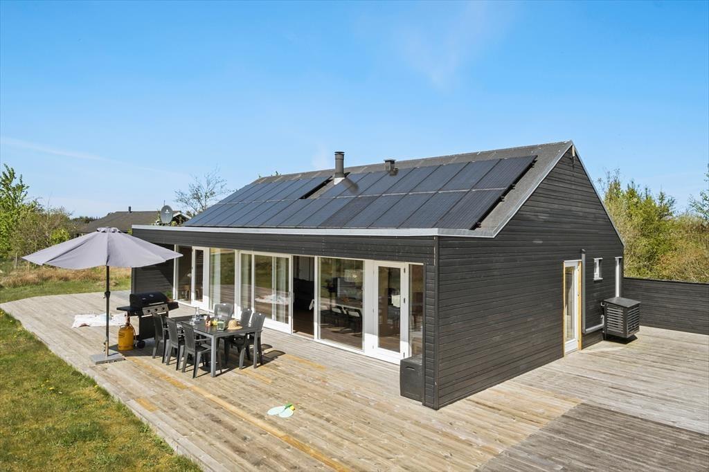 Das Ferienhaus ist ein schöner Bau aus dem Jahre 2009 und ist 90 m2 groß, und hierzu kommt noch ein Anbau von 29 m2, welcher z.Zt. zu einem Aktivitätsraum mit Tischtennis, Billard und Darts umgebaut wird. In beiden Gebäuden ist die Einrichtung hell und freundlich mit Interieur von ordentlicher Qualität. Der Bauplan ist perfekt für 6 Personen, und im Inneren finden Sie drei gute Schlafzimmer, welche alle mit komfortablen Doppelbetten ausgestattet sind, und außerdem gibt es zwei geräumige Badezimmer mit Dusche und Fußbodenheizung. In Mitten des Hauses befinden Sie Küche und Wohnzimmer: es ist ein schönes Wohnzimmer mit offenem Dachgeschoss und einer grossen nach Süden gewandten Fensterpartie sowie ein Kaminofen, Schlafboden und ein Flachbild TV mit deutschen Sendern – und wenn Sie dänisches Fernsehen sehen möchten, können Sie dieses über Chromecast streamen. Nicht zuletzt muss erwähnt werden, dass sich auf dem Dach des Ferienhauses Solarzellen befinden, weshalb der ganze Elektrizitätsverbrauch in der Miete enthalten ist.