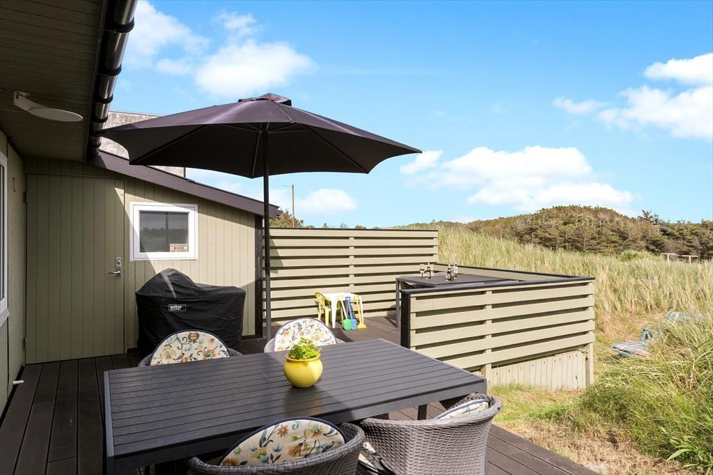 Unter freiem Himmel spürst du die direkte Verbindung zur Natur. Von der Terrasse gelangst du auf dein großes Naturgrundstück, auf dem du dich von morgens bis abends von der Sonne verwöhnen lassen kannst. Mit Gartenmöbeln, Liegestühlen und einem Sonnenschirm bietet die Terrasse viel Komfort. Der hauseigene Grill lädt zum stimmungsvollen Tagesausklang an der frischen Luft ein. Gern wirst du mit deinen Kindern auf dem schönen Naturgrundstück Ball spielen und umhertollen. Trotz der unmittelbaren Nähe zum Meer bieten sich dir am Haus gute Parkmöglichkeiten. Den Strand erreichst du mit deinen Lieben bereits nach einem kurzen Spaziergang - perfekt für herrliche Sommertage mit bestem Badevergnügen und für traumhaft schöne Strandspaziergänge mit Ausblick auf den Sonnenuntergang.