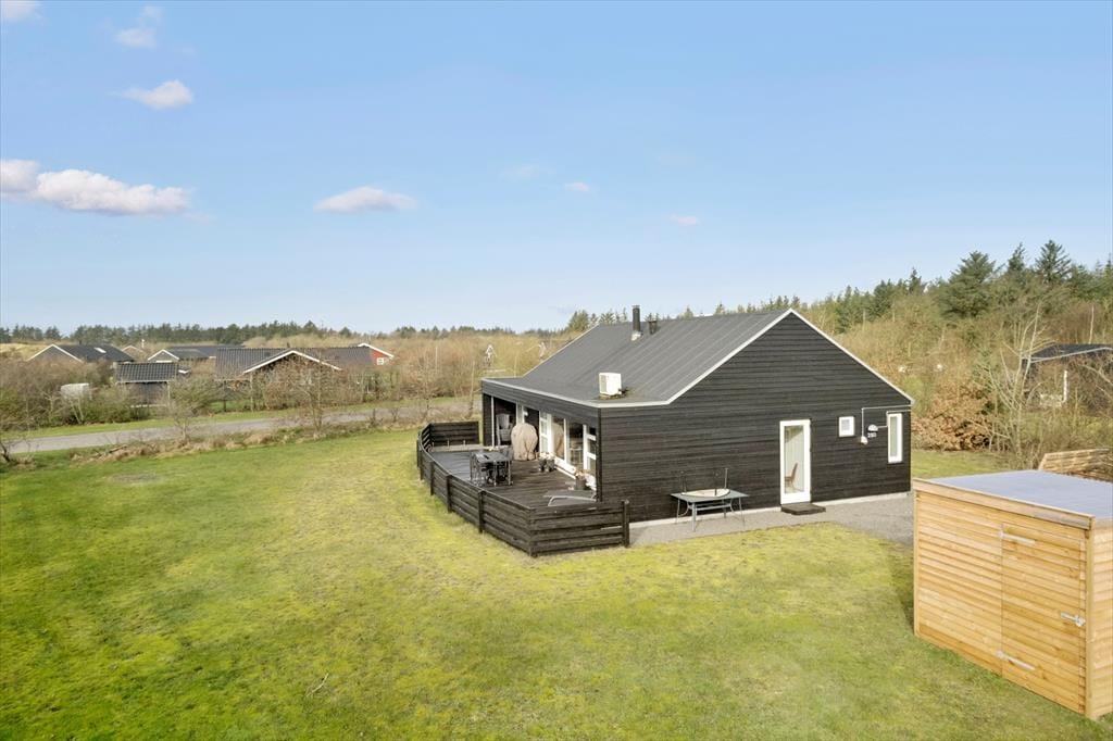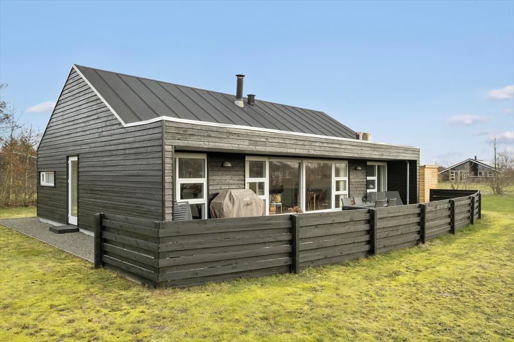 Das Ferienhaus liegt auf einem großen Naturgrundstück. Es gibt einen Ausgang vom Wohnzimmer zur abgeschirmten Terrasse, wo Sie die Sonne in Ruhe genießen können. Die Terrasse ist mit guten Gartenmöbeln und Liegestühlen sowie einem Grill ausgestattet. Das Haus ist nur eine kurze Entfernung vom Gemeinschaftsaktivitätsbereich entfernt.
