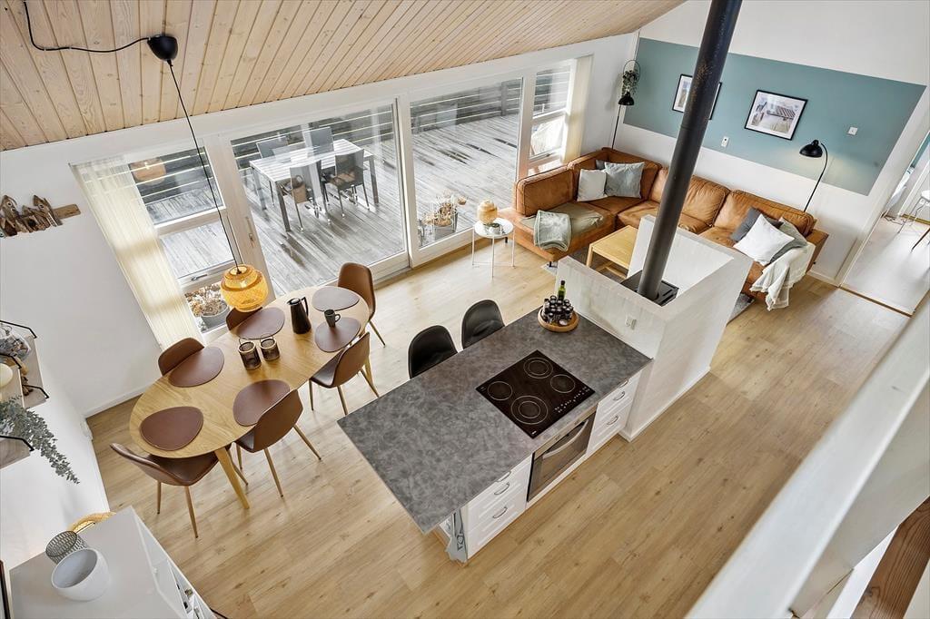 Das Ferienhaus bietet Platz für 6 Personen und verfügt über 3 Schlafzimmer, jeweils mit einem guten Doppelbett und Schrankraum. Es ist erlaubt, bis zu 2 Haustiere mitzubringen - Ihr Hund ist also während Ihres Aufenthalts herzlich willkommen. Das große Badezimmer verfügt über eine Sauna und einen Whirlpool, zudem gibt es ein praktisches Gäste-WC mit Dusche. In beiden Bädern gibt es natürlich Fußbodenheizung. Die Küche und das Wohnzimmer sind offen miteinander verbunden, und es gibt einen direkten Zugang vom Wohnzimmer zur Terrasse und zum Grundstück. Das Wohnzimmer ist mit einem bequemen Ecksofa möbliert, das wirklich zur Entspannung einlädt. Alles ist modern und hell eingerichtet.