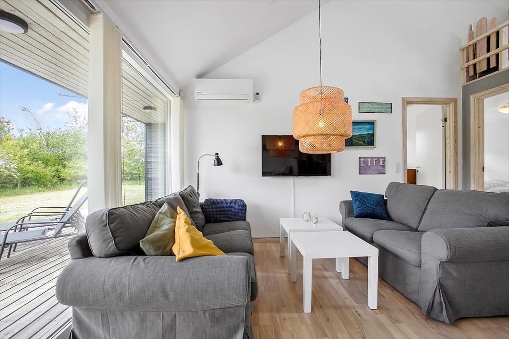 Ein modern und sehr geschmackvoll eingerichtetes Ferienhaus mit viel Lichteinfall aufgrund der großen Glasfassade im Süden. Die gut ausgestattete Küche befindet sich mitten im Haus und ist offen in den Wohnbereich mit Esszimmer, Kamin und Wohnzimmer mit Sitzgruppe und TV integriert. Auf diese Weise werden die meisten Aktivitäten zusammen verbracht und die Urlaubszeit bestens ausgenutzt. Darüber hinaus verfügt das Haus über drei Schlafzimmer mit insgesamt sechs Schlafplätzen, einen Dachboden mit zwei Matratzen und zwei Badezimmer, davon ist eins mit Whirlpool und Sauna eingerichtet. Das Mobiliar ist durchweg qualitativ hochwertig und es wurden viele gemütliche Details verwendet, die eine warme und einladende Stimmung verbreiten. Und mit Spülmaschine, Waschmaschine, Trockner und WLAN sind alle Annehmlichkeiten für einen komfortablen und einen erholsamen Urlaub mit Fokus auf gemeinsame Zeit mit der ganzen Familie vorhanden. Dieses Haus müssen Sie kennenlernen!