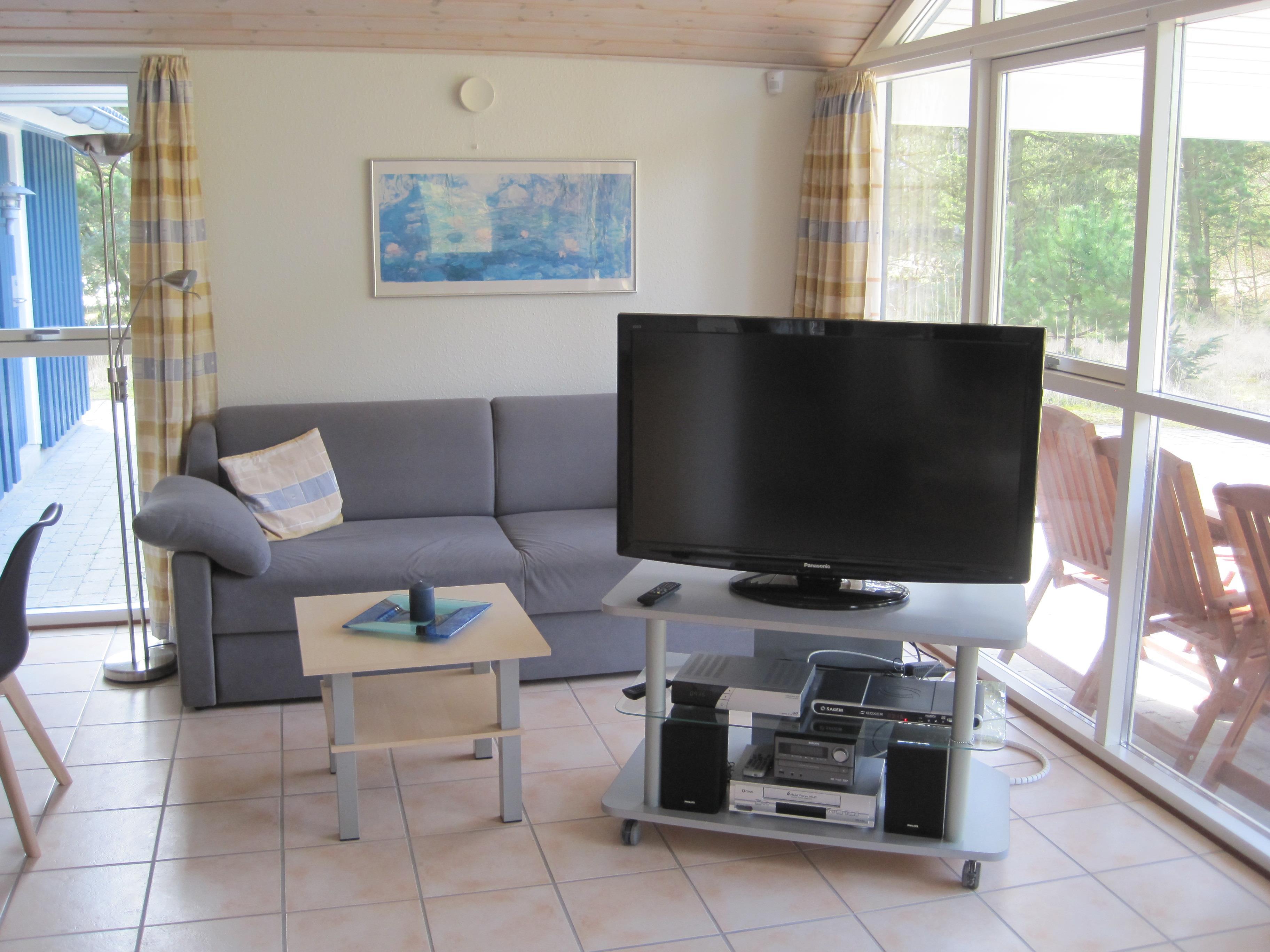 Es gibt zwei Badezimmer, von denen das eine mit einem Whirlpool und einer Sauna zu Entspannung und Wellness einlädt. Das Ferienhaus hat drei schöne Terrassen, - somit ist es gut möglich, an windigen Tagen einen geschützten Winkel zu finden. Die grösste Terrasse ist überdacht und befindet sich vor der Stube. Sie ist perfekt für die langen Sommerabende geeignet. Für die Kinder gibt es sowohl einen Sandkasten als auch eine Schaukel auf dem Grundstück und einen kleinen Spielplatz ganz in der Nähe. Hier können die Kinder frei spielen, zudem es bei Tranum auch einen grossen Waldspielplatz gibt und der wundervolle Tranumstrand nur wenige Kilometer entfernt liegt.