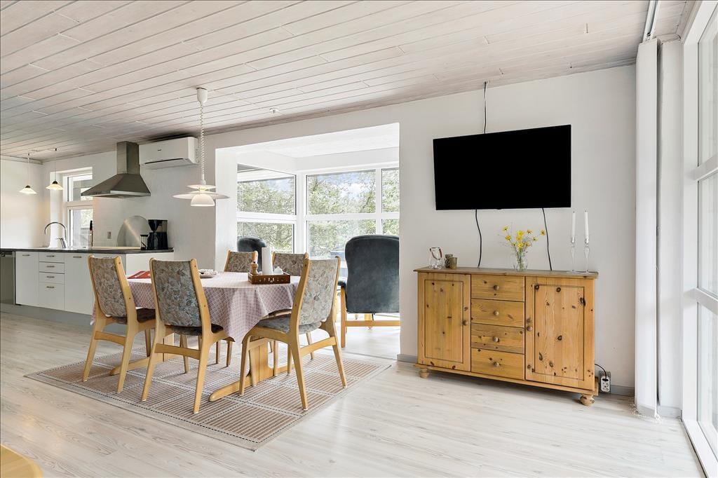 Das Ferienhaus liegt in einer Sackgasse, was die friedliche Atmosphäre noch verstärkt. Wenn Sie Lust auf ein erfrischendes Bad oder einen entspannenden Spaziergang entlang der Nordsee haben, ist der Strand nur 1,2 Kilometer entfernt. Der Tversted Strand ist einer der schönen, weißen Sandstrände entlang der Tannis Bugt, mit hohen Dünen und einem äußerst beliebten Eiscafé, das Besucher aus nah und fern anzieht. Es ist auch nur eine kurze Entfernung zum Stadtzentrum von Tversted mit gemütlichen Restaurants und Einkaufsmöglichkeiten. Wenn Sie eher an Waldwanderungen interessiert sind, begeben Sie sich auf ein Abenteuer in der nahegelegenen Tversted Klitplantage. Hirtshals und Skagen sind ebenfalls einen Besuch wert, und beide Städte liegen in bequemer Fahrdistanz vom Ferienhaus entfernt.