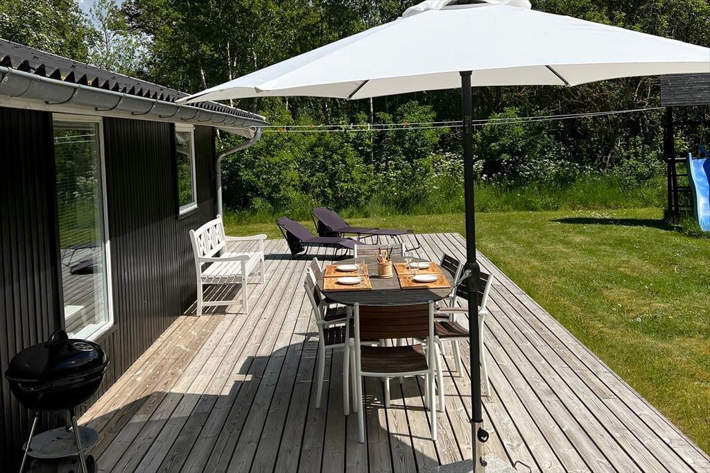 Hier können Sie auf der großen Terrasse entspannen, die Sonne genießen oder im Schatten des überdachten Bereichs Schutz finden. Das Ferienhaus liegt auf einem Eckgrundstück mit einem großen und gepflegten Garten in der Nähe von Tversted Stadt. Es gibt Terrassen sowohl nach Südosten als auch nach Westen, sodass Sie dem Lauf der Sonne folgen und die letzten Strahlen in der friedlichen Abendatmosphäre genießen können.