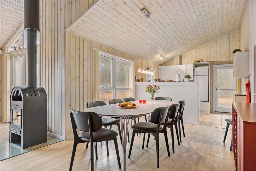 Im Inneren erwartet dich eine helle und einladende Atmosphäre, die sofort zum Entspannen einlädt. Das Wohnzimmer ist gemütlich eingerichtet mit bequemen Möbeln und einem Kamin, der an kühleren Tagen für Wärme und eine gemütliche Stimmung sorgt. Große Fenster lassen viel Tageslicht herein und bieten einen schönen Blick auf die umliegende Natur. Die offene und praktische Küche ist ideal, um leckere Mahlzeiten zuzubereiten, während du mit deiner Familie plauderst. Die drei Schlafzimmer bieten eine ruhige Atmosphäre für erholsame Nächte, und das funktionale und moderne Badezimmer ist perfekt, um sich auf einen neuen Urlaubstag vorzubereiten.