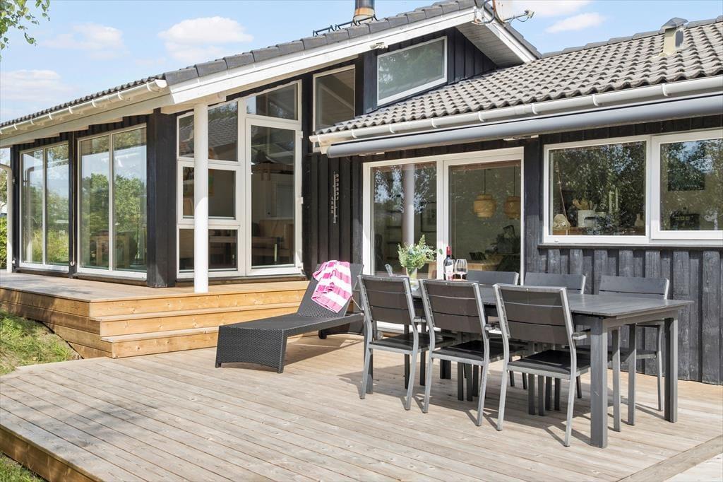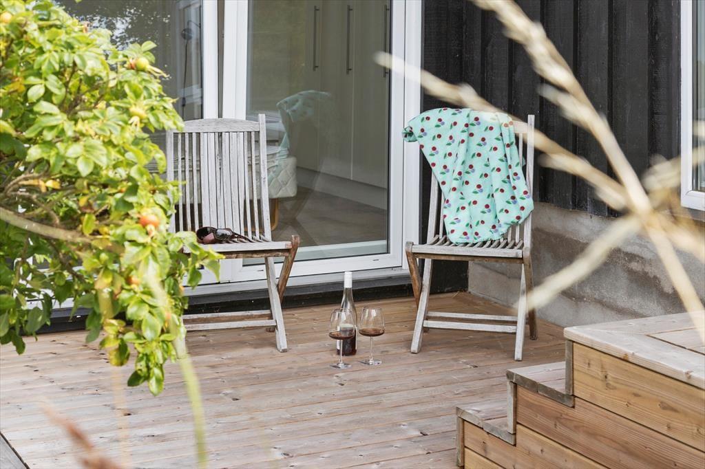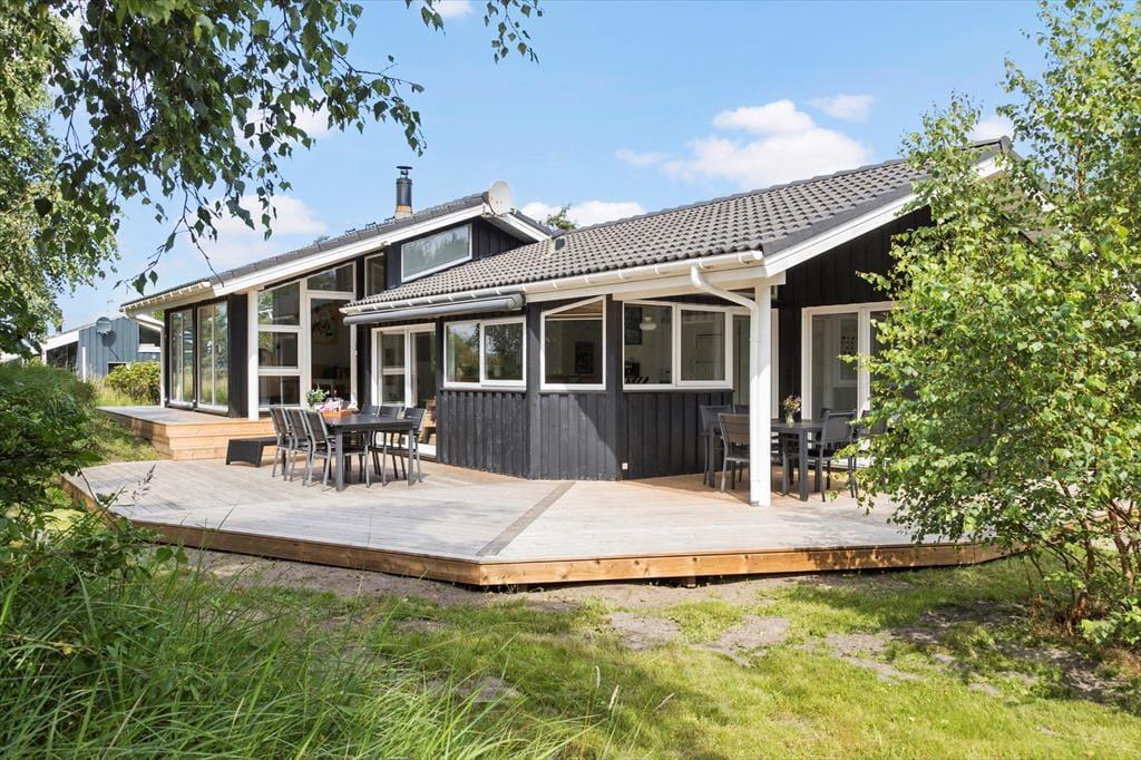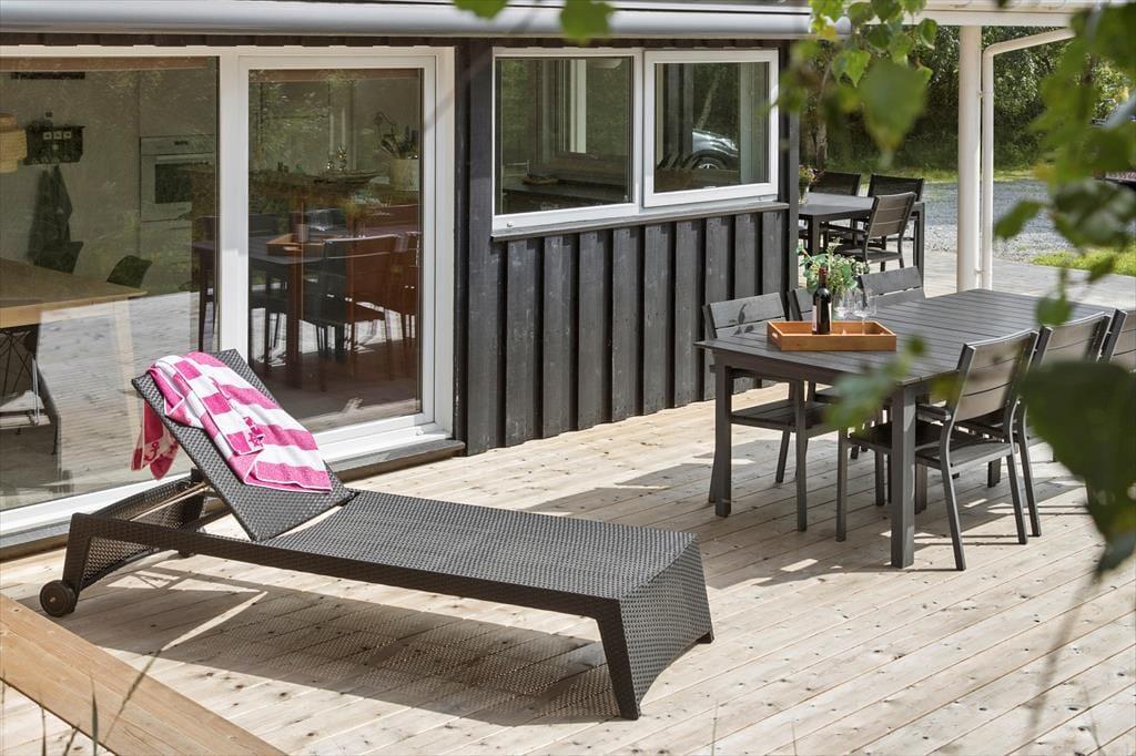 Das Ferienhaus liegt auf einem großzügigen Grundstück mit viel Platz, um die naturschöne Umgebung zu genießen. Die große Terrasse lädt zu gemütlichen Stunden unter freiem Himmel ein – vom morgendlichen Kaffee in der Sonne bis hin zu leckeren Grillabenden, während die Nacht hereinbricht. Der Garten ist eine Oase der Ruhe und Weite, in der Kinder frei spielen und Erwachsene einen ruhigen Platz finden können, um ein Buch zu lesen oder einfach dem Vogelgezwitscher zu lauschen. Die umgebenden Bäume sorgen für Privatsphäre und Harmonie, sodass Sie sich wirklich entspannen und die Natur um sich herum genießen können.