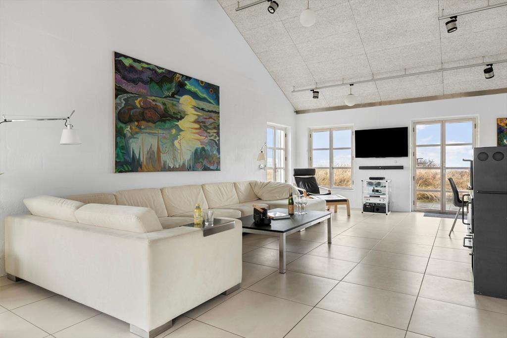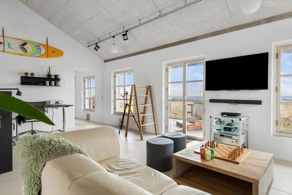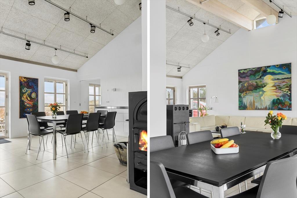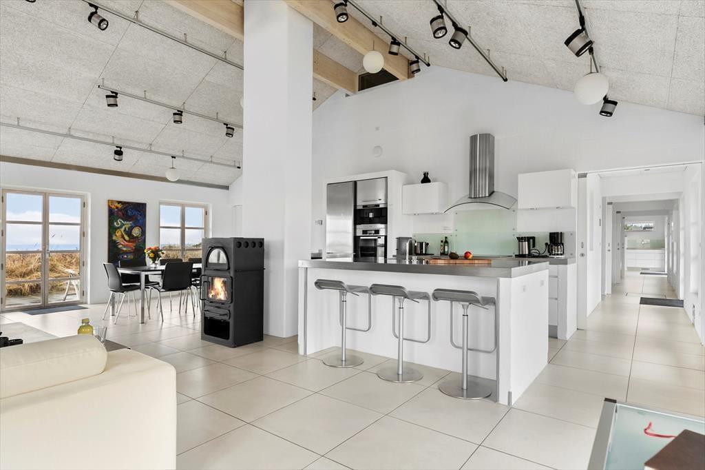 Schon beim ersten Schritt in dieses exklusive Ferienhaus auf Mellemklitvej 8 werdet ihr von einer Atmosphäre aus Luxus, Qualität und Komfort empfangen. Die großen Panoramafenster mit Blick auf die Nordsee lassen viel Licht herein und schaffen ein fantastisches Raumgefühl im offenen Wohnbereich. Originalkunst an den Wänden und die offene Dachkonstruktion verstärken die luftige Atmosphäre. Das Wohnzimmer lädt zu gemütlichen Abenden vor dem Kaminofen ein, während die stilvolle Küche mit einem Weinkühler und modernen Geräten ausgestattet ist – perfekt, um Mahlzeiten in bester Qualität zuzubereiten. Die durchdachte Raumaufteilung mit einem Wohnzimmer und einem Kaminofen an beiden Enden des Hauses ermöglicht es, das Haus in verschiedene Bereiche zu unterteilen – ideal sowohl für Paare auf einem romantischen Urlaub als auch für größere Familien, die gemeinsam reisen. Nach einem langen Tag in der Natur könnt ihr euch in der Sauna mit wohltuender Wärme verwöhnen. Technologische Feinheiten wie intelligente Licht- und Wärmesteuerung, eine große Solaranlage und eine zentrale Belüftung sorgen das ganze Jahr über für eine angenehme Temperatur und einen niedrigen Energieverbrauch.