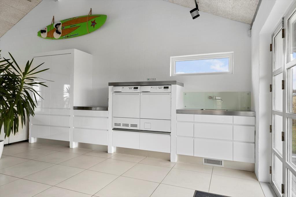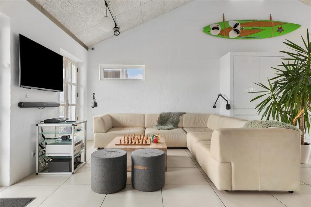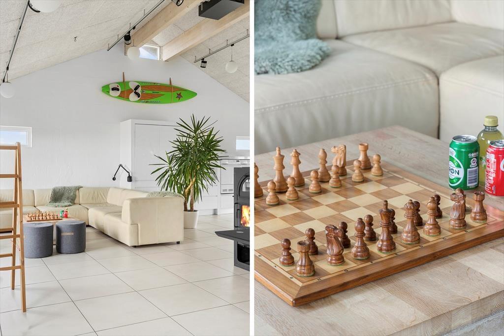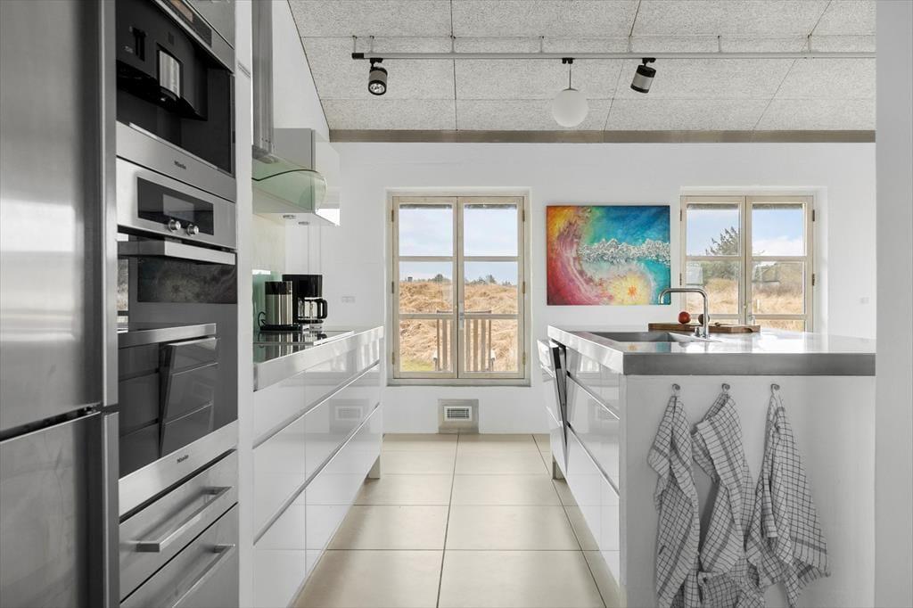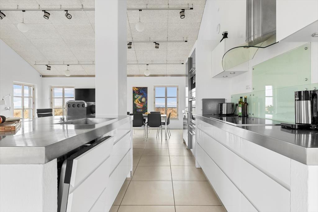 Schon beim ersten Schritt in dieses exklusive Ferienhaus auf Mellemklitvej 8 werdet ihr von einer Atmosphäre aus Luxus, Qualität und Komfort empfangen. Die großen Panoramafenster mit Blick auf die Nordsee lassen viel Licht herein und schaffen ein fantastisches Raumgefühl im offenen Wohnbereich. Originalkunst an den Wänden und die offene Dachkonstruktion verstärken die luftige Atmosphäre. Das Wohnzimmer lädt zu gemütlichen Abenden vor dem Kaminofen ein, während die stilvolle Küche mit einem Weinkühler und modernen Geräten ausgestattet ist – perfekt, um Mahlzeiten in bester Qualität zuzubereiten. Die durchdachte Raumaufteilung mit einem Wohnzimmer und einem Kaminofen an beiden Enden des Hauses ermöglicht es, das Haus in verschiedene Bereiche zu unterteilen – ideal sowohl für Paare auf einem romantischen Urlaub als auch für größere Familien, die gemeinsam reisen. Nach einem langen Tag in der Natur könnt ihr euch in der Sauna mit wohltuender Wärme verwöhnen. Technologische Feinheiten wie intelligente Licht- und Wärmesteuerung, eine große Solaranlage und eine zentrale Belüftung sorgen das ganze Jahr über für eine angenehme Temperatur und einen niedrigen Energieverbrauch.