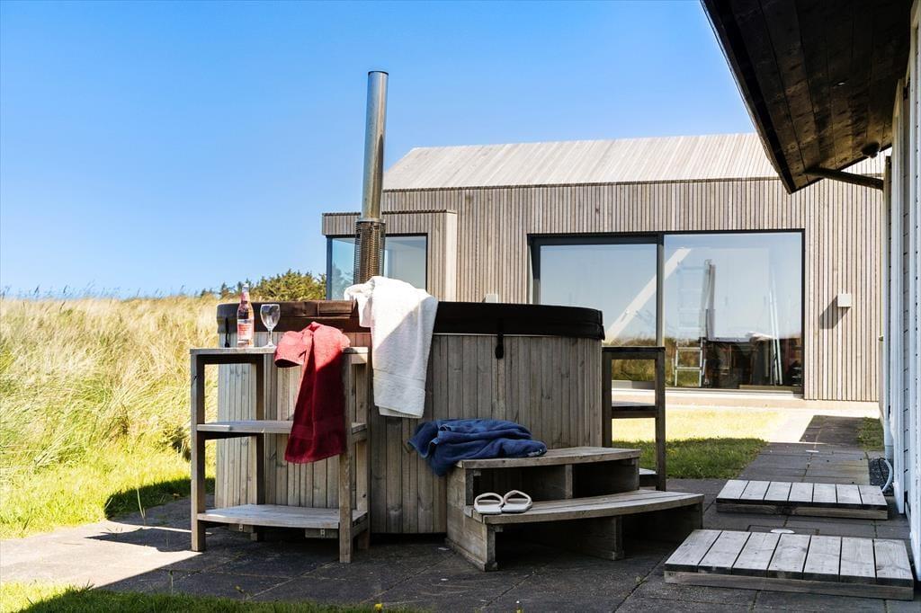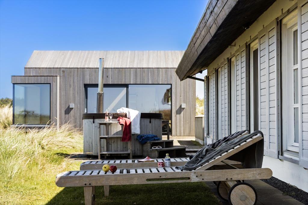 Das Haus liegt auf einem großzügigen, 4000 m² großen, ungestörten Naturgrundstück mit einer vielfältigen Tierwelt – ein wahres Wellness-Paradies. Die große Terrasse lädt zum Sonnenbaden ein, während der Badezuber mit warmem Sprudelwasser unter freiem Himmel lockt. Ob ihr morgens über den kleinen Privatweg zum Strand spaziert und ein erfrischendes Bad in der Nordsee nehmt oder am Abend unter dem Sternenhimmel entspannt – hier findet ihr Ruhe und Frieden, und der Blick von der Terrasse ist einfach immer atemberaubend. Genießt das Panorama über die ruhige Dünenlandschaft und spürt die frische Meeresluft.