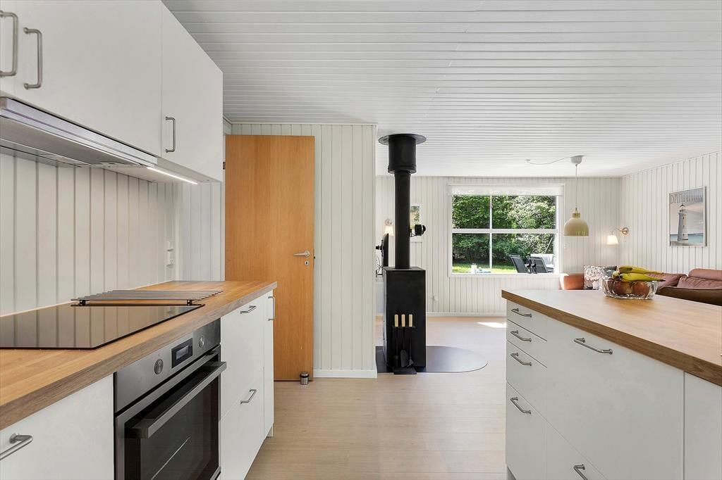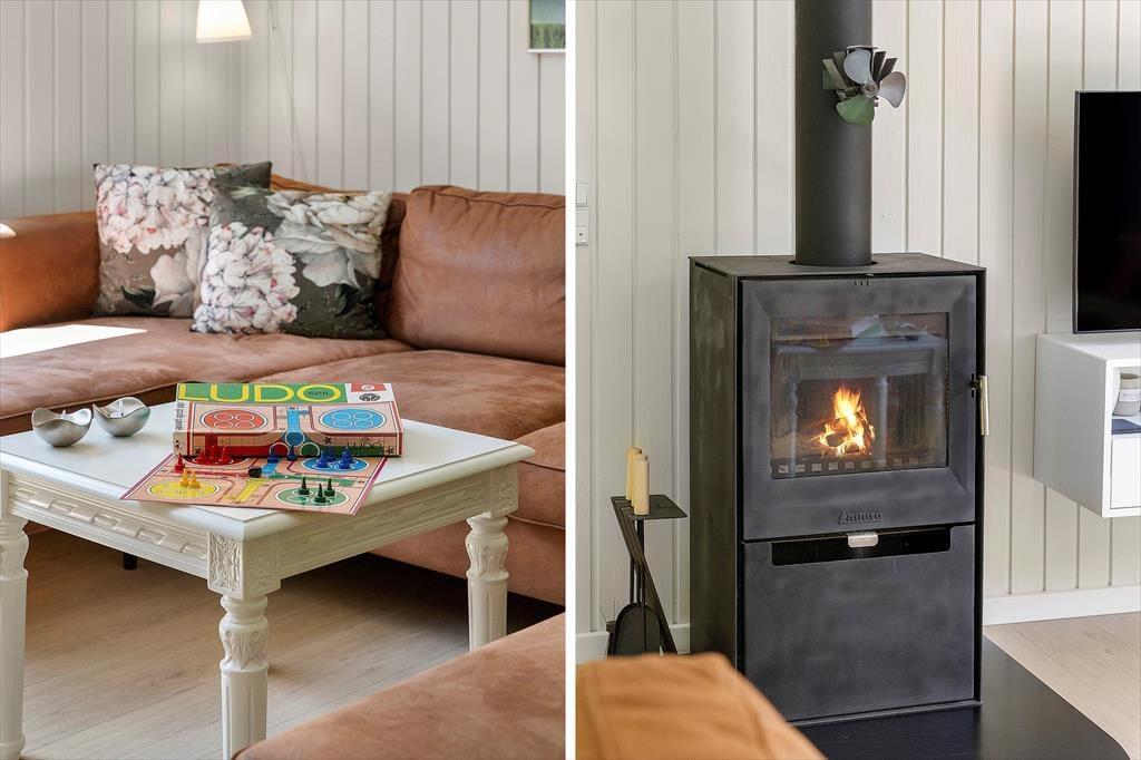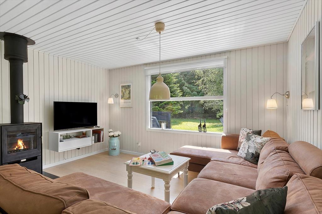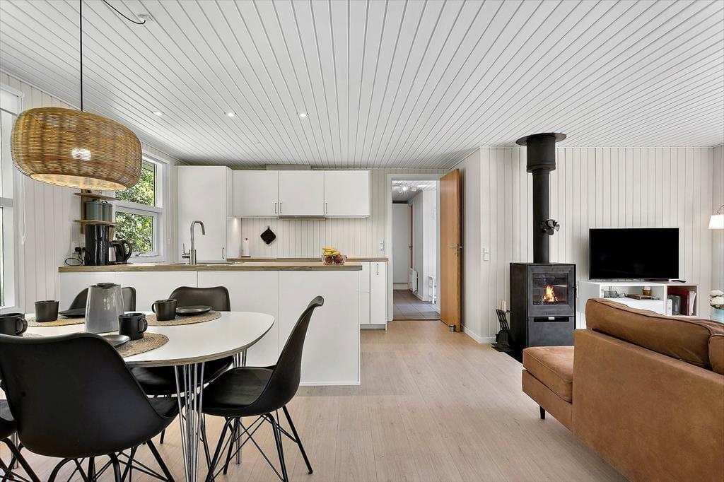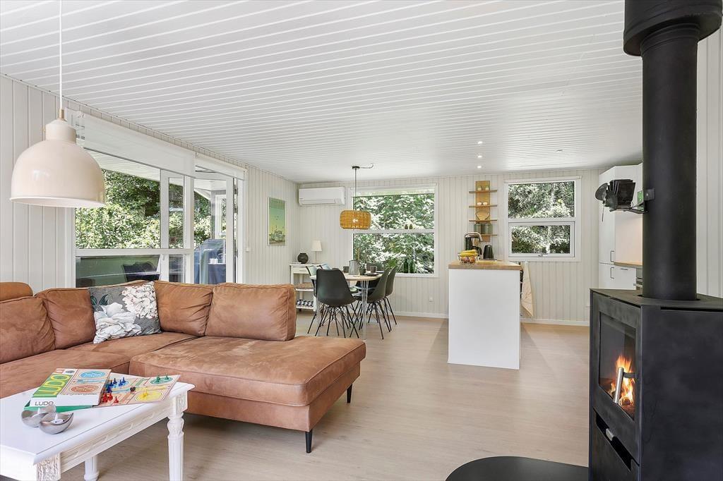 Das Ferienhaus empfängt dich mit einer hellen und freundlichen Atmosphäre, die sofort Ruhe und Urlaubsstimmung vermittelt. Das Wohnzimmer ist mit bequemen Möbeln und großen Fenstern ausgestattet, die die Natur hereinlassen und ein großzügiges Raumgefühl schaffen. Der Kaminofen sorgt für zusätzliche Gemütlichkeit an kühlen Abenden, während die offene Küche das Kochen und Beisammensein erleichtert. Die Schlafzimmer sind komfortabel und einladend – perfekt für entspannte Urlaubstage.