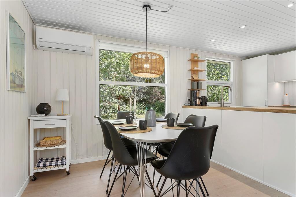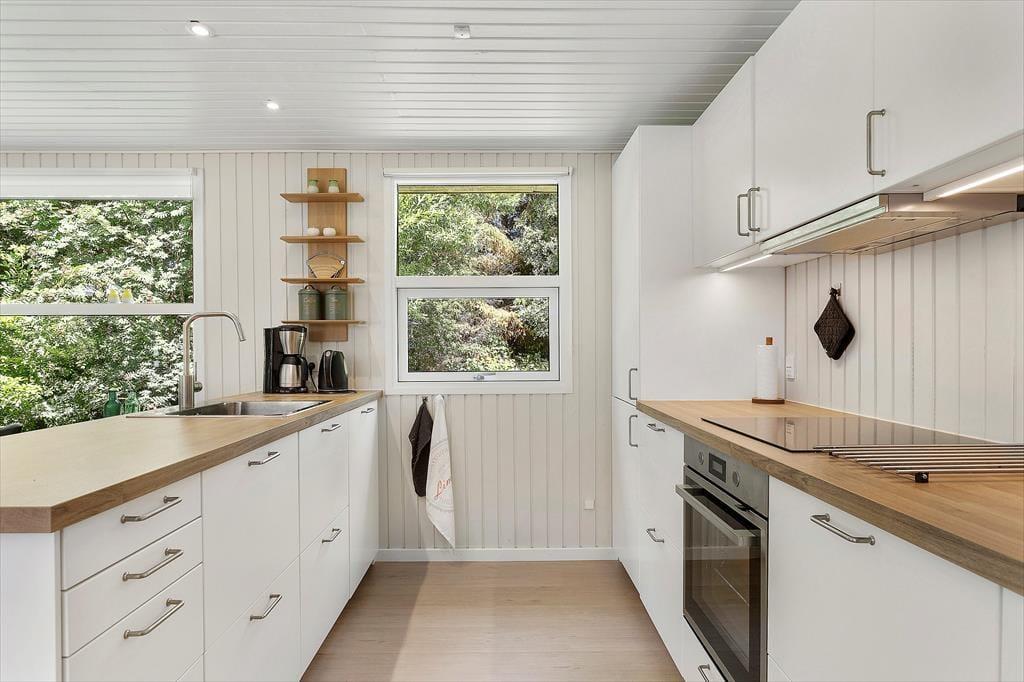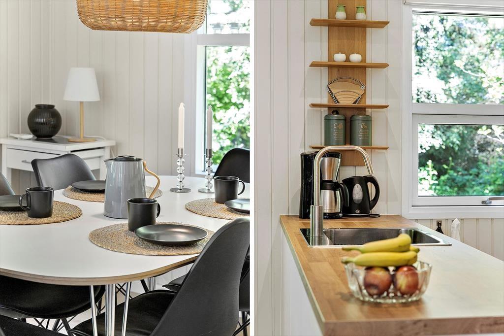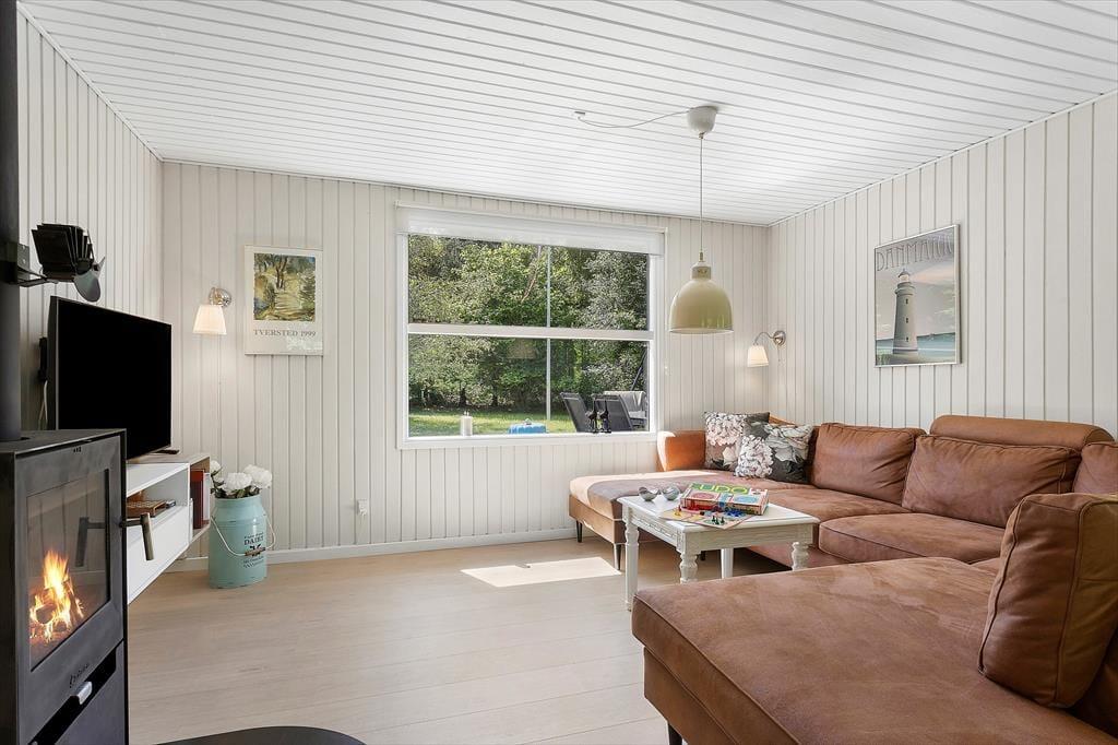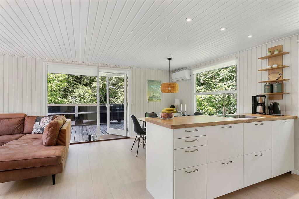 Das Ferienhaus empfängt dich mit einer hellen und freundlichen Atmosphäre, die sofort Ruhe und Urlaubsstimmung vermittelt. Das Wohnzimmer ist mit bequemen Möbeln und großen Fenstern ausgestattet, die die Natur hereinlassen und ein großzügiges Raumgefühl schaffen. Der Kaminofen sorgt für zusätzliche Gemütlichkeit an kühlen Abenden, während die offene Küche das Kochen und Beisammensein erleichtert. Die Schlafzimmer sind komfortabel und einladend – perfekt für entspannte Urlaubstage.