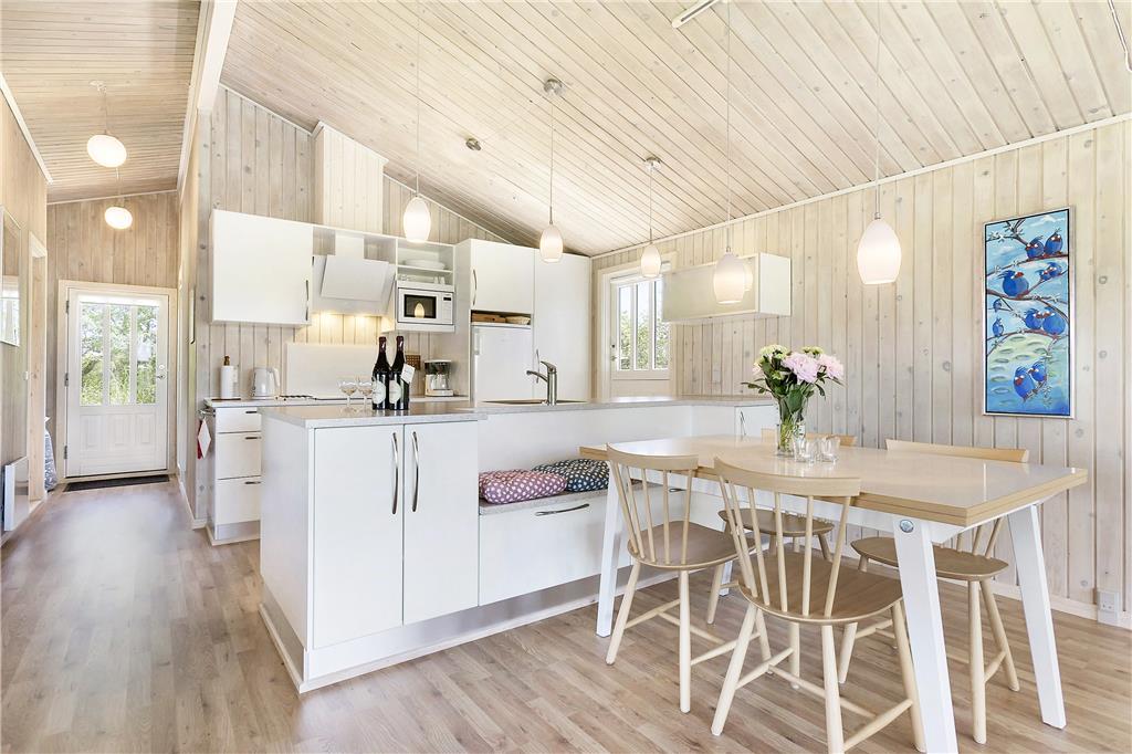 Das Innere des Hauses besticht durch eine helle und freundliche Einrichtung, die sofort ein Gefühl von Geborgenheit vermittelt. Große Fenster lassen das Tageslicht ins Wohnzimmer strömen, das auf Gemütlichkeit und Komfort ausgelegt ist. Hier kannst du vor dem Kamin entspannen oder dich mit deinen Liebsten am Esstisch versammeln, um Brettspiele zu spielen und Gespräche zu führen. Die offene Küche ermöglicht es dir, das Beisammensein zu genießen, während du die Mahlzeiten zubereitest. Die einladenden Schlafzimmer laden zum Ausruhen ein, sodass du erfrischt in den neuen Tag starten kannst.