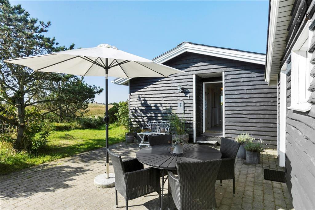 Das Leben draußen lässt sich an dieser Adresse in vollen Zügen genießen. Die Terrasse des Ferienhauses ist eingezäunt, sodass du deine Privatsphäre genießen und gleichzeitig die Kleinen unbesorgt spielen lassen kannst. An sonnigen Tagen wird die Terrasse schnell zum natürlichen Mittelpunkt – perfekt für einen Morgenkaffee an der frischen Luft oder ein leckeres Abendessen vom Grill, begleitet vom Rauschen des Windes in den Bäumen. Der Garten ist grün und großzügig angelegt und bietet viel Platz für Ballspiele und Toben auf dem Rasen. Durch die ruhige und abgeschiedene Lage des Grundstücks, fernab von Verkehr und Lärm, ist es wunderbar still – ideal, um die Batterien wieder aufzuladen und den Sommer in aller Ruhe zu genießen.