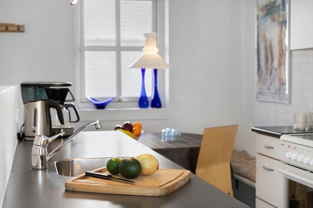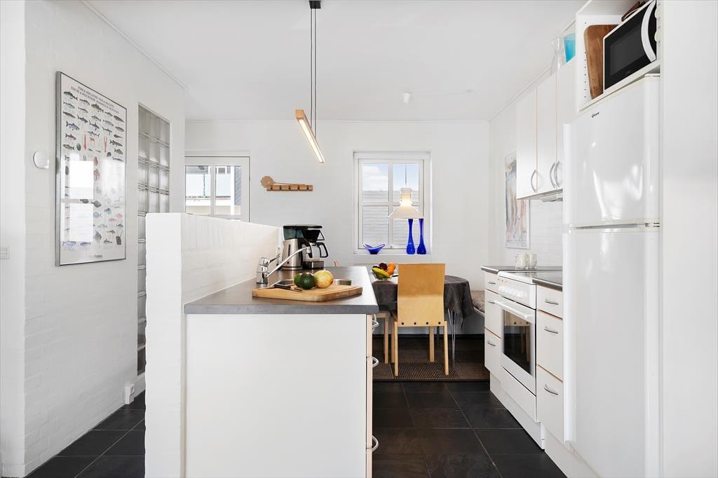 Obwohl die Wohnung mitten in der Stadt liegt, kannst du das Leben im Freien auf einer kleinen Terrasse und einem gemütlichen Balkon genießen. Die Terrasse bietet dir die Möglichkeit, im Freien zu essen oder mit einem guten Buch zu entspannen, während du die sommerliche Atmosphäre aufsaugst. Dank der kurzen Entfernung zum Strand von Tversted hast du jederzeit Zugang zu einem erfrischenden Bad in der Nordsee oder einem Spaziergang entlang der Küste, wo das Rauschen der Wellen beruhigend wirkt.