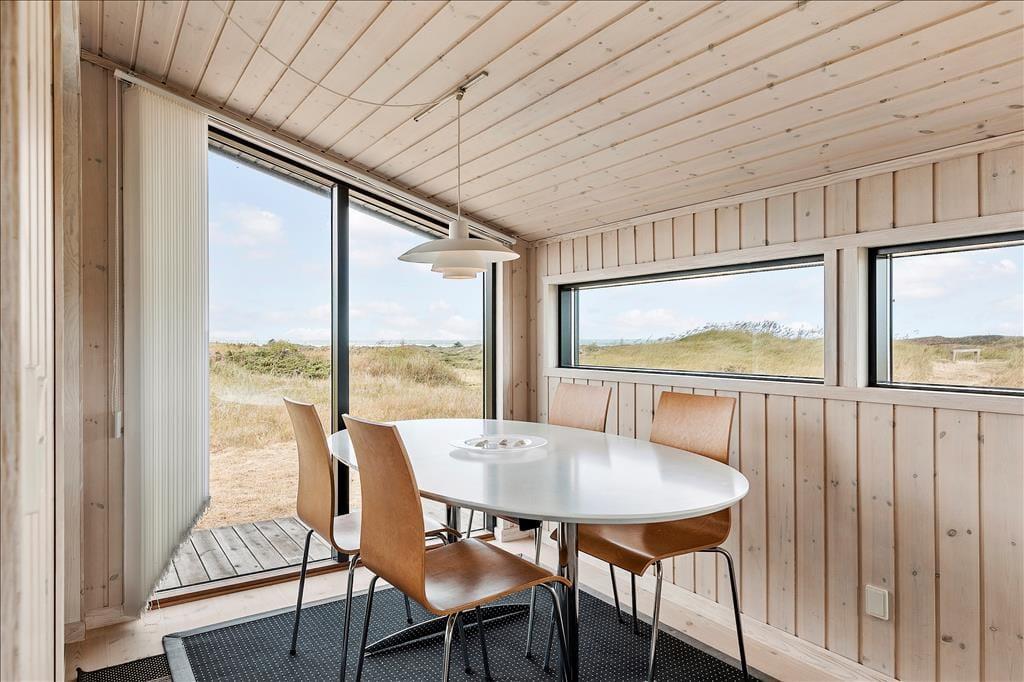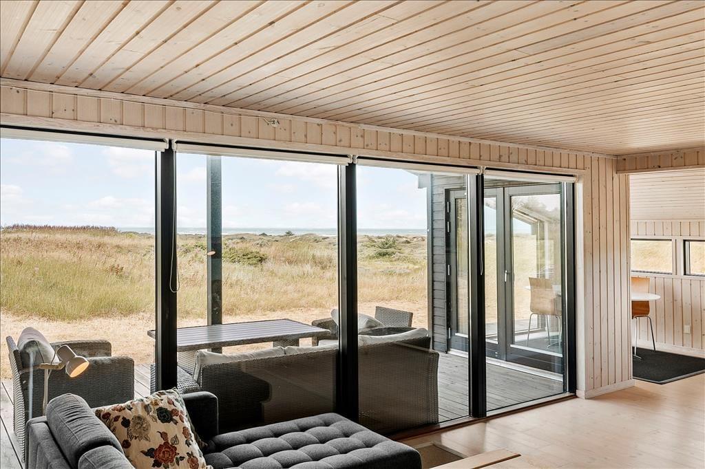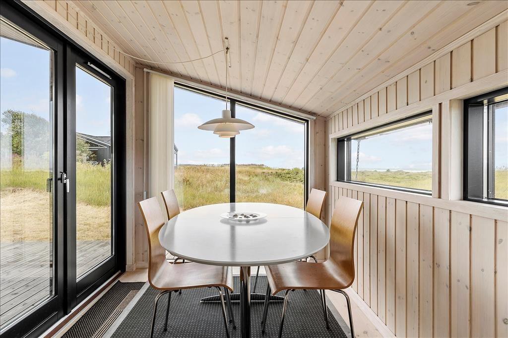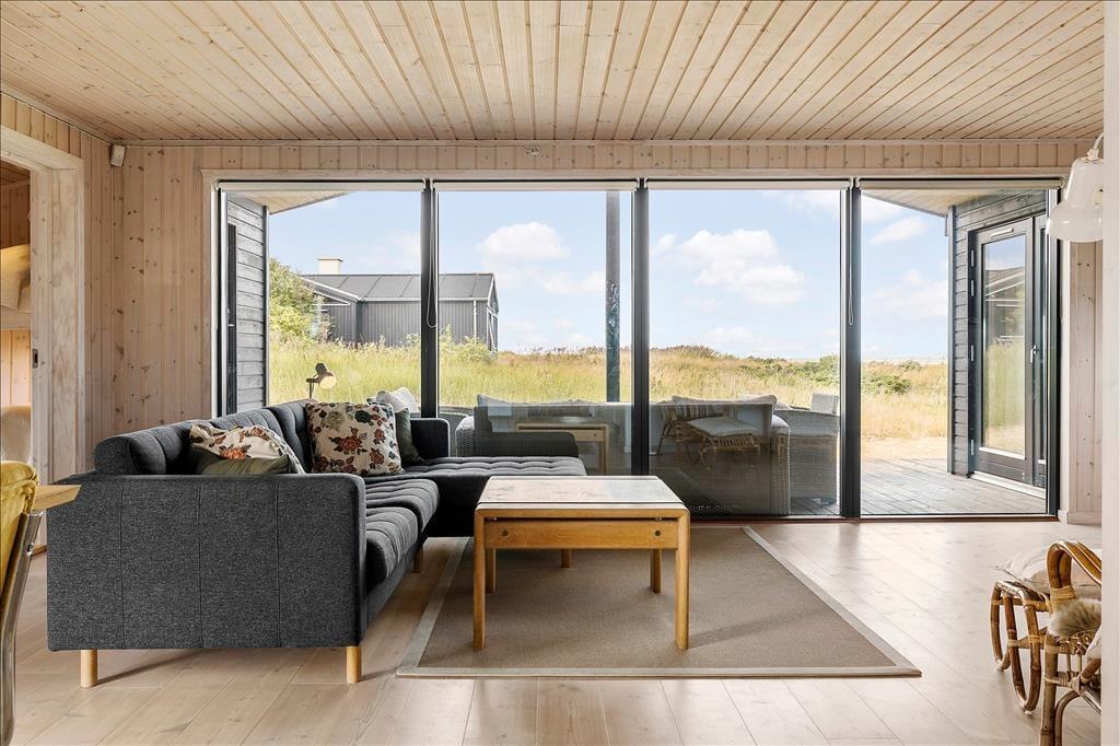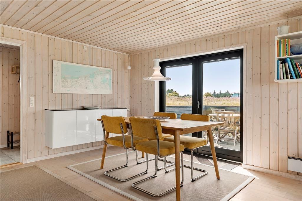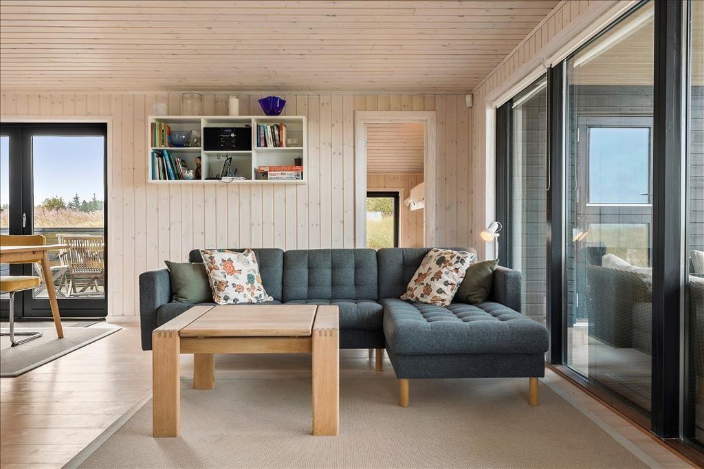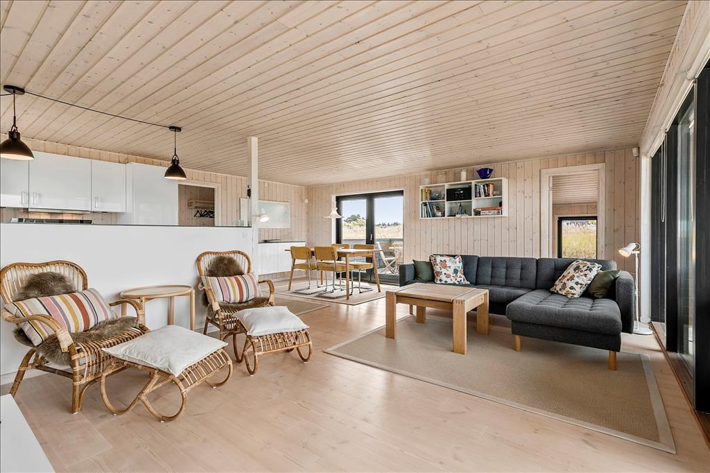 Im Inneren des Ferienhauses werden Sie von einem hellen und geräumigen Wohnbereich empfangen, in dem große Fenster viel Tageslicht hereinlassen und eine luftige Atmosphäre schaffen. Das Wohnzimmer ist das Herz des Hauses, wo Sie sich auf dem Sofa mit einem guten Buch entspannen, sich am Esstisch zu gemütlichen Mahlzeiten versammeln oder einfach den sich stetig verändernden Blick auf die Natur genießen können. Die Küche ist offen und funktional, sodass Sie Ihre Lieblingsgerichte zubereiten können, während das Gespräch mit Ihren Liebsten weitergeht. Die hellen Räume und das durchdachte Layout schaffen eine warme und einladende Atmosphäre, die Ihnen vom ersten Moment an das Gefühl gibt, zu Hause zu sein.