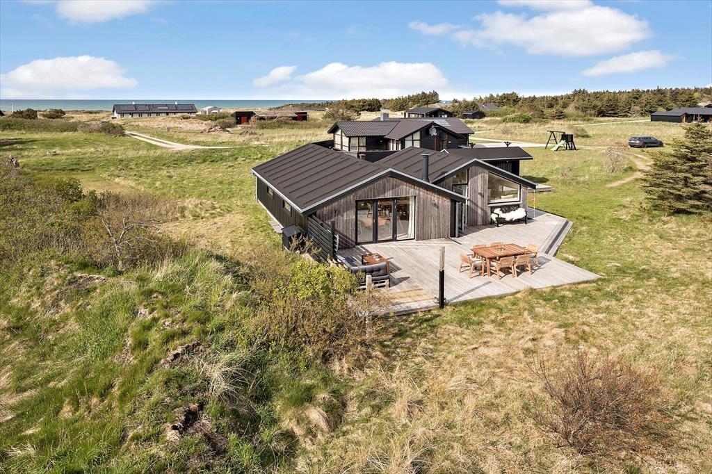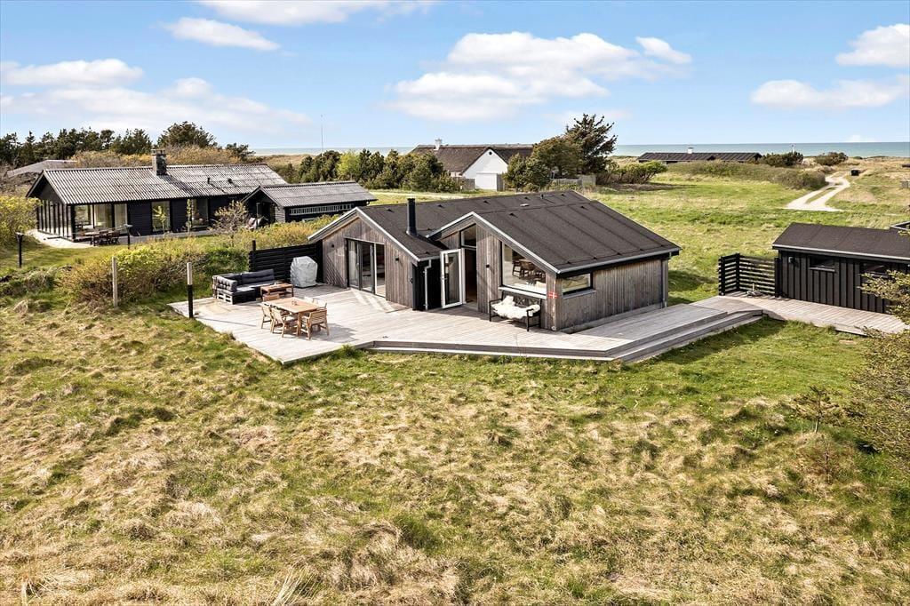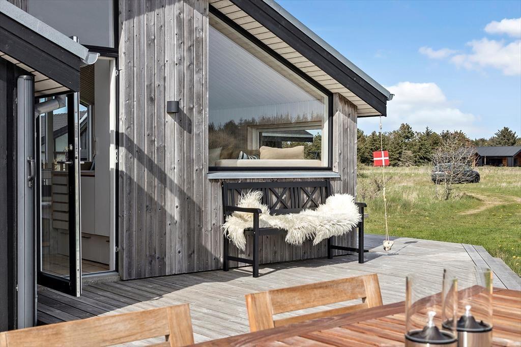 Wenn die Sonne scheint, kannst du deinen Kaffee ganz entspannt auf der wunderschönen Terrasse genießen, wo du die Ruhe und die friedliche Umgebung auf dich wirken lassen kannst. Die Terrasse bietet viele Möglichkeiten für das Leben im Freien – egal, ob du in einem Liegestuhl entspannen, in ein gutes Buch eintauchen oder den Grill anzünden und eine köstliche Mahlzeit unter freiem Himmel genießen möchtest. Die Lage des Ferienhauses inmitten einer idyllischen Naturlandschaft macht es leicht, dem Alltag zu entfliehen. Lass dich vom Zwitschern der Vögel und dem Duft der Strandhafer verzaubern. Rund um das Haus gibt es viel Platz, sodass sowohl Kinder als auch Erwachsene spielen, entspannen und den Urlaub in vollen Zügen genießen können.