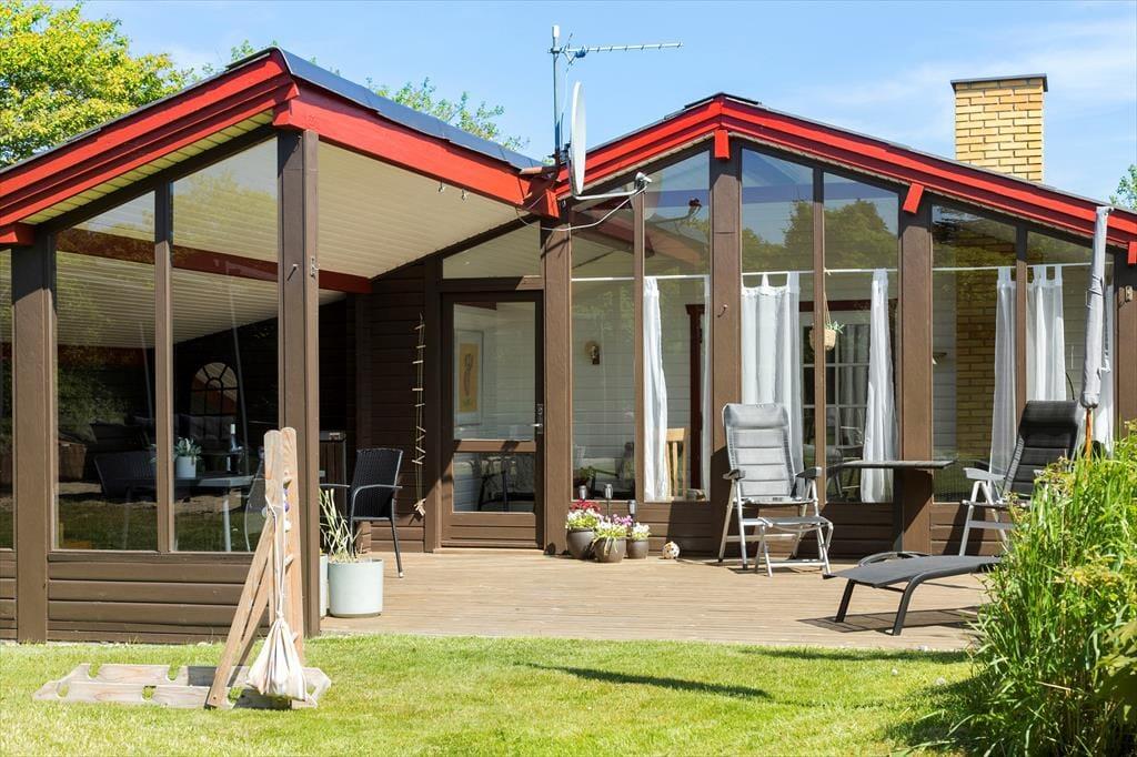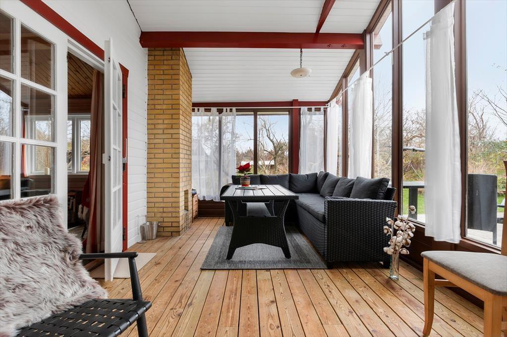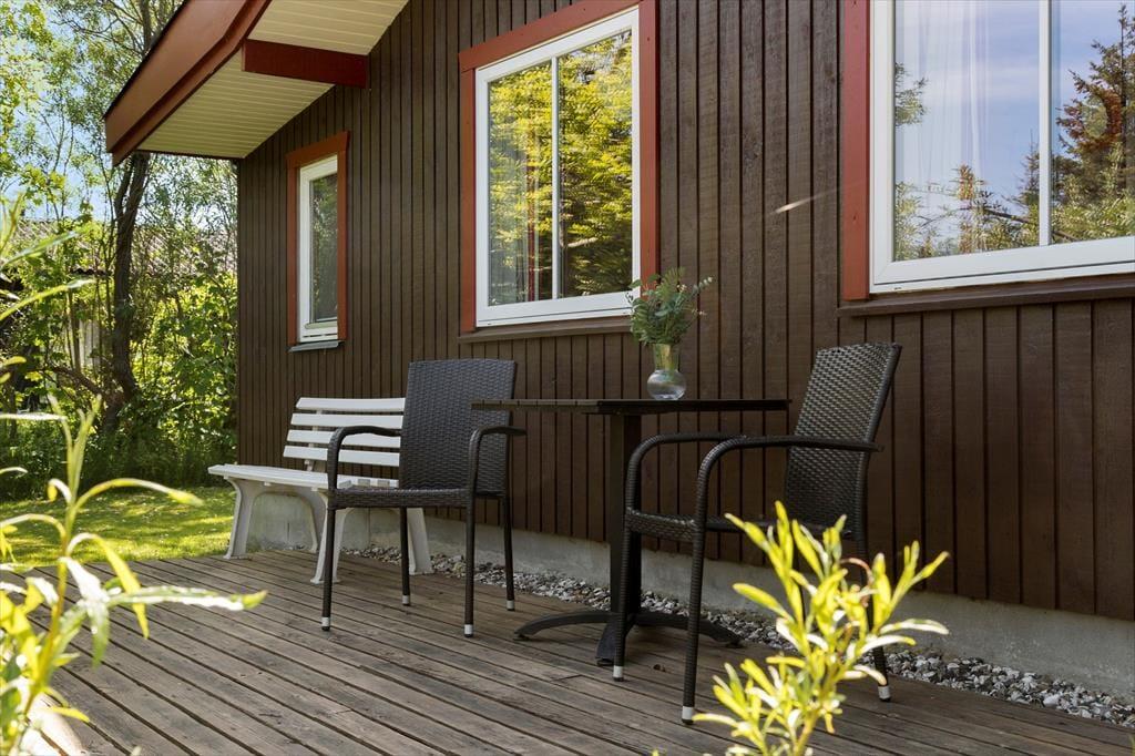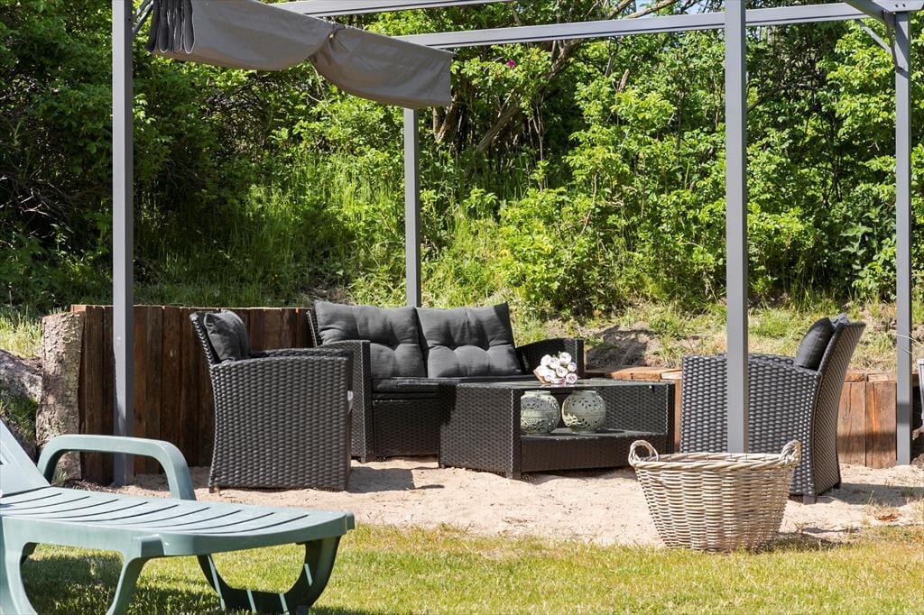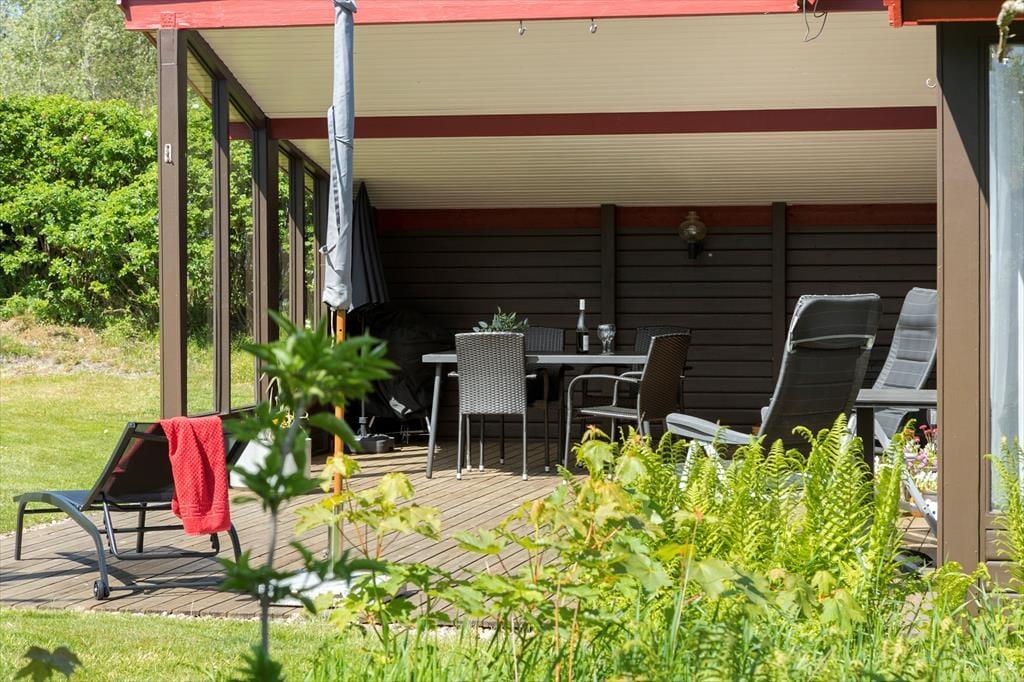 Man kann sich kaum dem Charme des Outdoor-Lebens entziehen, das direkt vor der Tür auf dich wartet. Das Ferienhaus liegt auf einem großen, grünen Naturgrundstück, das geradezu nach Spiel, Entspannung und Gemeinsamkeit ruft. Auf der Terrasse kannst du morgens mit einer Tasse Kaffee sitzen und dem Zwitschern der Vögel in den Bäumen lauschen, während der Morgentau langsam von der Sonne vertrieben wird. Am Nachmittag findest du ein warmes Plätzchen in der Sonne oder kuschelst dich mit einer Decke in den Schatten und verbringst die Zeit mit einem guten Buch. Die Terrassen laden zu langen, hellen Sommerabenden mit Grill, Lachen – und vielleicht einem Kartenspiel oder einem Glas Wein ein, wenn die Dämmerung hereinbricht. Du wirst dich hier mit Sicherheit weit weg vom Alltagsstress und ganz nah an dem fühlen, was wirklich zählt.