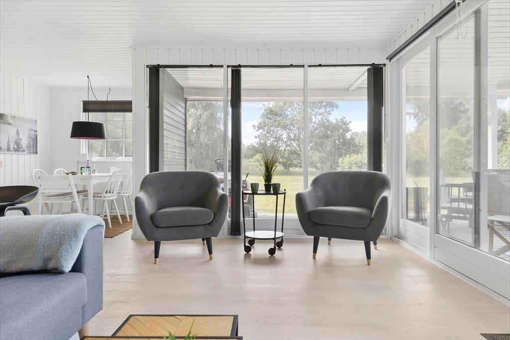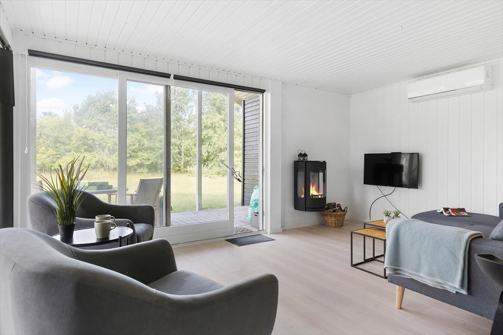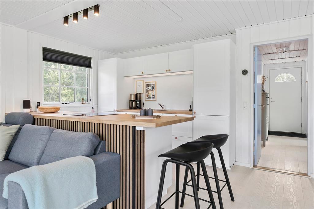 Beim Betreten empfängt Sie eine helle und einladende Einrichtung, die sofort für Entspannung sorgt. Das Ferienhaus wurde mit viel Liebe zum Detail renoviert und vereint moderne Funktionalität mit dem ursprünglichen Charme eines klassischen Sommerhauses. Das Wohnzimmer bildet den natürlichen Mittelpunkt des Hauses – hier ist Platz für gesellige Spieleabende, spannende Filme oder entspannte Stunden mit einem Buch und einer Tasse Kaffee. Die offene Küche ist praktisch in den Wohnbereich integriert, sodass Gespräche und gemeinsames Beisammensein beim Kochen und Essen ganz selbstverständlich werden. Die Schlafzimmer sind schlicht und gemütlich eingerichtet, sodass Sie ruhig schlafen und erholt in einen neuen Urlaubstag starten können.