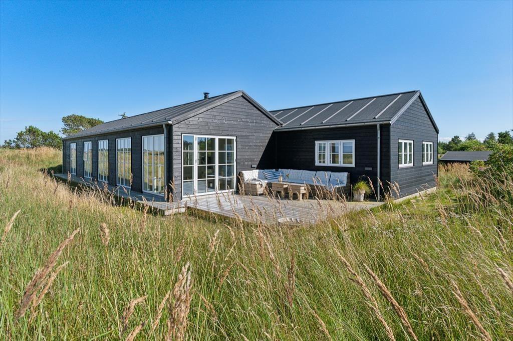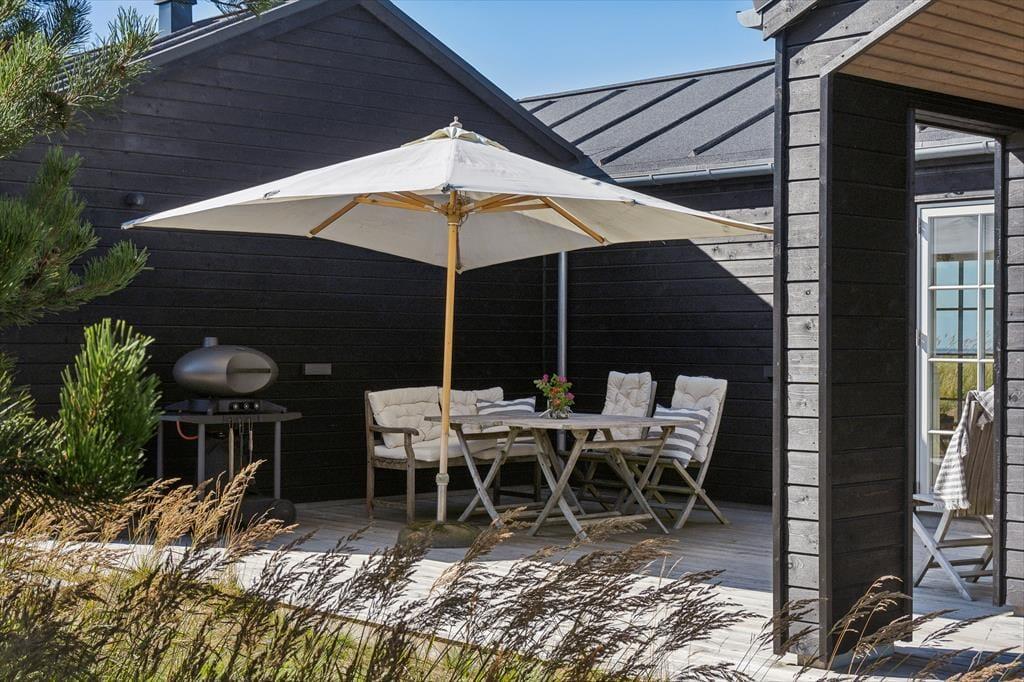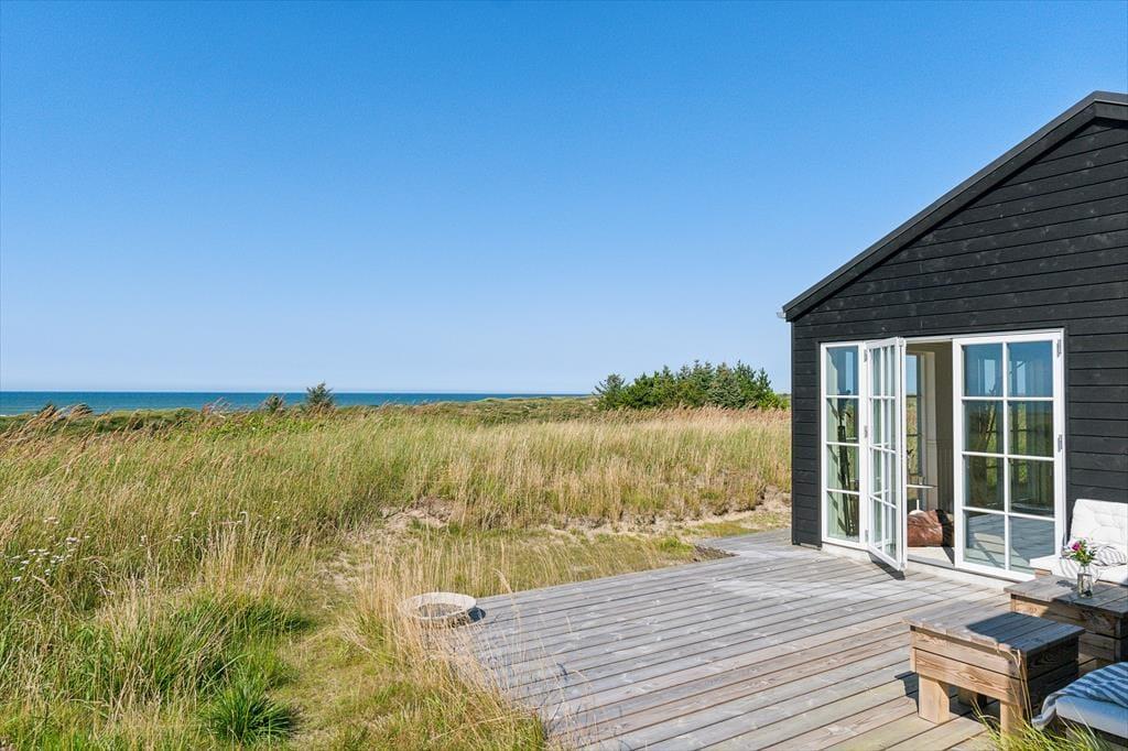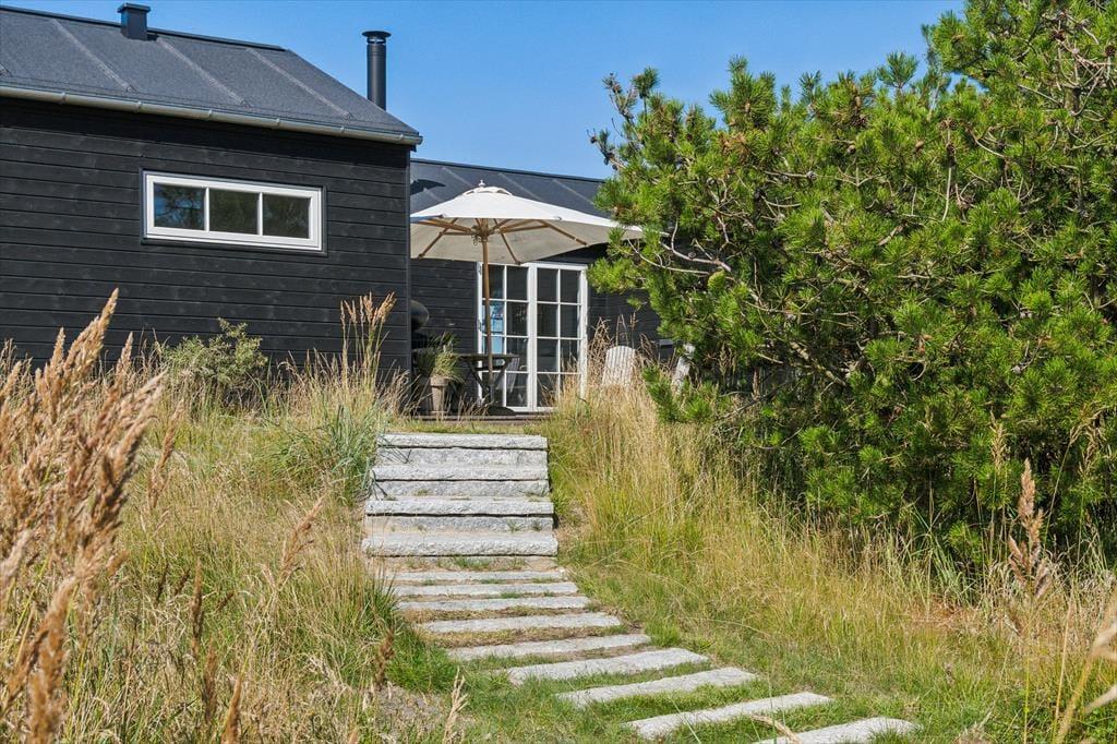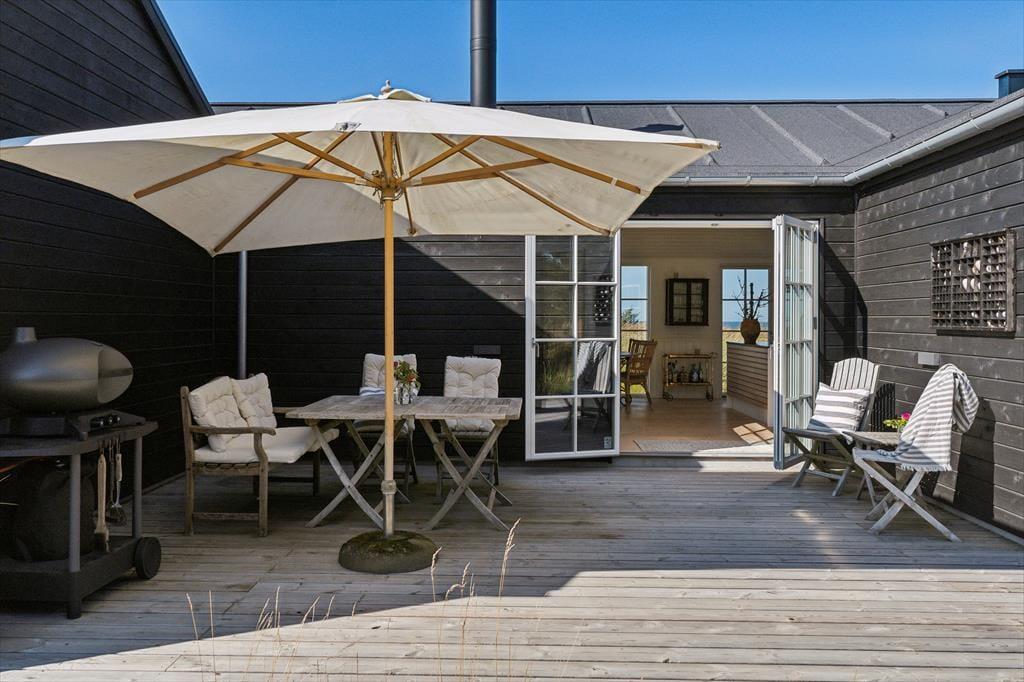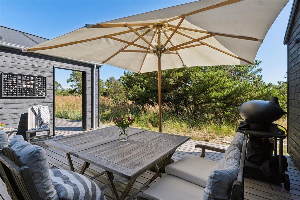 Die Außenbereiche dieses Ferienhauses sind für Entspannung und schöne Erlebnisse geschaffen. Die große Terrasse erstreckt sich entlang des Hauses und bietet sowohl sonnige als auch schattige Ecken, in denen du deinen ganz persönlichen Lieblingsplatz finden kannst. Beginne den Tag mit einer frisch gebrühten Tasse Kaffee, während die Morgensonne die Dünen in goldenes Licht taucht. Die Abende laden zu Grillabenden mit frisch gefangenem Fisch ein, während die Sonne langsam am Horizont untergeht. Der Grund ist von der natürlichen Dünenlandschaft umgeben und die offene Weite vermittelt ein Gefühl von Freiheit und Ruhe, das nur die Natur bieten kann.