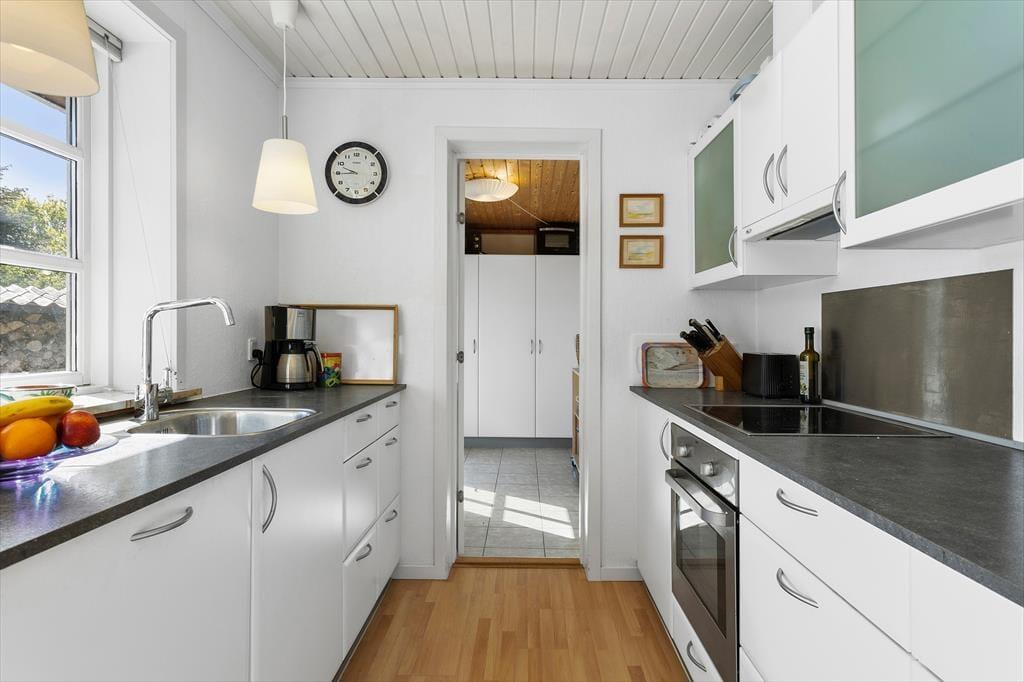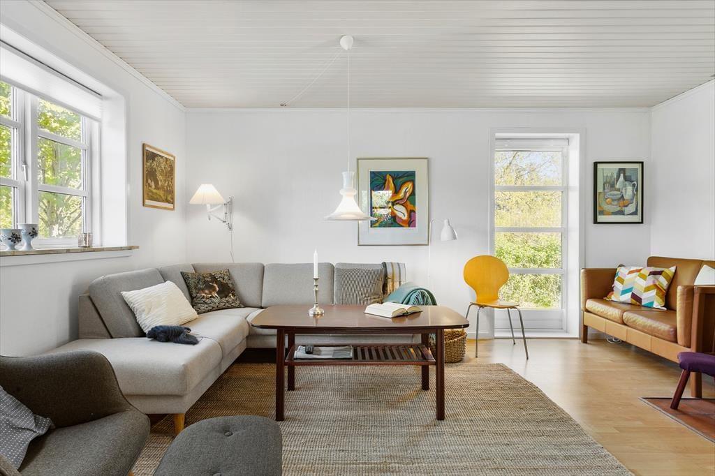 Die Einrichtung des Hauses strahlt echte Ferienhaus-Atmosphäre aus. An alles wurde gedacht, und die gemütlichen Ecken laden zu Nähe, Gesellschaftsspielen und Entspannung ein. Der Kaminofen im Wohnzimmer sorgt für Wärme und eine besondere Ruhe, wenn die Flammen hinter der Glasscheibe tanzen und der Wind draußen ums Haus weht. Der Grundriss ist sowohl funktional als auch geräumig, und mit separater Küche und einem schönen Gemeinschaftsraum lässt sich das Ferienleben leicht miteinander gestalten – ohne sich gegenseitig im Weg zu stehen. Die Küche ist praktisch eingerichtet und bietet genügend Platz für die kulinarischen Ferienfreuden, während die übrigen Wohnbereiche sich perfekt für ruhige oder gesellige Stunden eignen. Die drei Schlafzimmer sind gemütlich gestaltet und bieten eine ideale Raumaufteilung für bis zu sechs Personen – egal, ob du mit der Familie oder Freunden unterwegs bist. Alles in allem ein einladendes und stimmungsvolles Ferienhaus mit einer wohltuenden Atmosphäre.