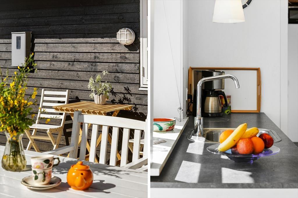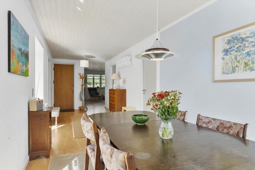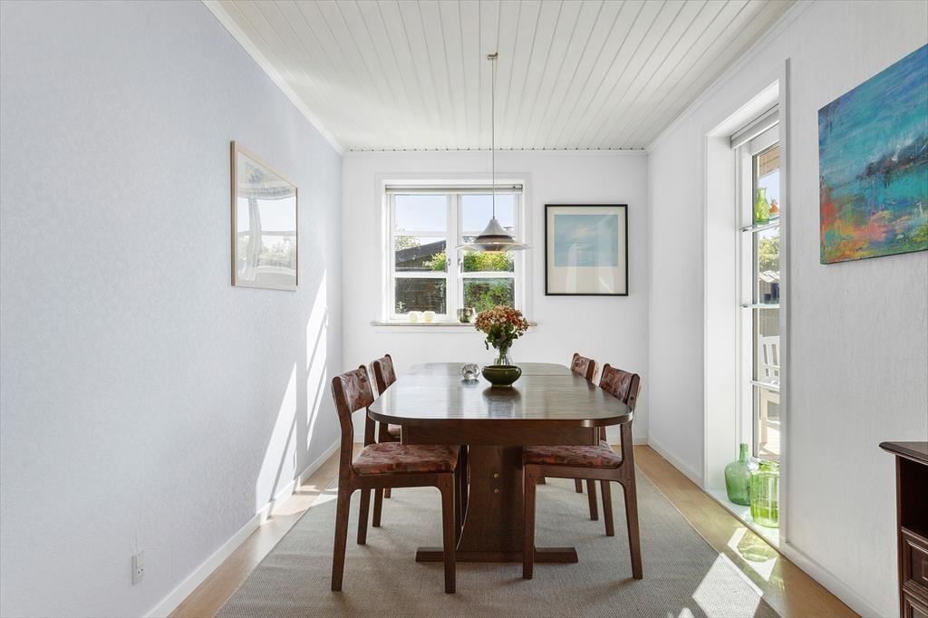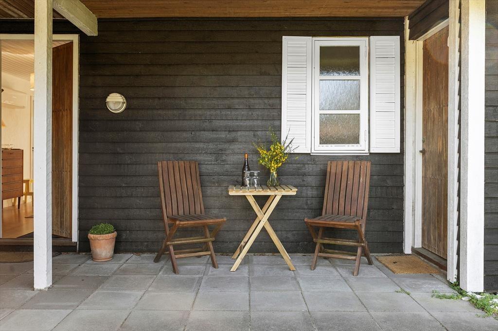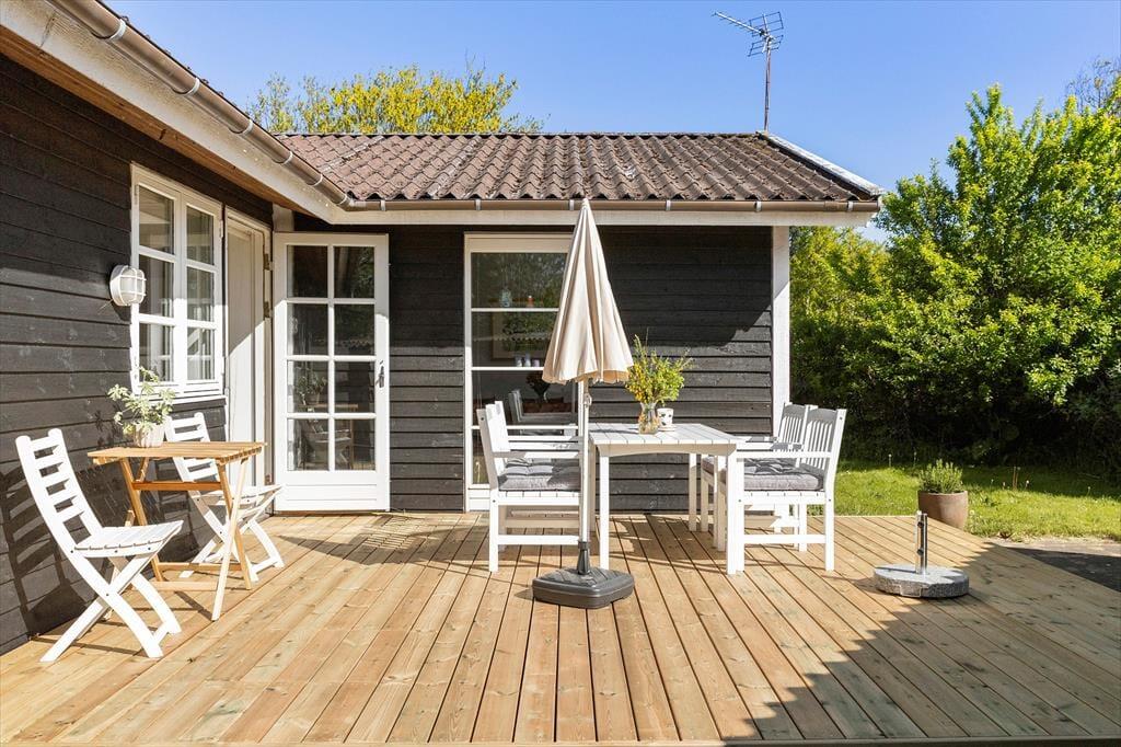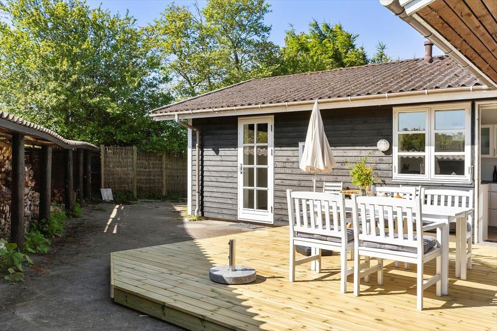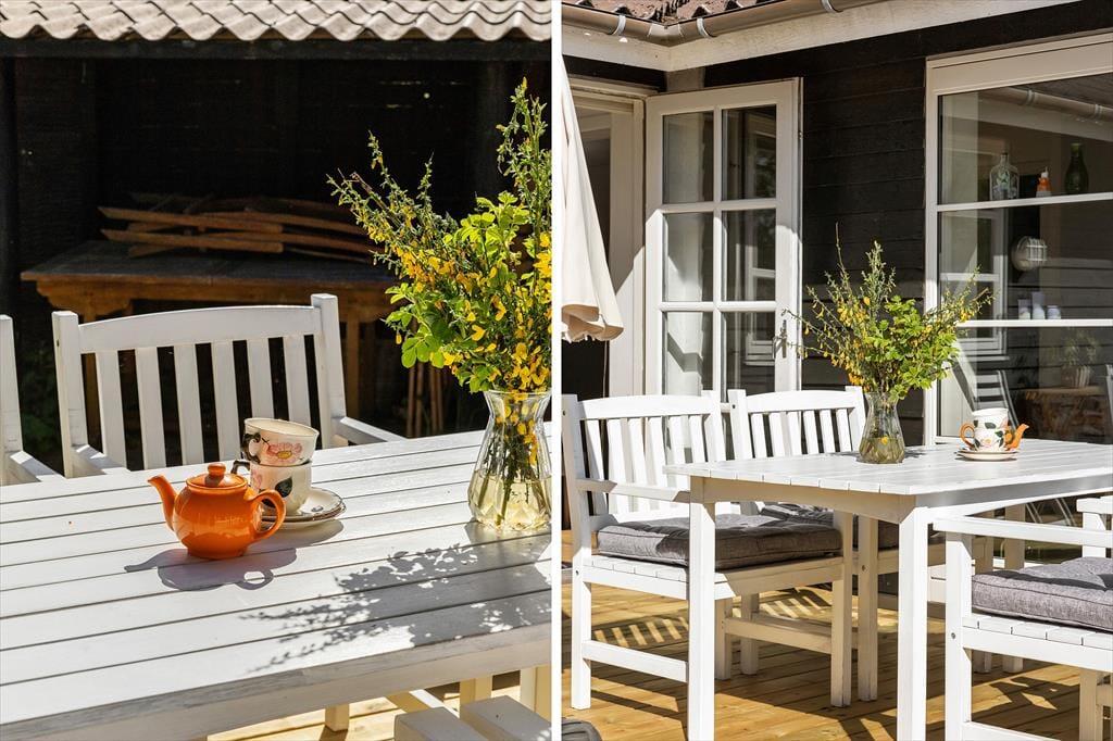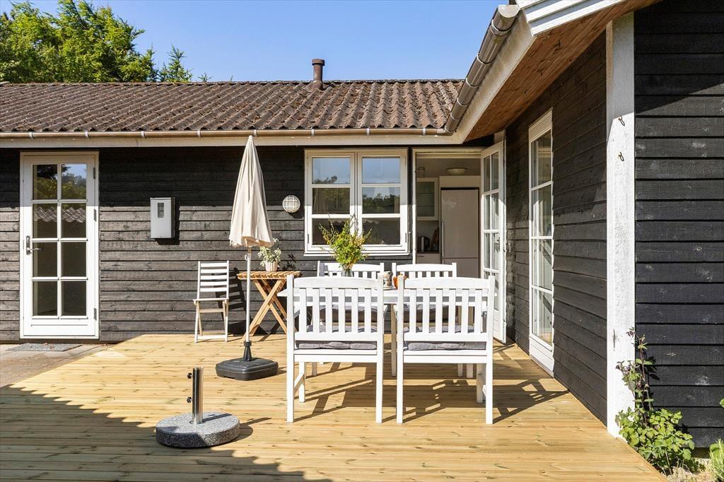 Das Leben unter freiem Himmel steht im Mittelpunkt hier in der Hybenvej 20 – und das spürst du sofort, wenn du auf die schönen Terrassenbereiche trittst, die das Haus umgeben. Vom Wohnzimmer und der Küche hast du direkten Zugang zu den Terrassen, die perfekt zur Sonne ausgerichtet sind. Hier kannst du den Tagesverlauf vom Sonnenaufgang bis zum Sonnenuntergang verfolgen – mit dem Morgenkaffee auf der geschützten Ostterrasse oder einem gemütlichen Grillabend unter dem überdachten Teil der Westterrasse. Die nach Süden ausgerichtete Terrasse ist teilweise durch eine Glaswand abgeschirmt und bietet damit auch an windigen Tagen einen warmen und angenehmen Aufenthaltsort. Das Grundstück ist mit Rasen angelegt und bietet viel Platz zum Spielen und Herumtoben für Kinder wie Erwachsene. Hier findest du Ruhe – und zugleich jede Menge Möglichkeiten, die Natur zu genießen und richtig durchzuatmen.