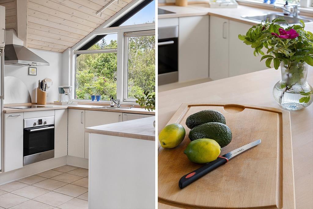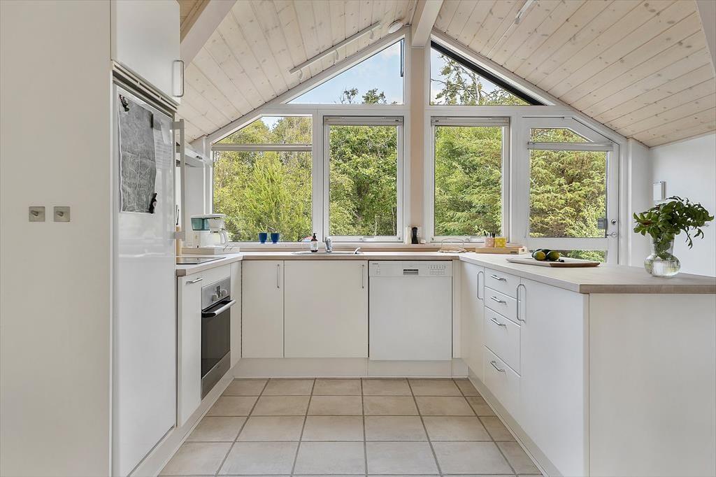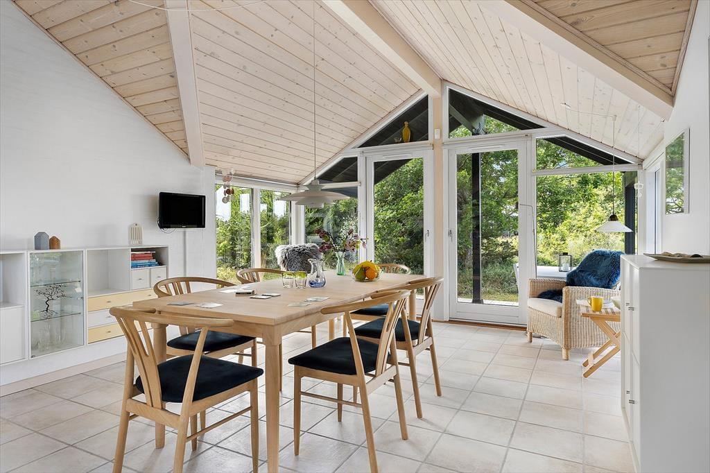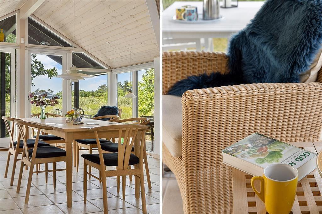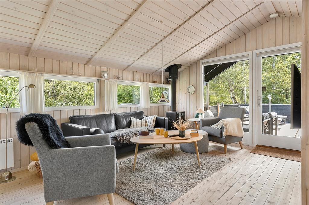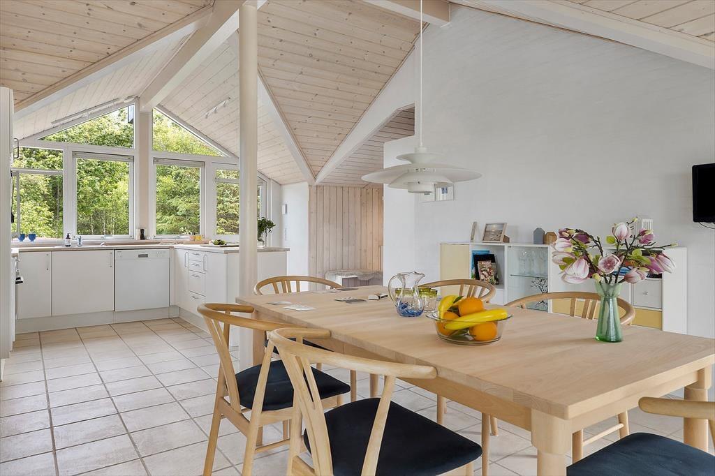 Das charmante Ferienhaus empfängt Sie mit einer stilvollen und lichtdurchfluteten Einrichtung, bei der große Fensterpartien das Tageslicht tief in die Räume lassen und eine wohnliche Atmosphäre schaffen. Die offene Raumaufteilung verbindet Wohnzimmer, Essbereich und Küche auf harmonische Weise – so können alle zusammen sein, auch wenn sie unterschiedlichen Aktivitäten nachgehen. Vielleicht bereitet jemand Kaffee in der Küche zu, während andere lesen oder gemeinsam spielen. Hier entsteht ganz automatisch das Gefühl von echter Ferienentspannung – vom ersten Moment an.