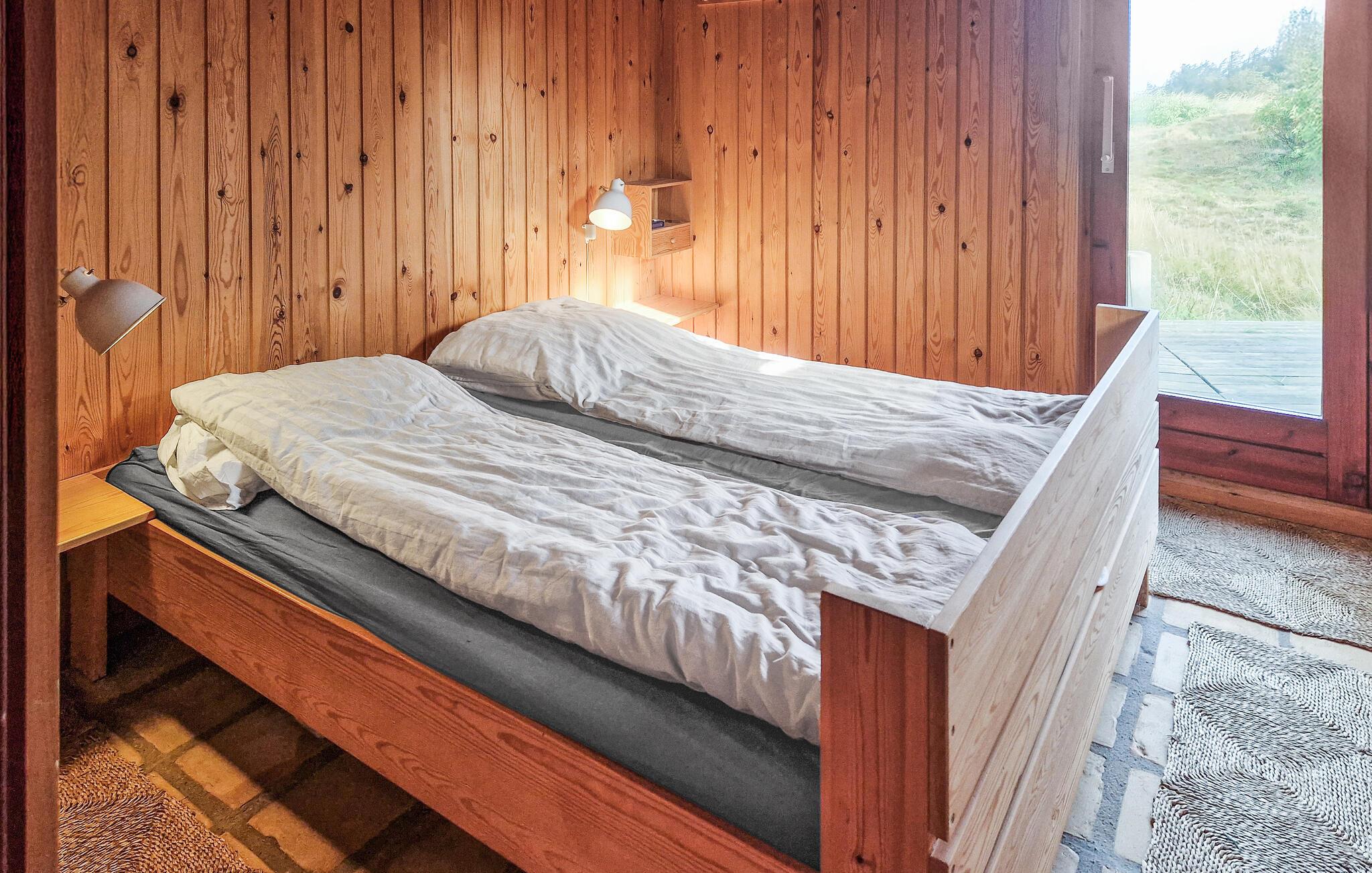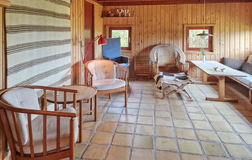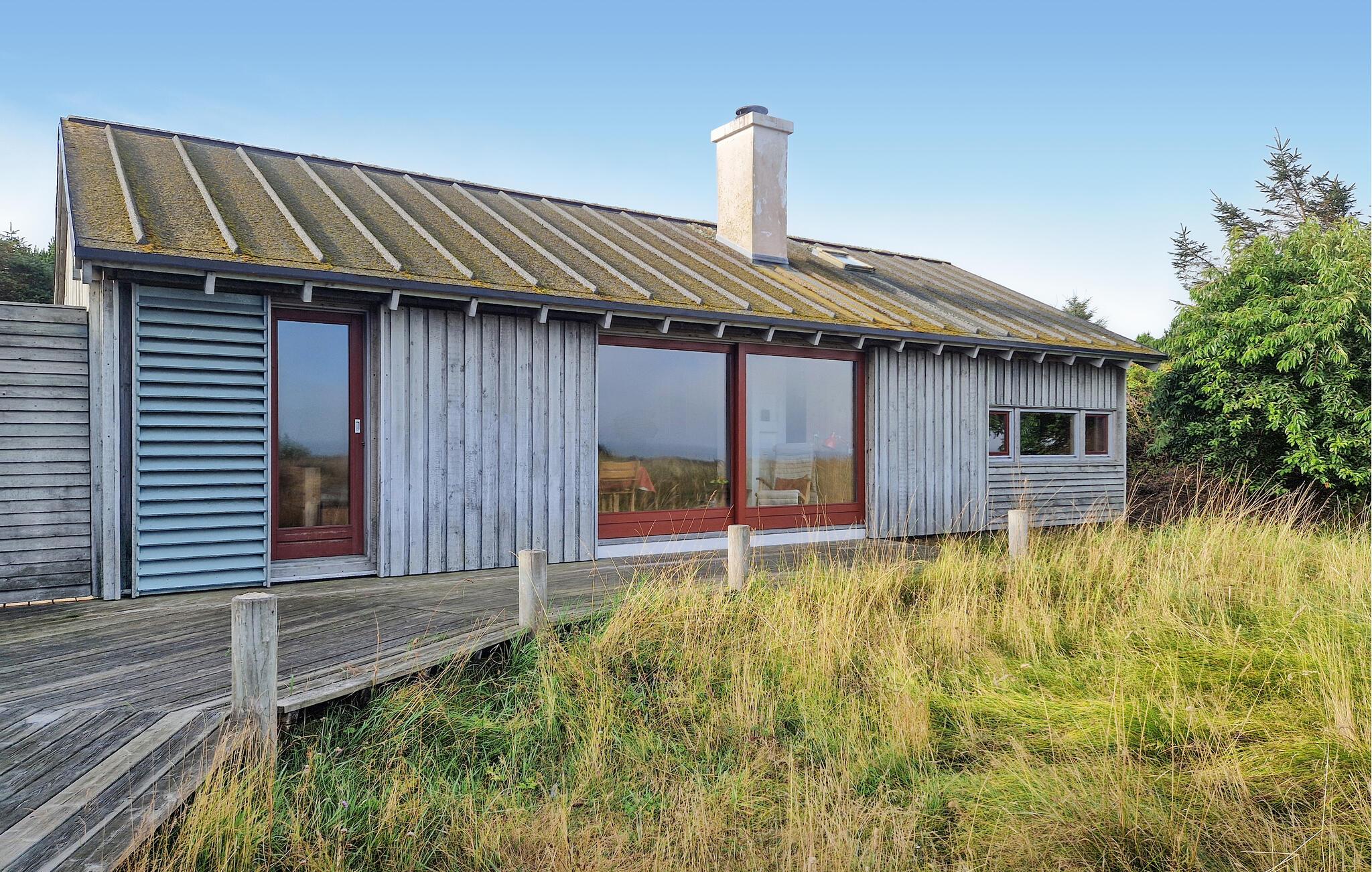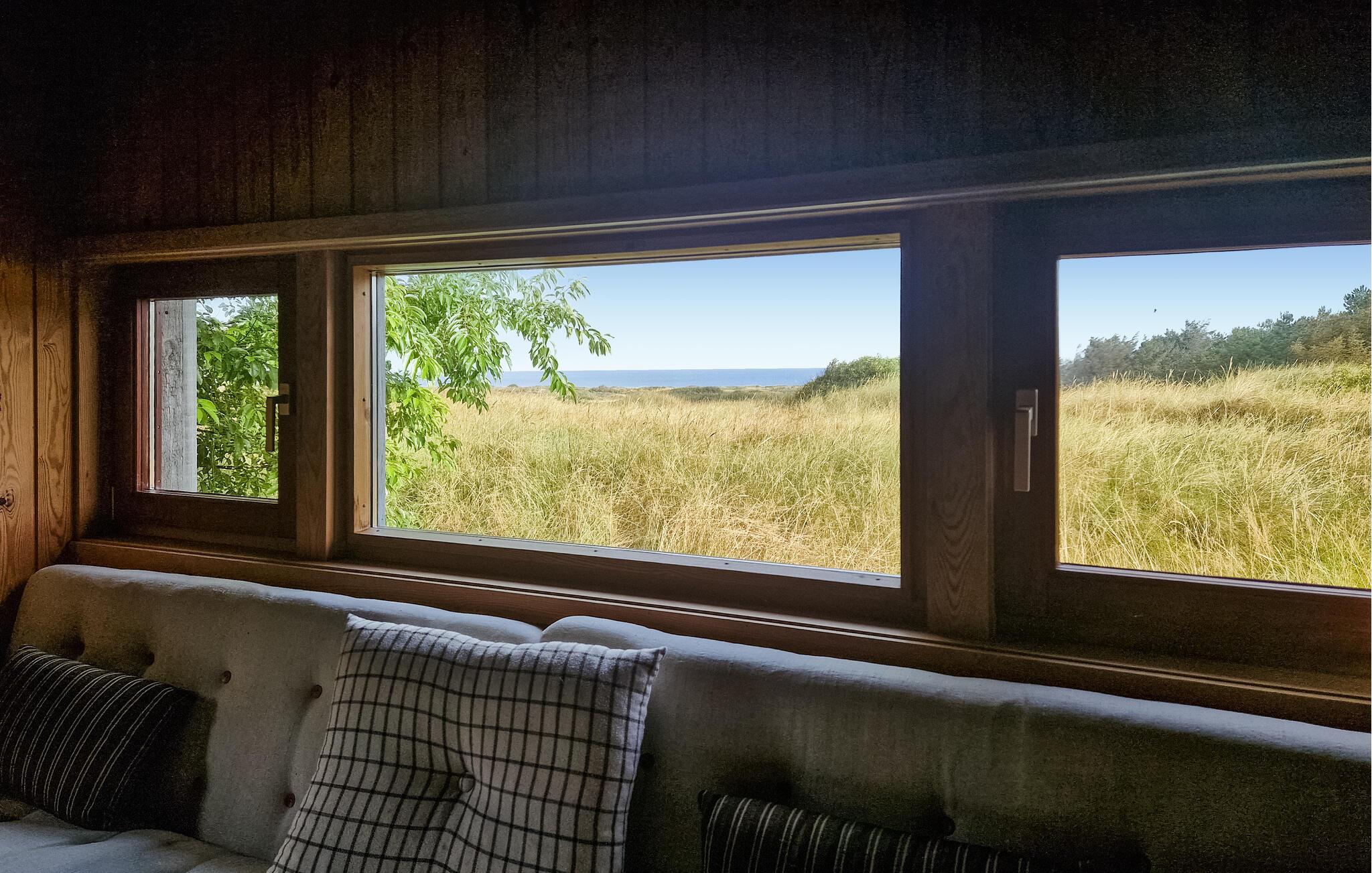 Charmantes Ferienhaus in Bindslev mit Meerblick, Holzvertäfelungen und großer Terrasse für entspannte Urlaubstage in der Natur.