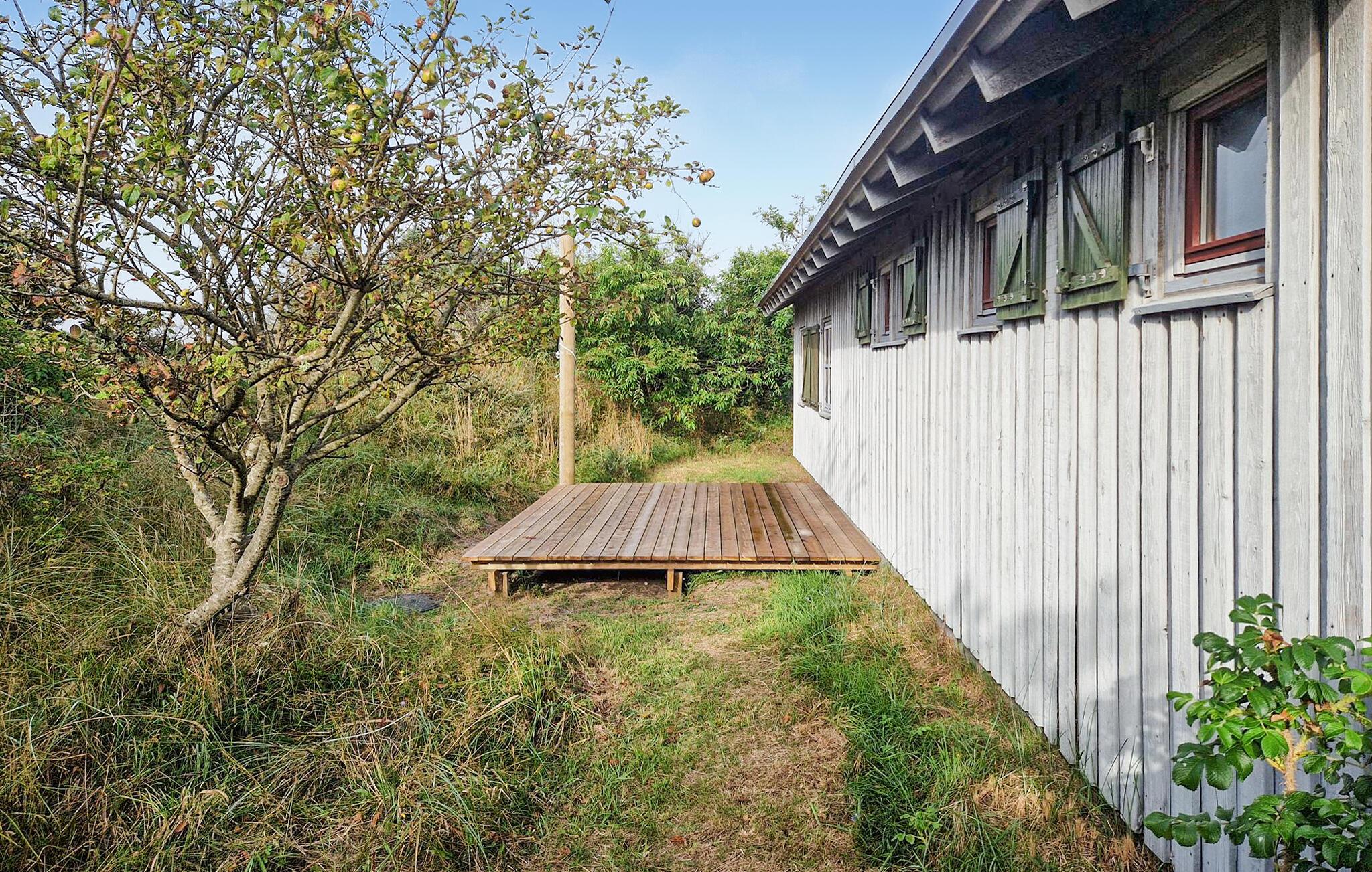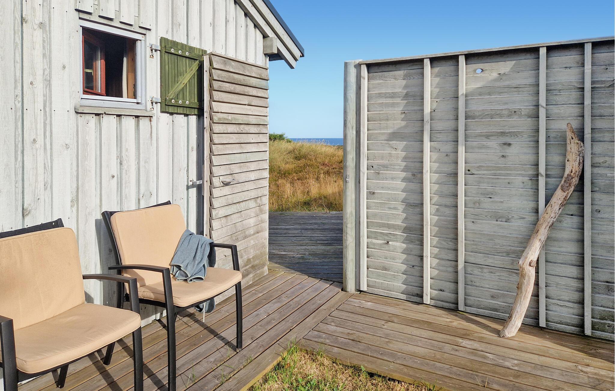 Verbringen Sie Zeit im Außenbereich auf der Holzterrasse. Genießen Sie die frische Meeresluft, lauschen Sie dem Rauschen der Wellen und lassen Sie den Blick über die Landschaft schweifen. Das naturbelassene Grundstück bietet viel Ruhe und Privatsphäre, während die Nähe zum Strand für unvergessliche Urlaubsmomente sorgt.