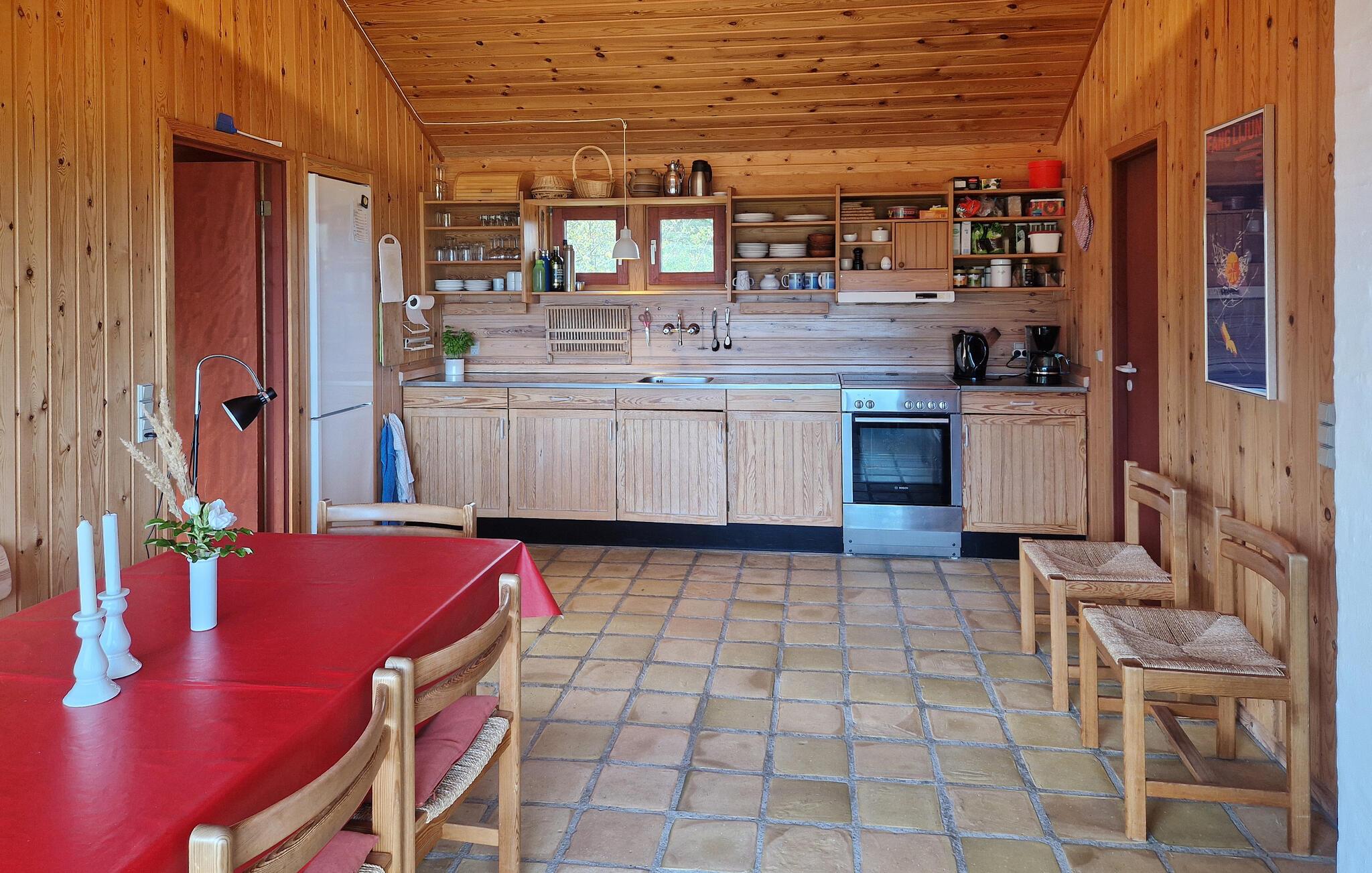 Freuen Sie sich auf Ihr einfaches, aber charmantes Ferienhaus, das viel Charakter und Gemütlichkeit ausstrahlt. Treten Sie ein in den wohnlichen Innenbereich mit Holzvertäfelungen, warmen Farben und großen Fenstern, die Ihnen einen fantastischen Blick auf die Dünen und das Meer bieten. Machen Sie es sich im Wohnzimmer auf den bequemen Sitzmöbeln gemütlich und genießen Sie die entspannte Stimmung. Nutzen Sie die offene Küche und genießen Sie am Esstisch gesellige Stunden mit der Familie.