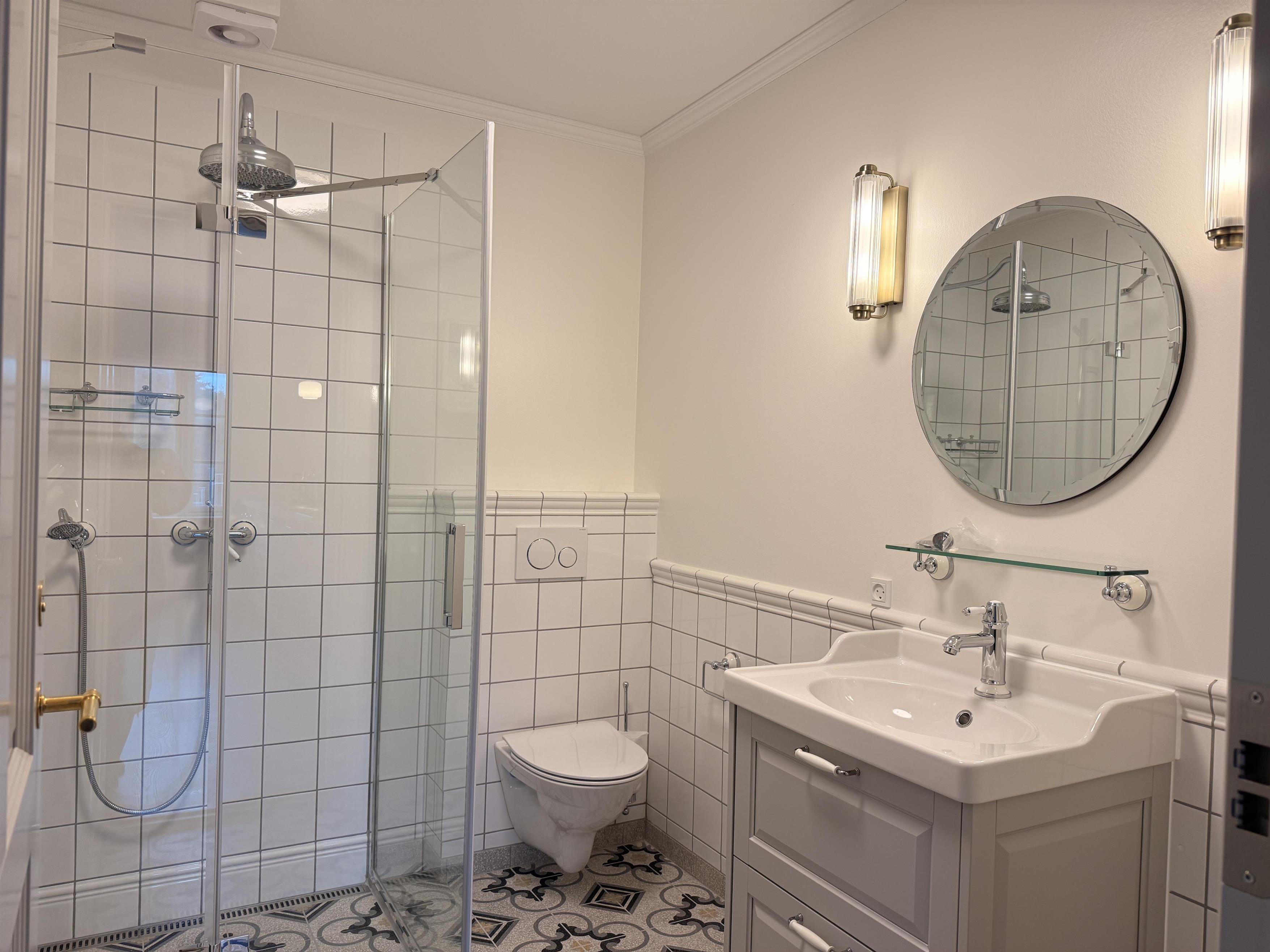 Das Badezimmer ist hell und einladend mit Dusche, und die gesamte Wohnung wirkt nagelneu, funktional und zugleich herrlich entspannt.