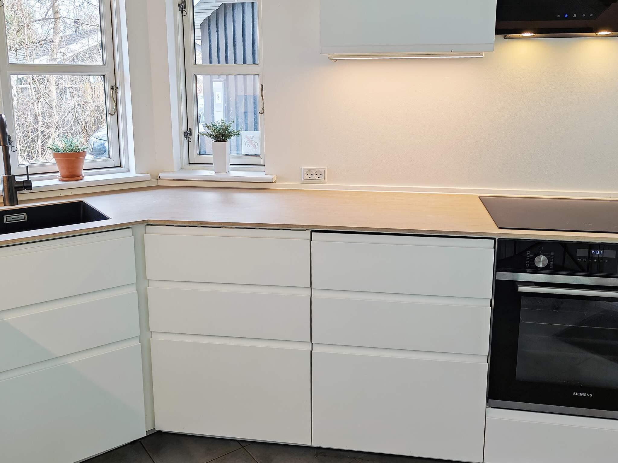 Im offen gestalteten Küchen-/Wohnbereich mit Ess- und Sitzecke findet man auch einen Fernseher mit Chromecast zum Streamen eigener Anbieter. Die Küche wurde im November 2021 frisch renoviert, zur neuen Ausstattung gehören Induktionskochfeld, Backofen, Mikrowelle, große Kühl-/Gefrierkombi sowie ein leiser Geschirrspüler.