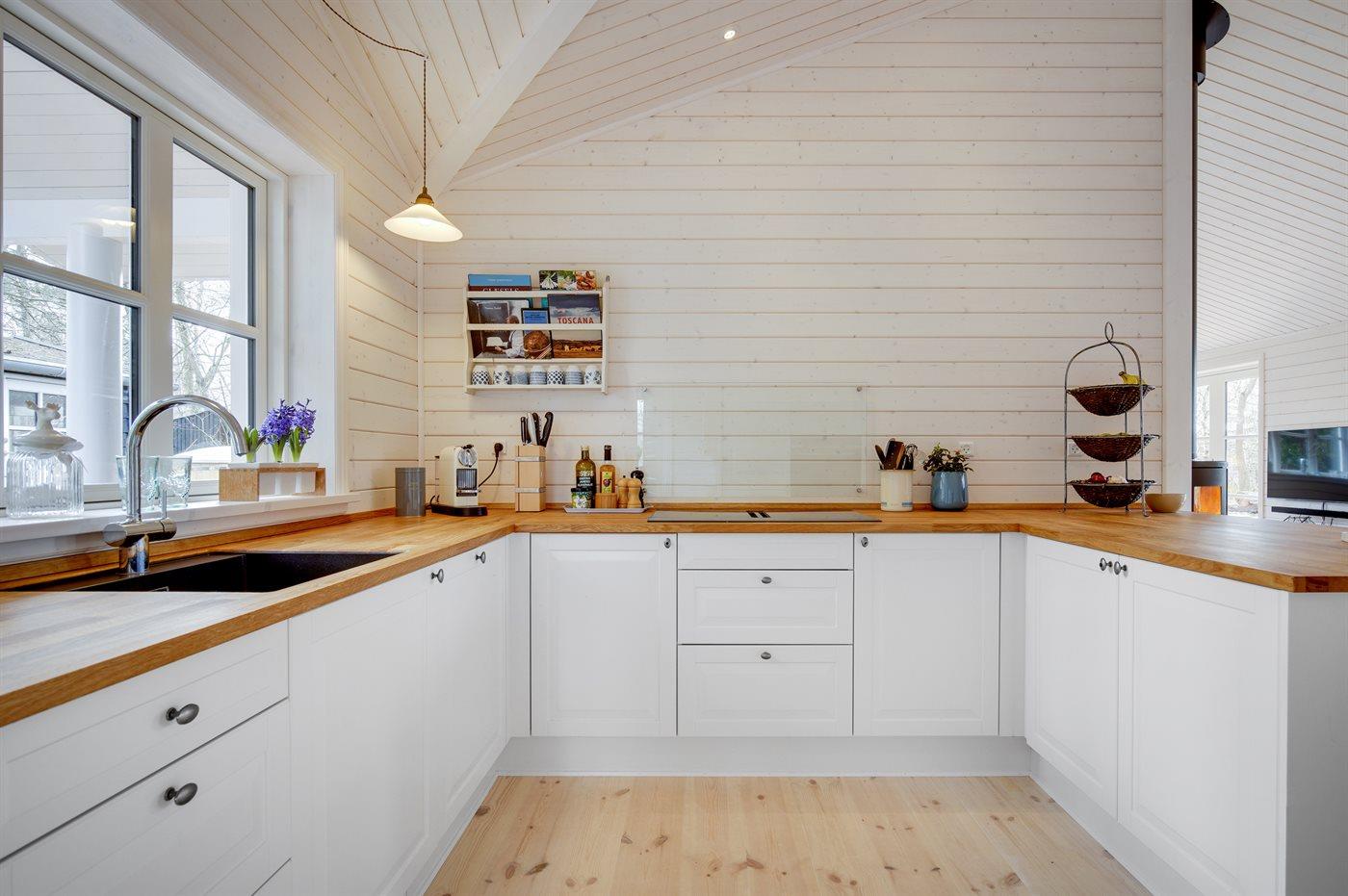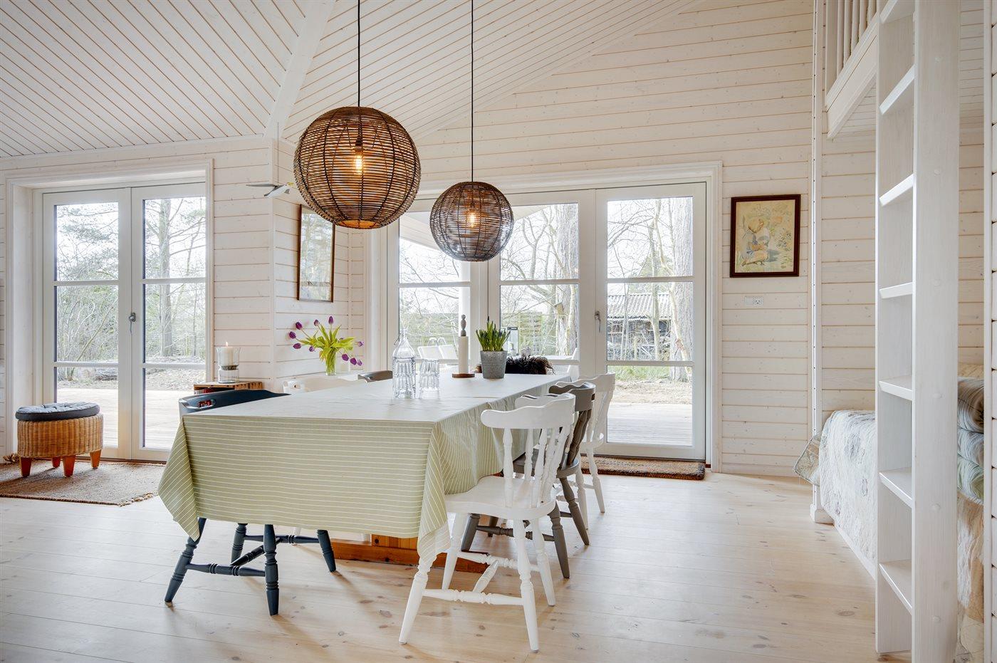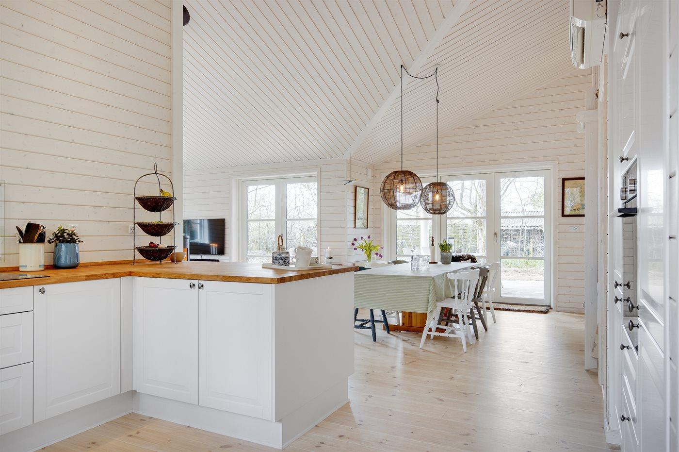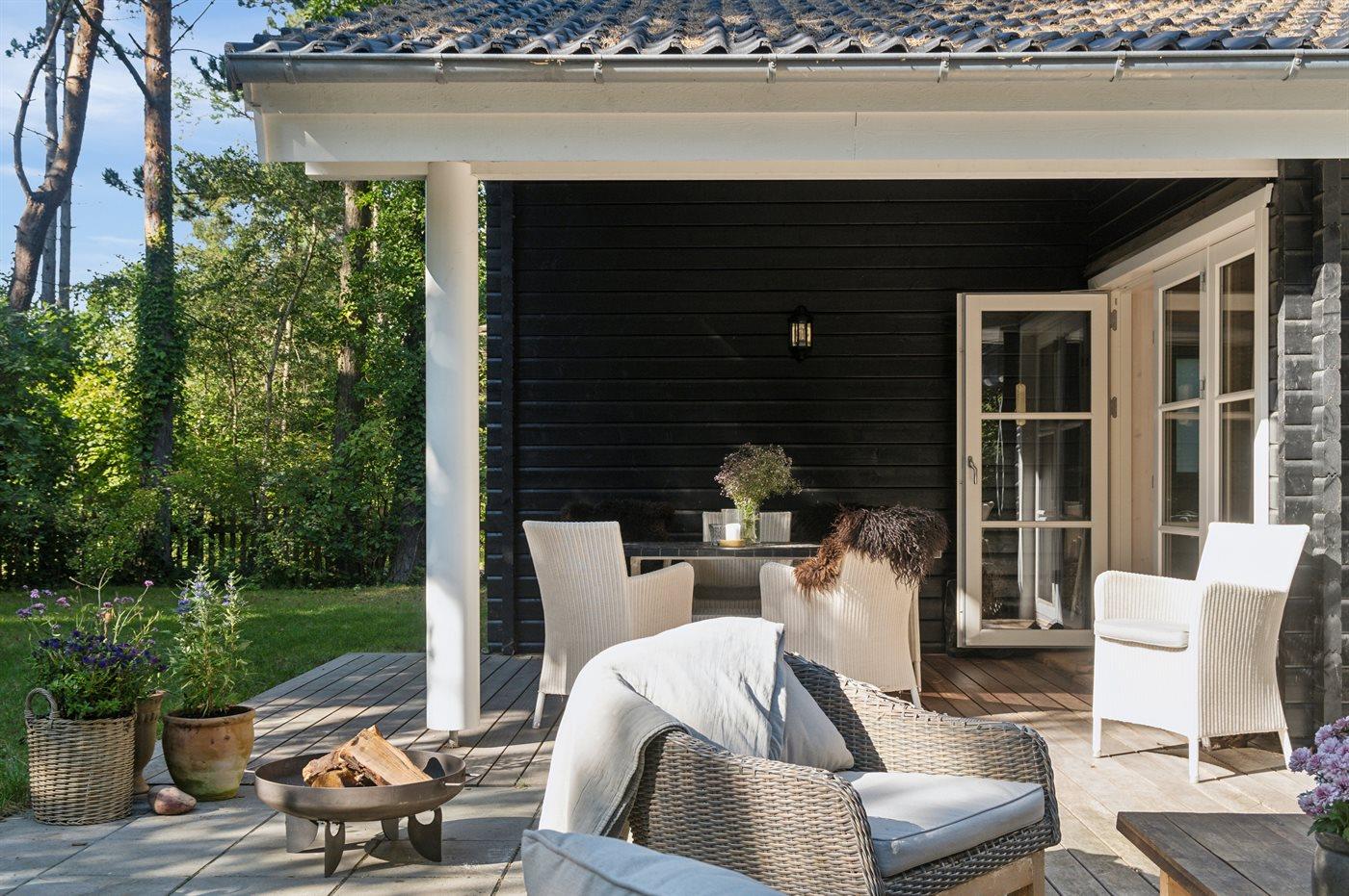 Das Ambiente in diesem neuen, aus hochwertigen Materialien erbaute, Balkenferienhaus ist erstklassig. Hohe Fichten umgeben das Grundstück und Sie fühlen sich unter ferne Himmelstriche versetzt. Auf der großen, zum Teil überdachten Holzterrasse können Sie die Sonne sowie die lauen Sommerabende genießen. Außerdem finden Sie hier einen Hot Tub für 4 Personen, der das ganze Jahr hindurch nutzbar ist sowie eine Außendusche. Der Mittelpunkt des Hauses ist die große Küche, die in offener Verbindung zum Essbereich und zum Wohnzimmer liegt – hier ist Platz für alle. Von hier aus haben Sie außerdem Zugang zur Terrasse. Die Zimmer sind geräumig und regulär. Das Haus liegt in Laufweite von einem guten und kinderfreundlichen Badestrand mit Badesteg entfernt. Die schöne Stadt Gilleleje liegt nur eine kurze Fahrt mit dem Auto entfernt – hier finden Sie idyllische Gassen, gute Einkaufsmöglicheiten, Restaurants und einen stimmungsvollen Hafen wo Sie frische Fische kaufen können. Das Haus ist ebenfalls ein guter Ausgangspunkt für Ausflüge in die umliegenden Städte Hornbæk, Dronningmølle, Rågeleje, Tisvildeleje und Naturgebiete wie z. B. Heatherhill.