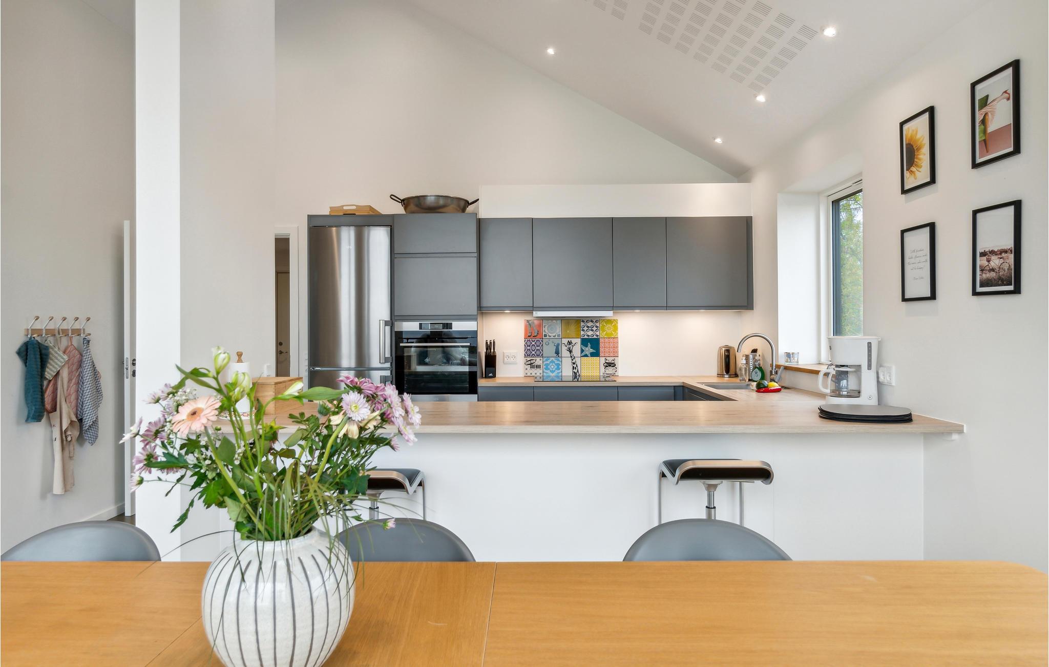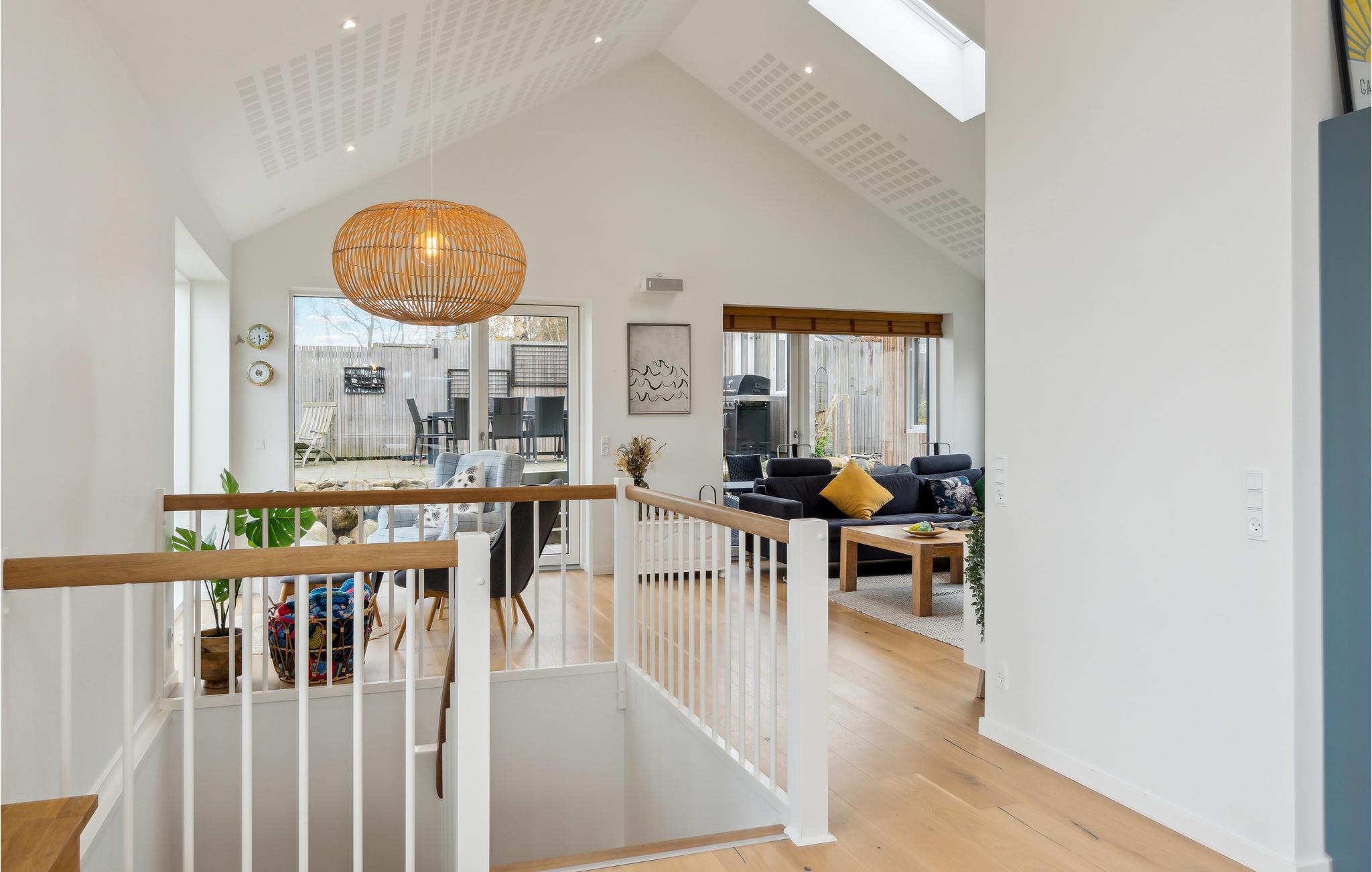 Willkommen in dem attraktiven Haus, das seine Gäste in Toplage nur wenige Meter vom Strand empfängt. Richten Sie sich in den hellen, modern gestalteten Räumen häuslich ein, in denen alles dafür getan ist, dass Sie sich hier mit Ihren Lieben wohlfühlen können. Bodentiefe Fenster bringen die fantastische Aussicht optimal zur Geltung. Machen Sie es sich mit einem Buch im Sessel bequem und lassen Sie den Blick über das Wasser schweifen.