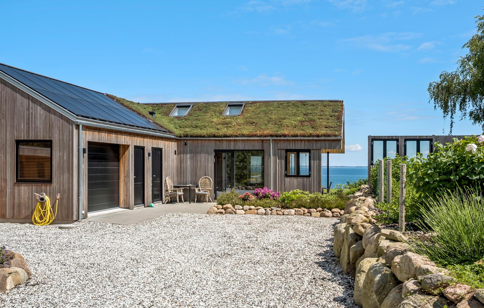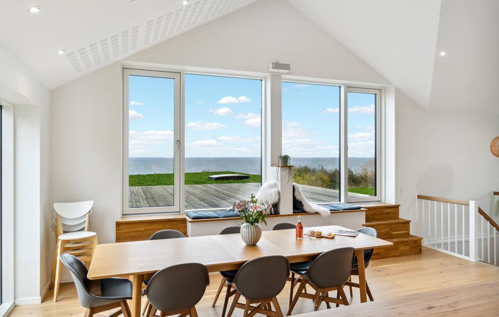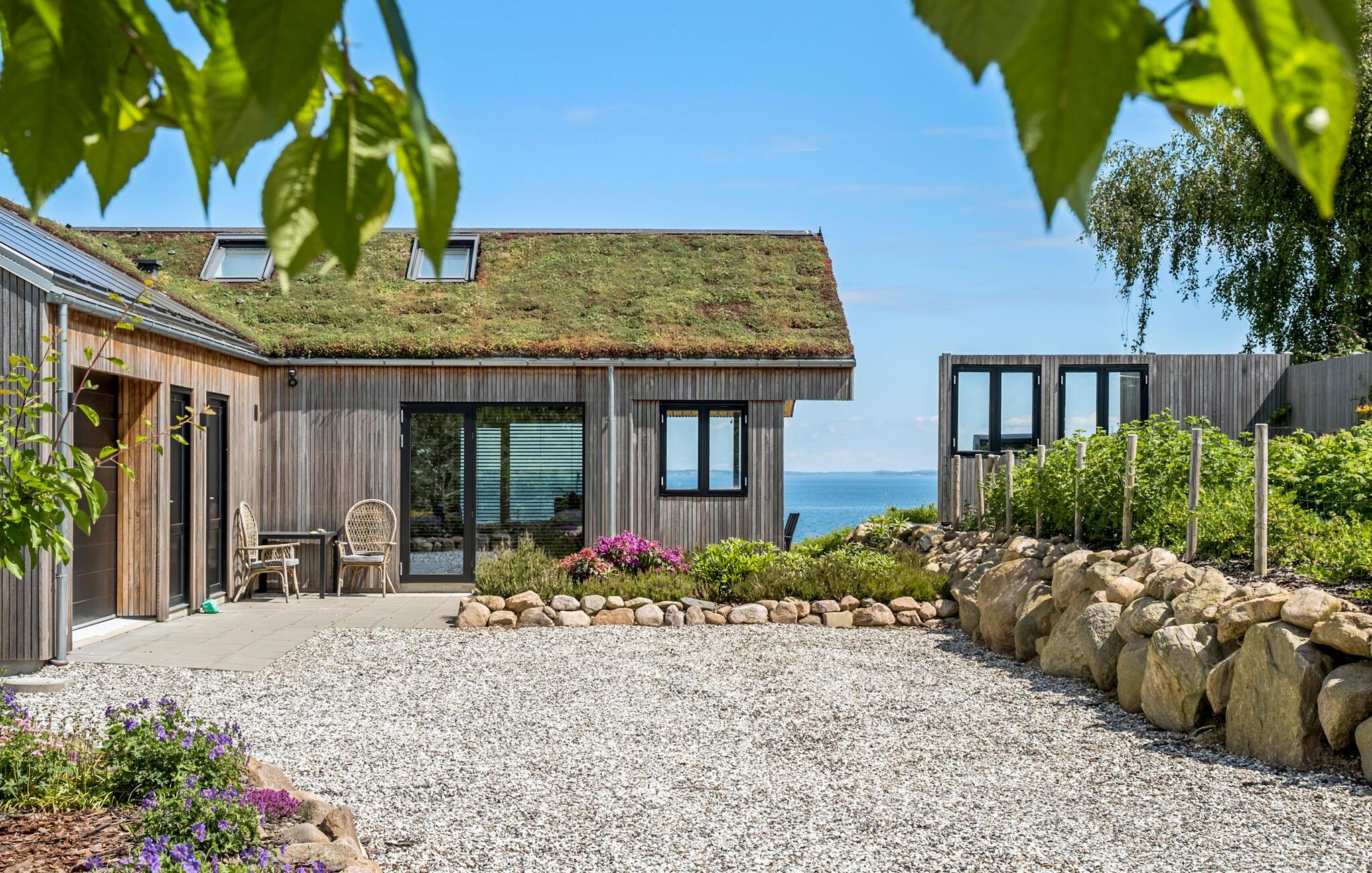 Entspannen Sie in diesem modernen Ferienhaus mit Fjordblick, nur wenige Meter vom Strand in Dänemark entfernt.