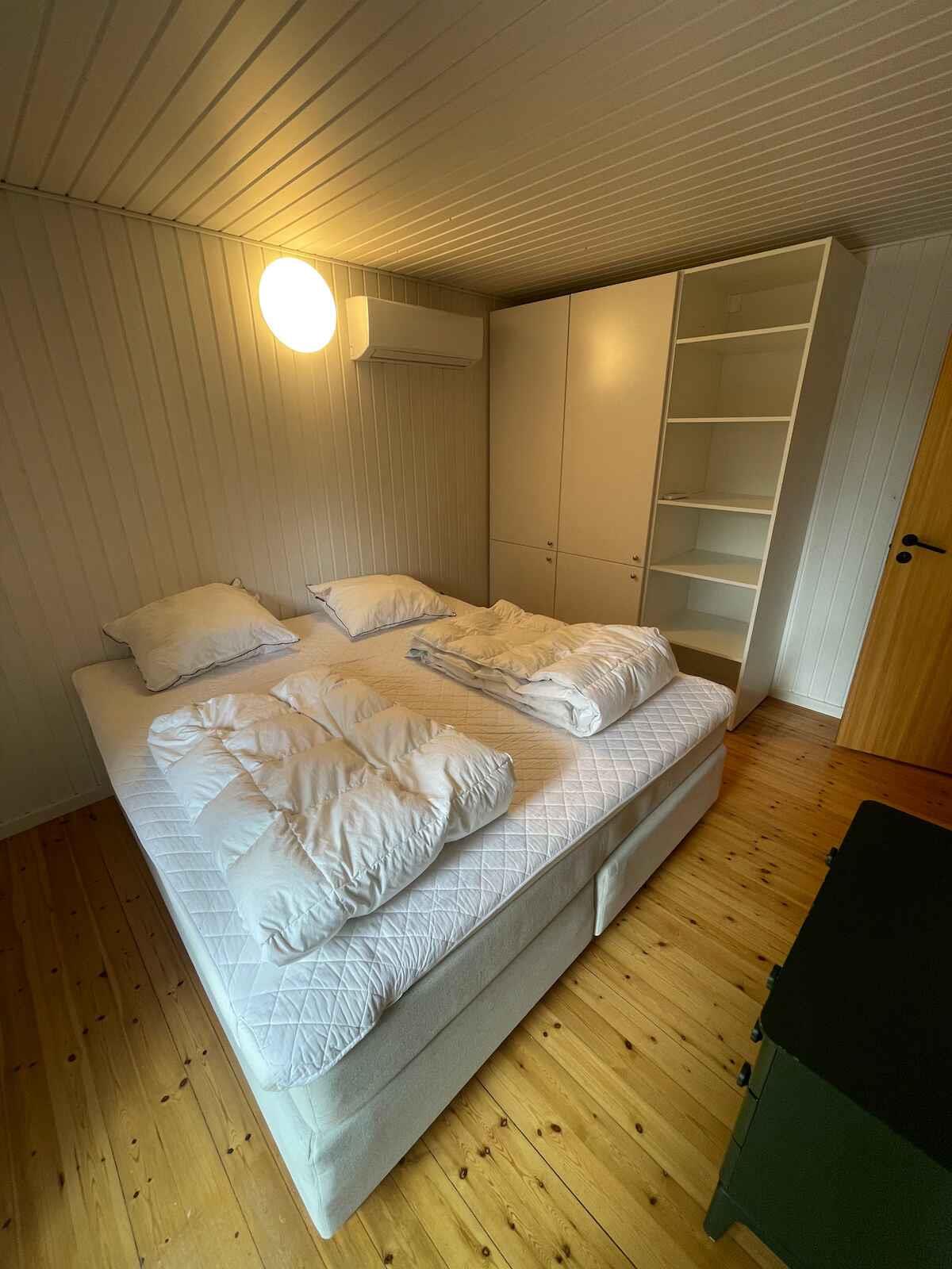Ferienhaus im Lupinerkvarteret. Das Haus verfügt über einen großen Kamin und ein geräumiges Wohnzimmer mit Geschirrspüler, zwei nach Osten und Westen ausgerichtete Terrassen sowie eine 10 m² große überdachte Terrasse. Ein Outdoor-Whirlpool bietet Platz für bis zu 8 Personen. 5 Gehminuten zum Wasser und zum Geschäft, 2 Minuten zu Sportplätzen und Spielplatz über Wege ohne Straßenüberquerung. Zur Ausstattung gehören Brettspiele, Dart, Basketballkorb, PS4 und vieles mehr.