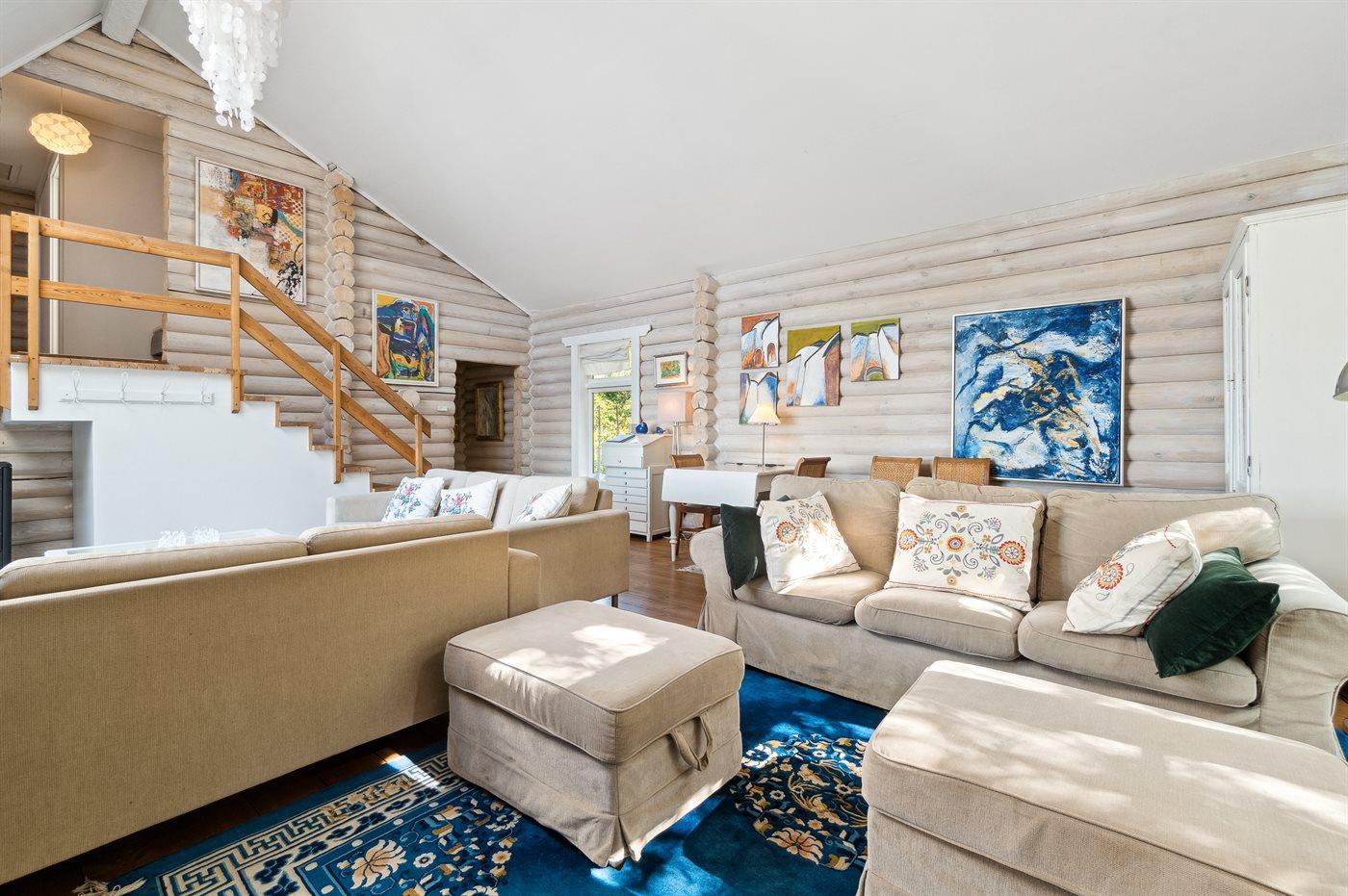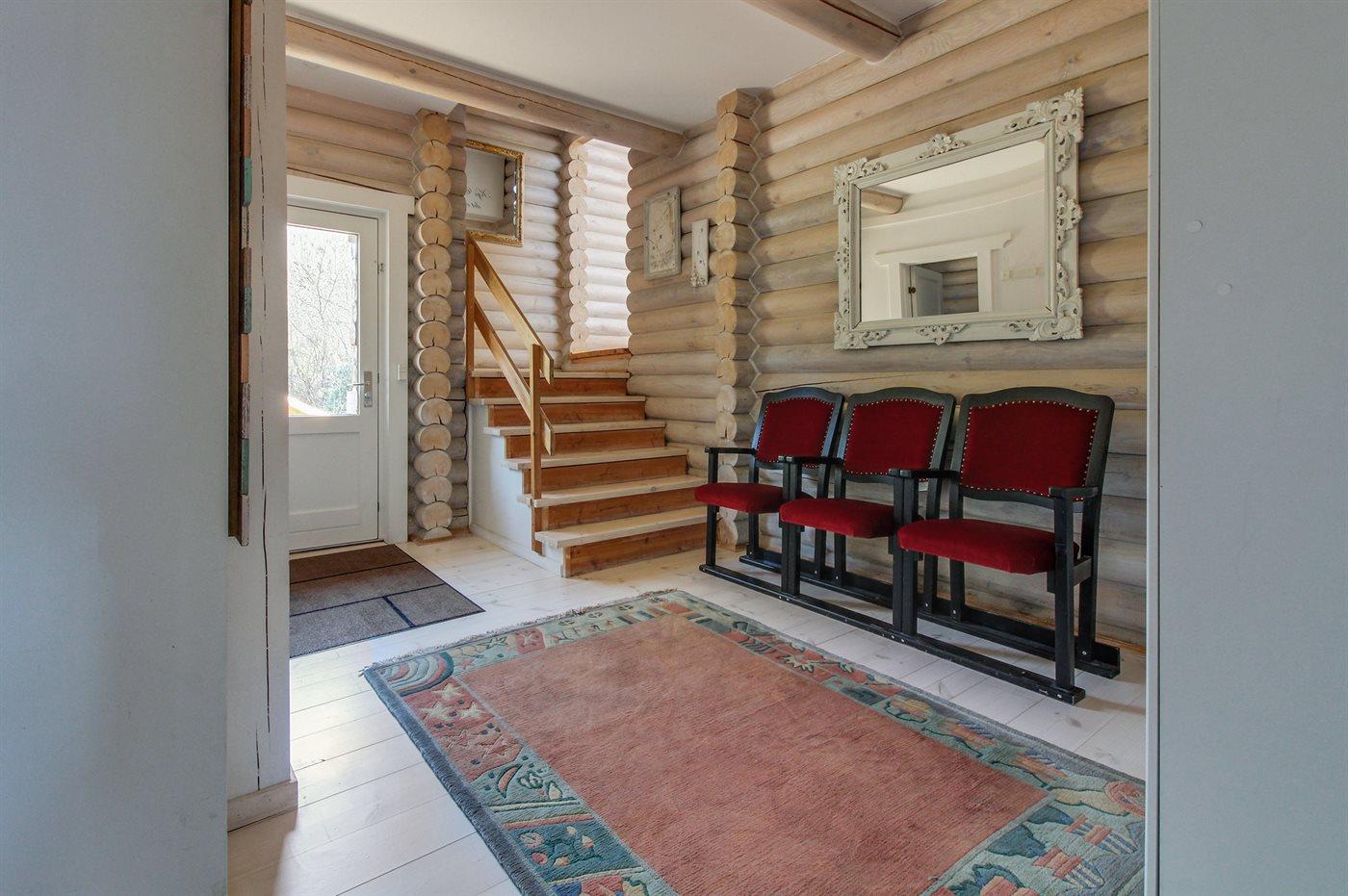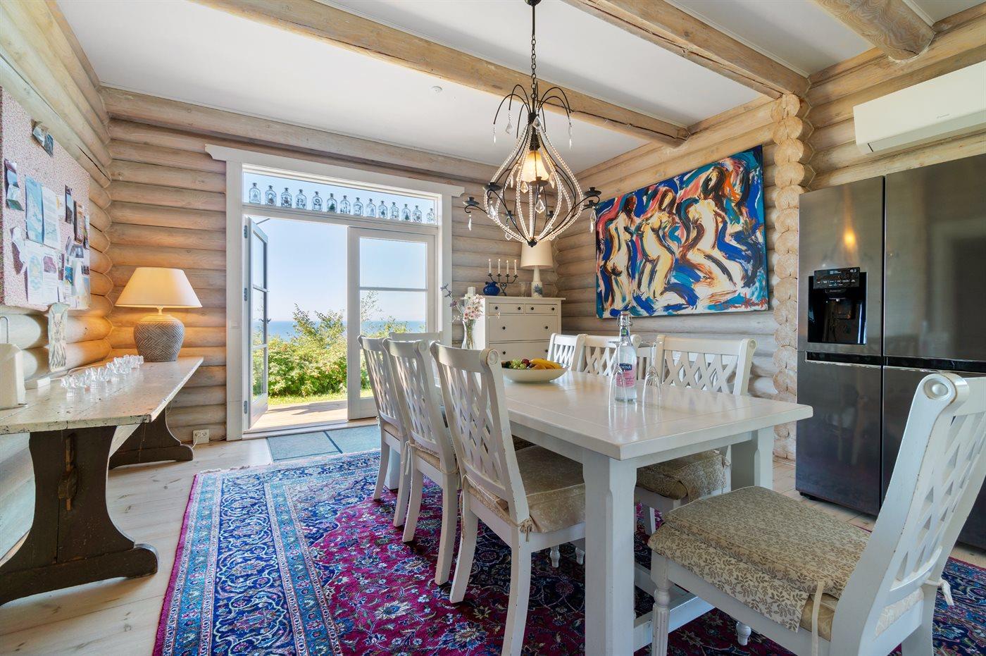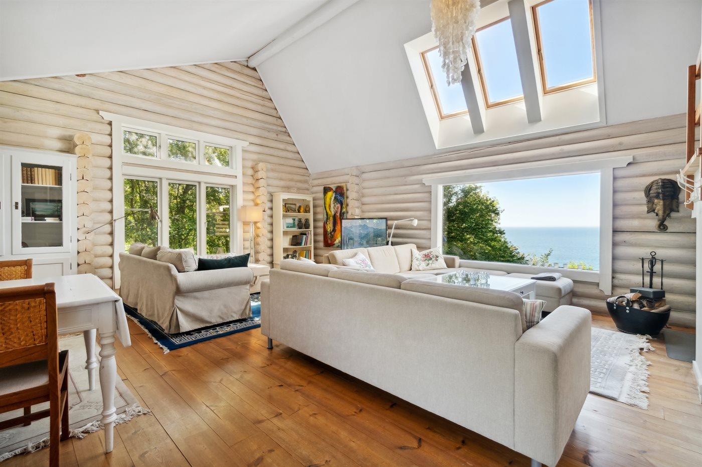 Hier ist von einen Balkenhaus mit vielen Details die Rede - die Einrichtung erstreckt sich über mehrere Ebenen, wobei der Blick auf das Meer in den Wohnzimmern und den Schlafzimmern eine wesentliche Rolle spielt. Zwei der Schlafzimmer haben sogar Zugang zu einem Laubengang, von wo aus man den Morgenkaffee mit einem einzigartigen Blick auf das Meer und die Klippenküste Nordbornholms, mit der Burgruine von Hammershus auf seinem Granitmassiv, genießen kann.