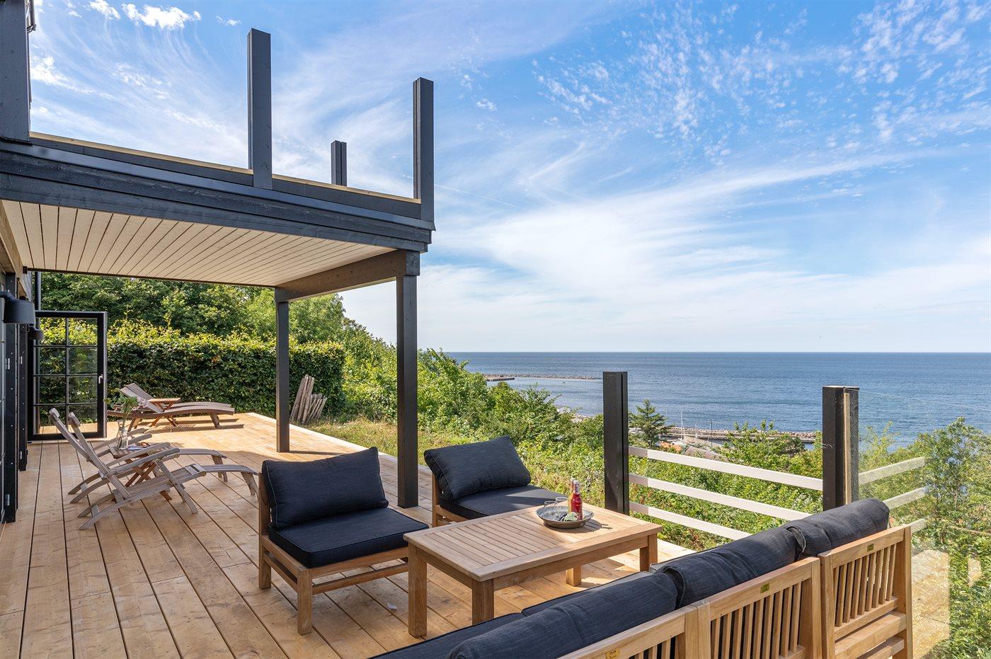 Modernes Ferienhaus in Hasle mit herrlichem Meerblick, großer Terrasse und komfortabler Ausstattung für erholsame Urlaubstage.