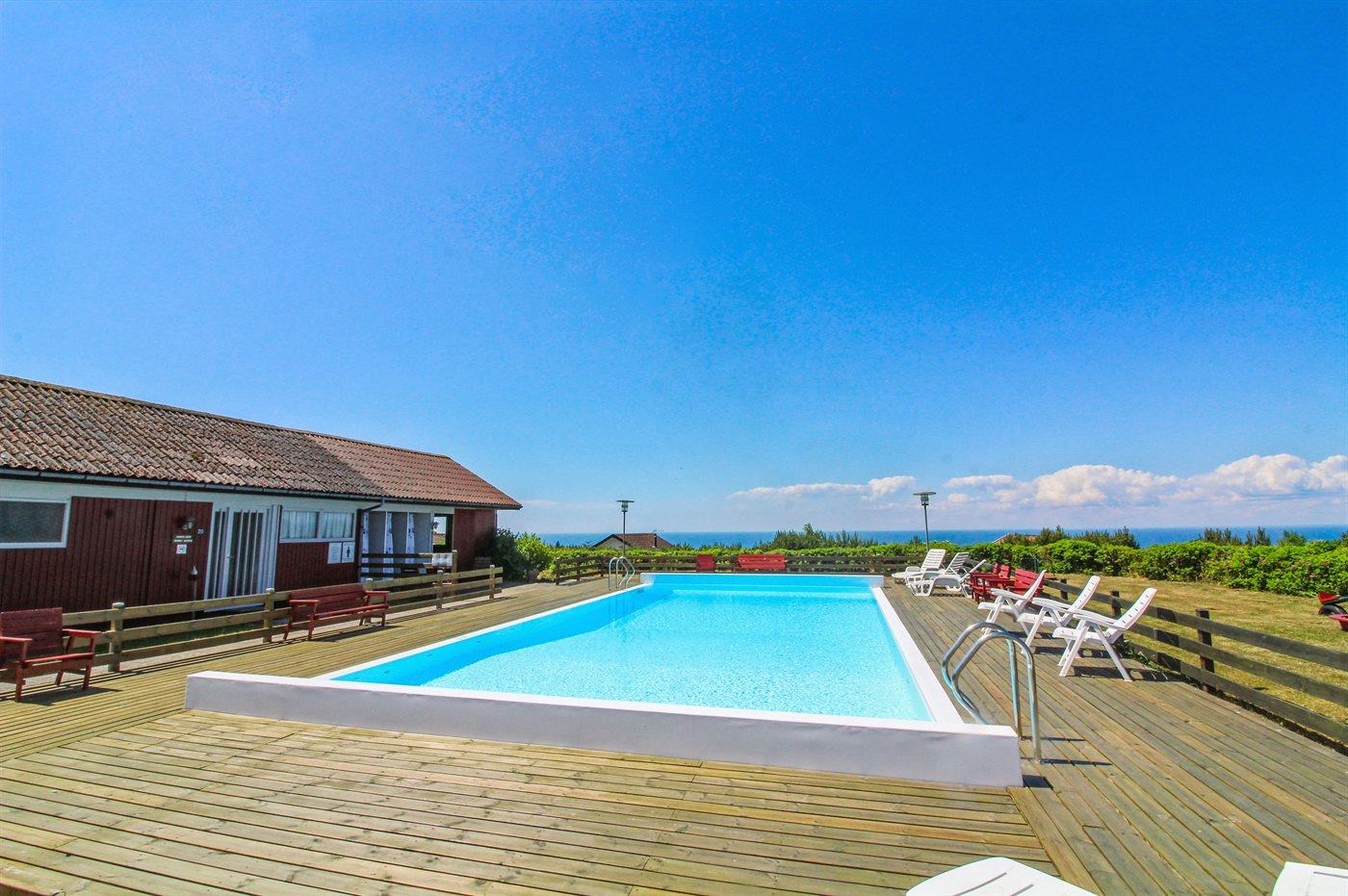 Gemütliches Ferienhaus mit Meerblick, Terrasse, Sauna und Pool in Vang, ideal für entspannte Tage an der Ostsee.