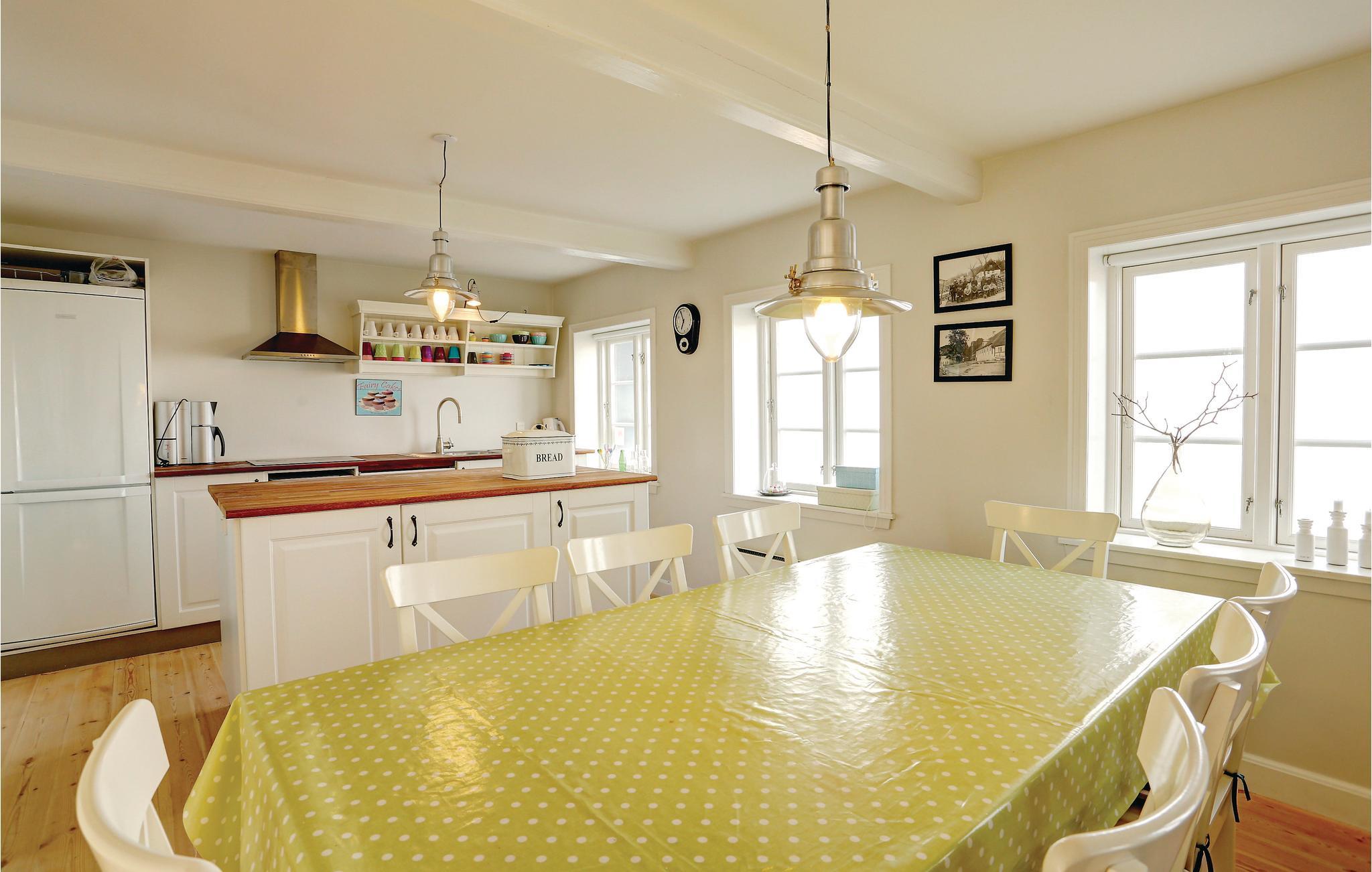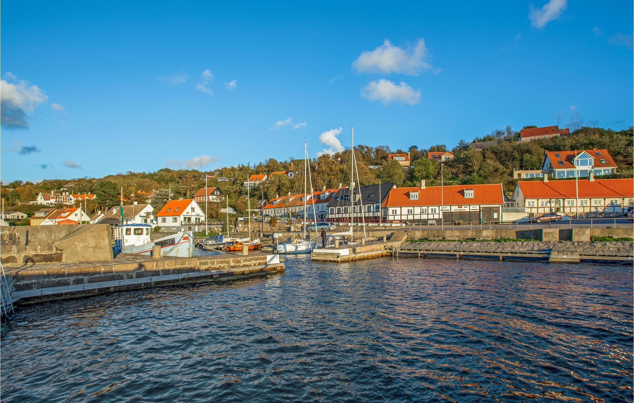 Schön gelegenes und total renoviertes Reihenhaus auf 2 Ebenen. Schöne Aussicht und Einrichtung. Das Haus ist sehr geräumig und gemütlich und die sichtbaren Deckenbalken verleihen ihm einen besonderen Reiz. Die große Wohnküche ist modern eingerichtet. Vom Wohnzimmer haben Sie eine Aussicht auf die Ostsee und den Hafen Vang, wo viele kleine Boote am Kai liegen. Vom Treppenabsatz im 1. Stock können Sie auch die Ostsee sehen. Hier sind Sie in einem schönen Reihenhaus in einer maritimen Umgebung und wo der hohe Komfort Ihnen ein einzigartiges Urlaubserlebnis beschert. Zum Haus gehört auch eine Steinterrasse, die in einem welligen Terrain angebracht ist. In Vang können Sie gut spazieren, die Nähe zum Meer tut Körper und Seele gut. Ein großes und gemütliches Ferienhaus für jede Jahreszeit.
