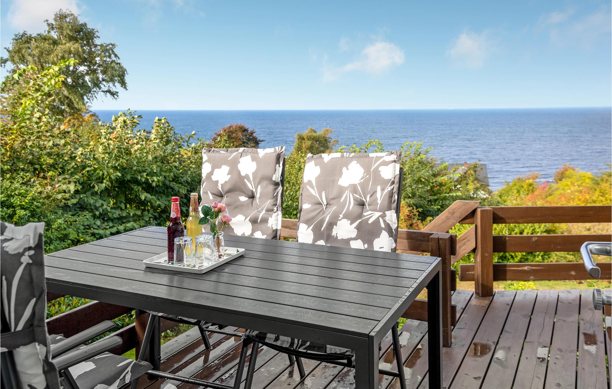 Gemütliches Ferienhaus in Hasle mit Panoramablick, Kaminofen und großer Terrasse für erholsame Urlaubstage am Meer.